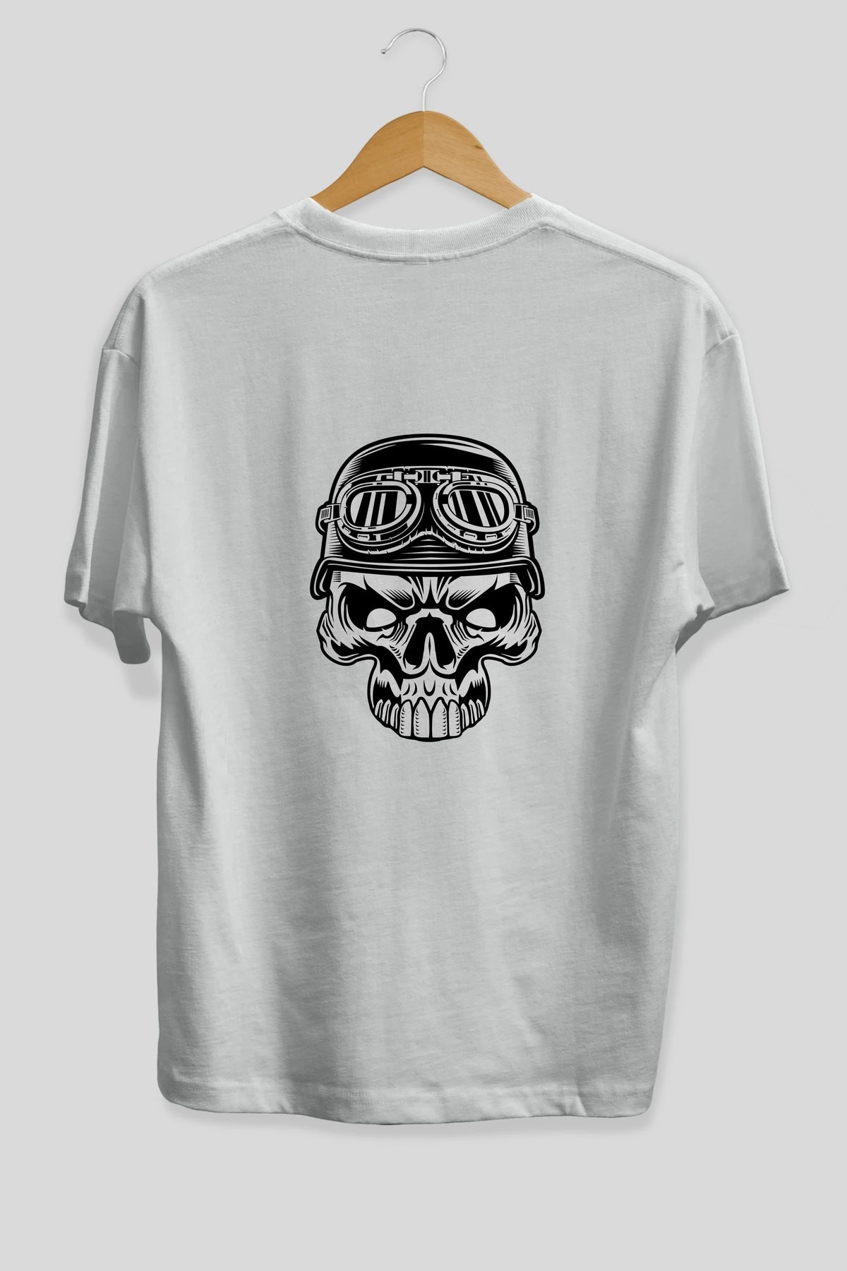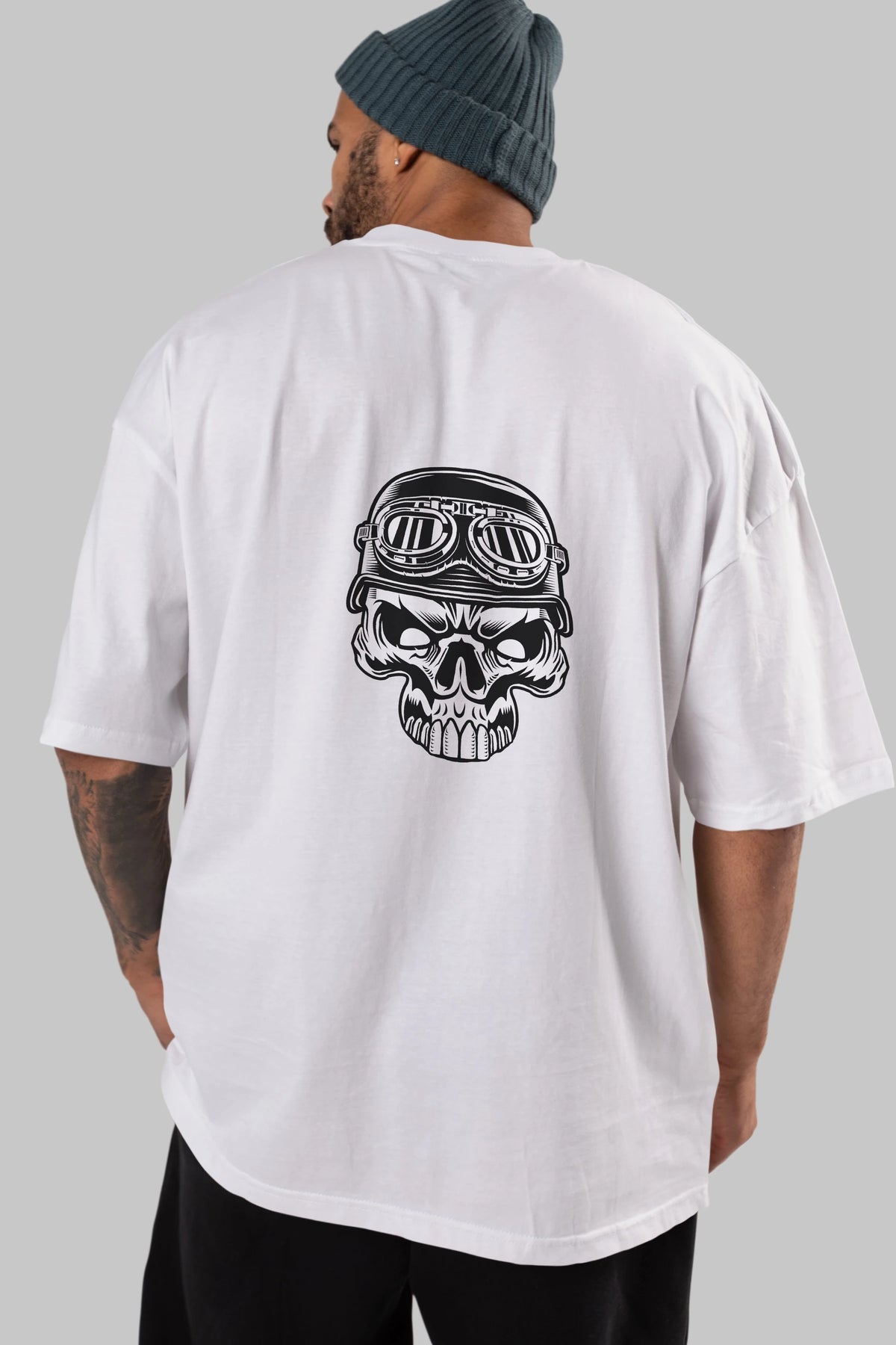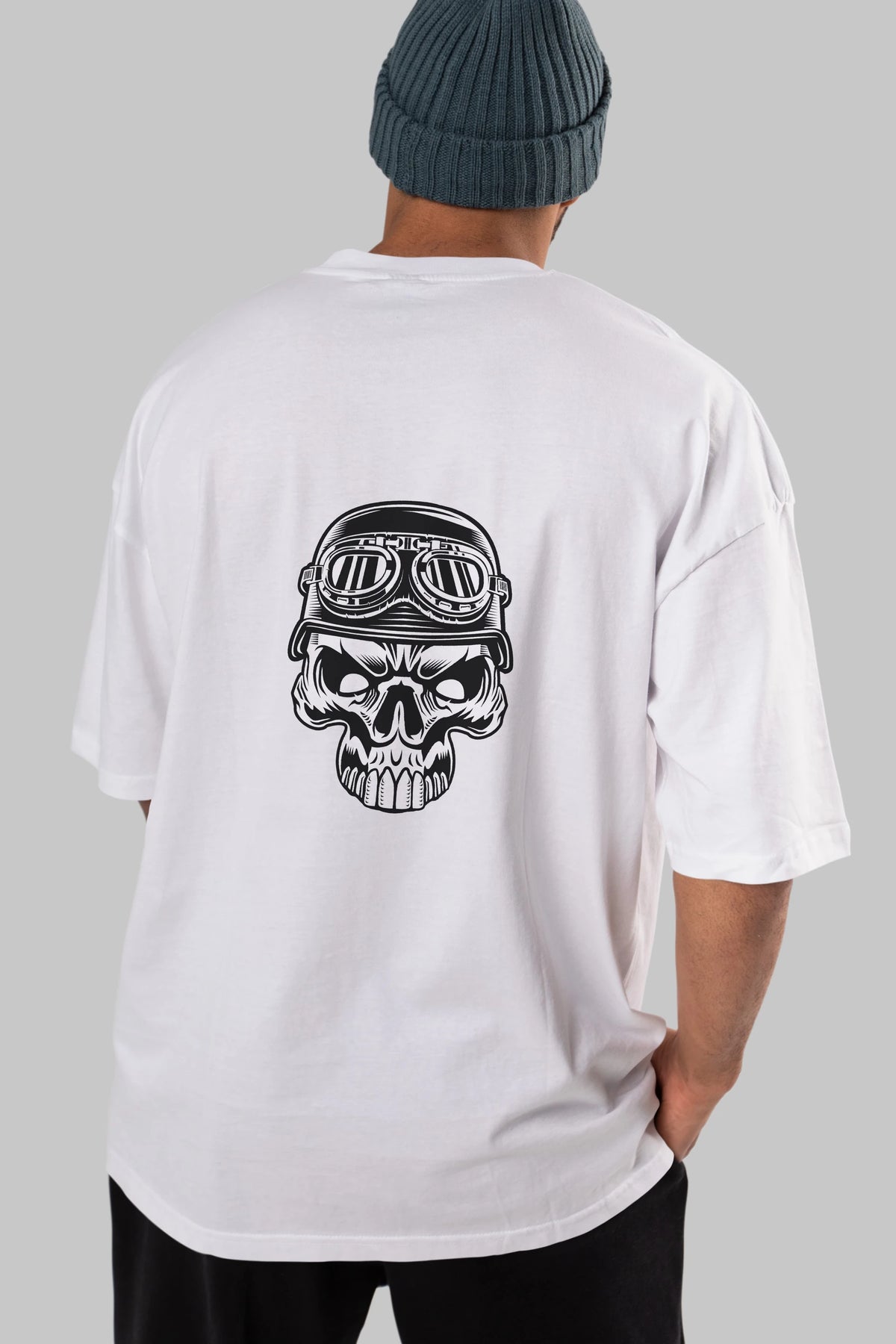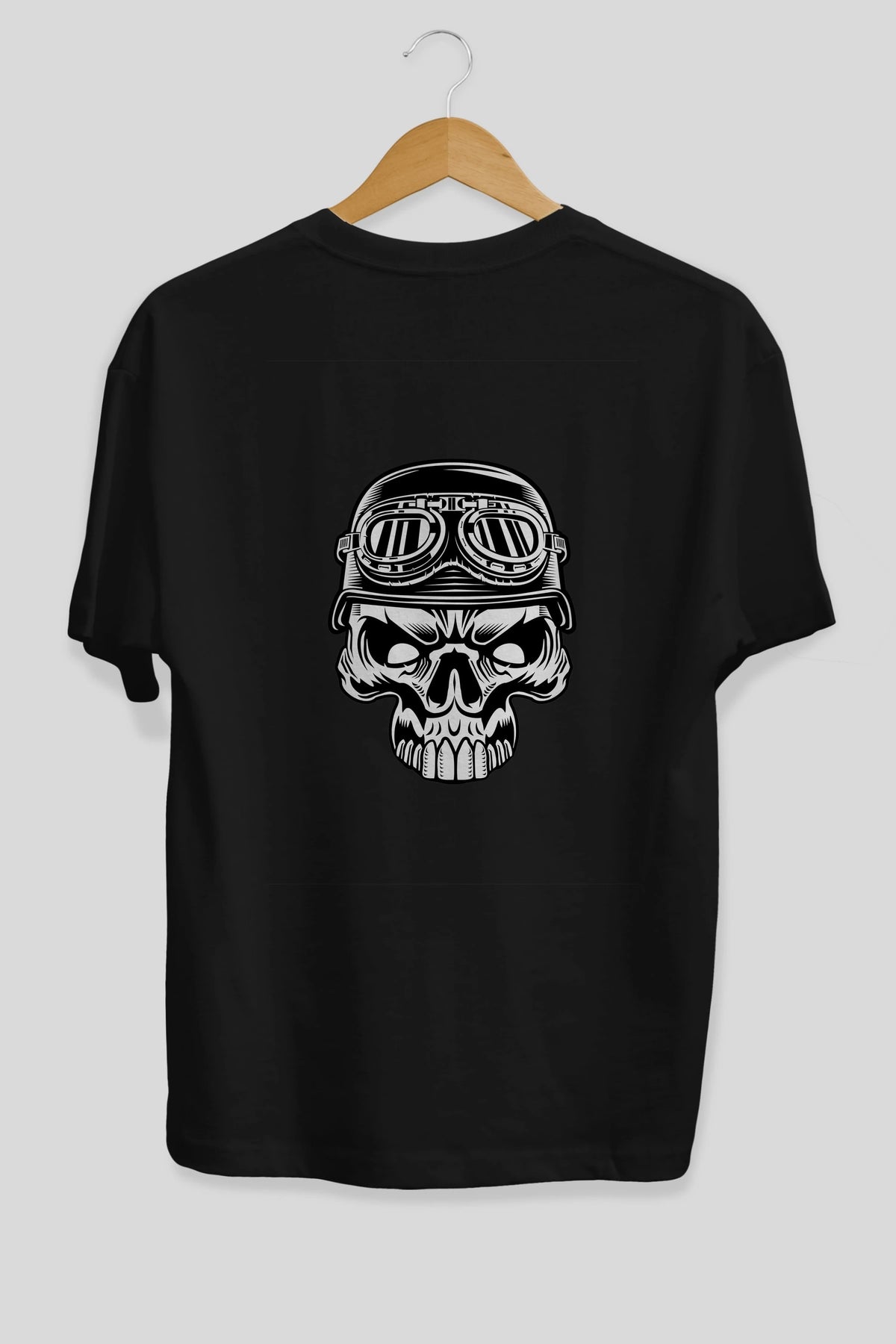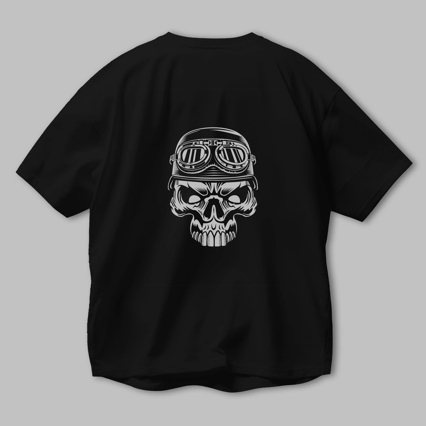 Biker Skull Helmet Arka Baskılı Oversize t-shirt Erkek Kadın Unisex %100 Pamuk tişort