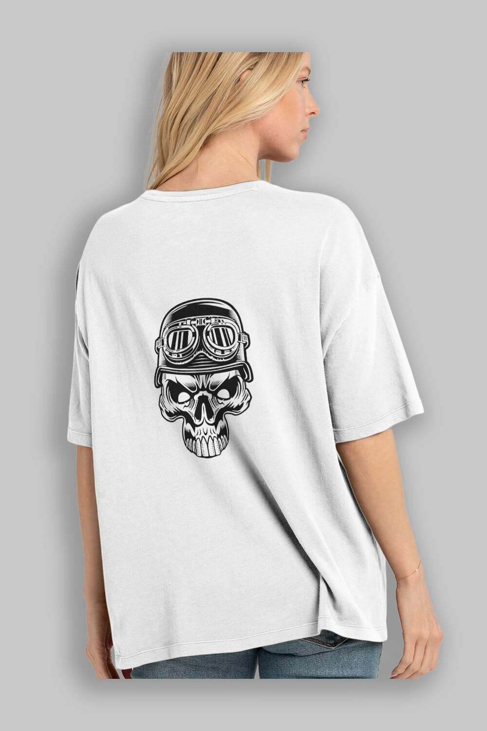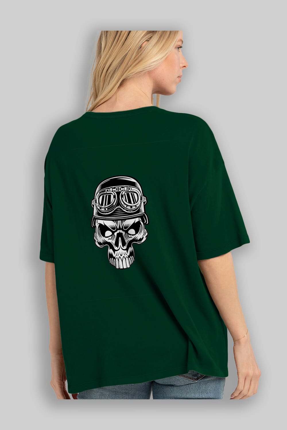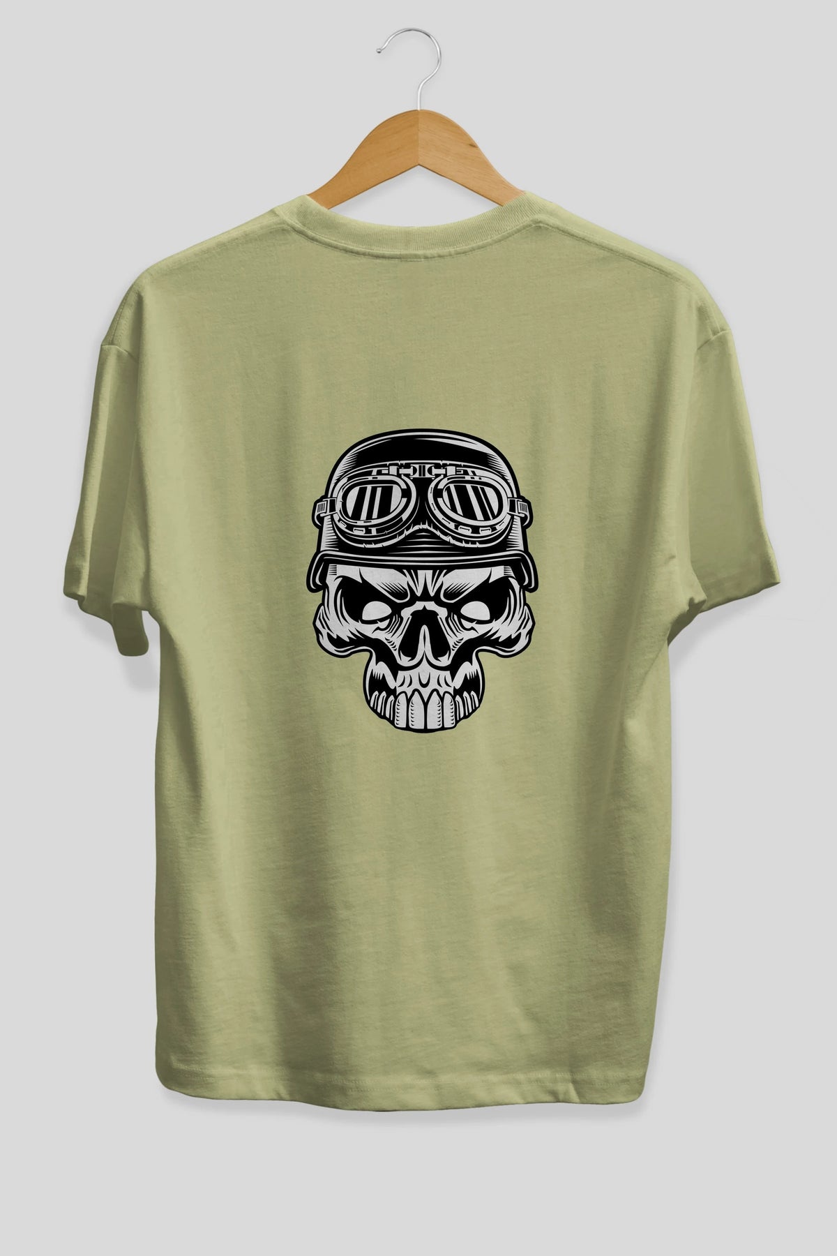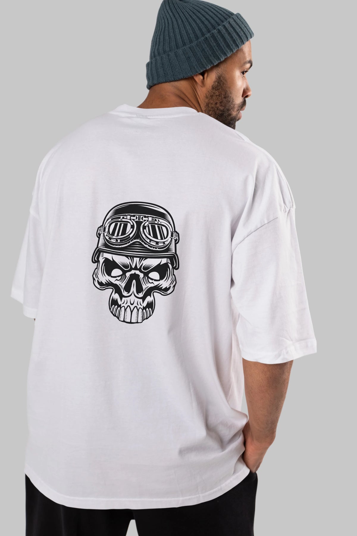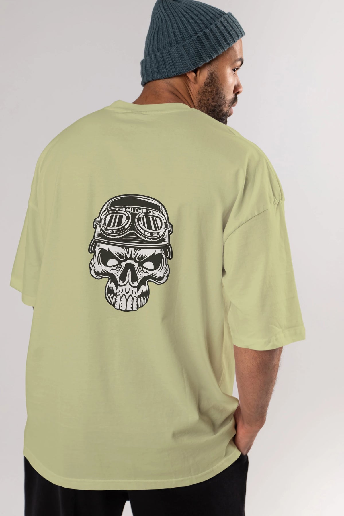 Biker Skull Helmet Arka Baskılı Oversize t-shirt Erkek Kadın Unisex %100 Pamuk tişort