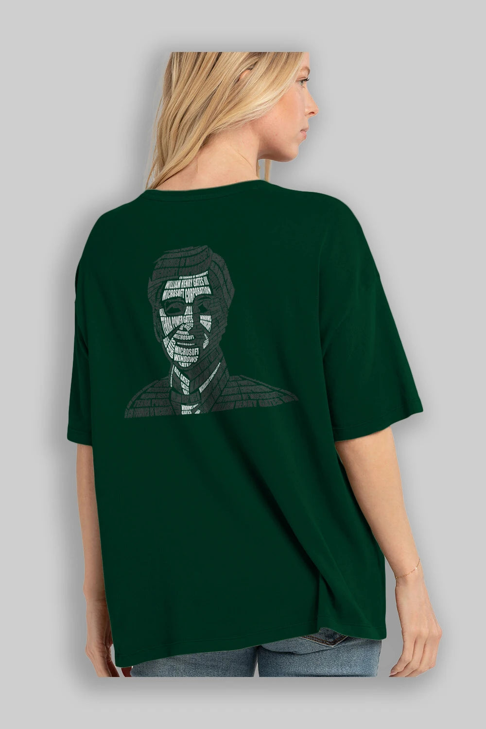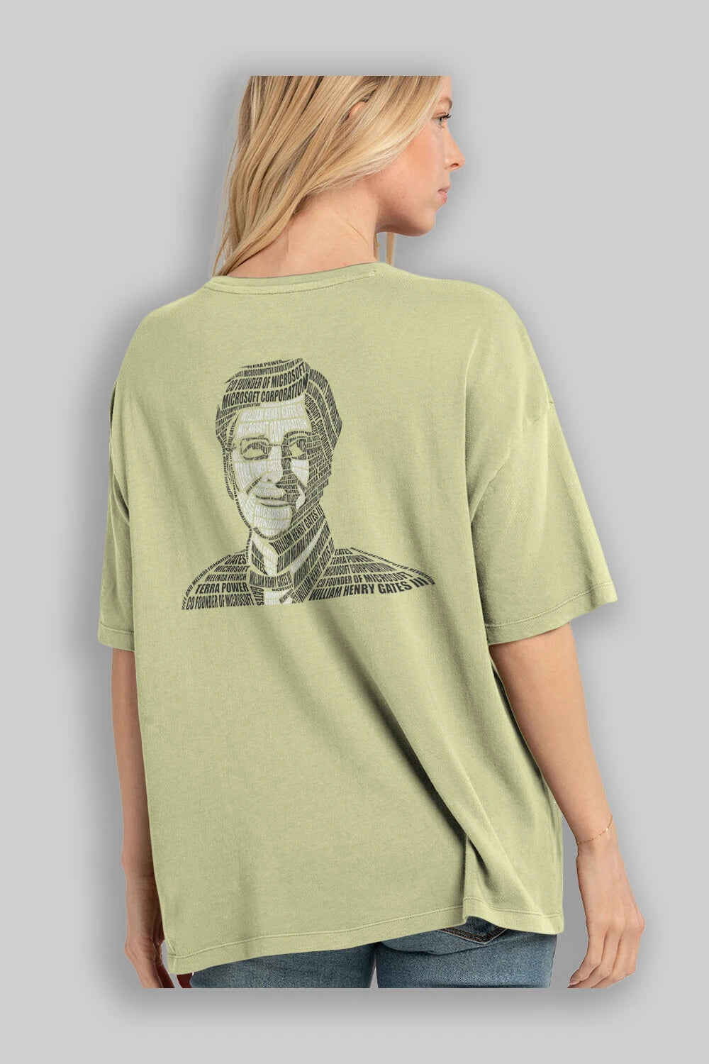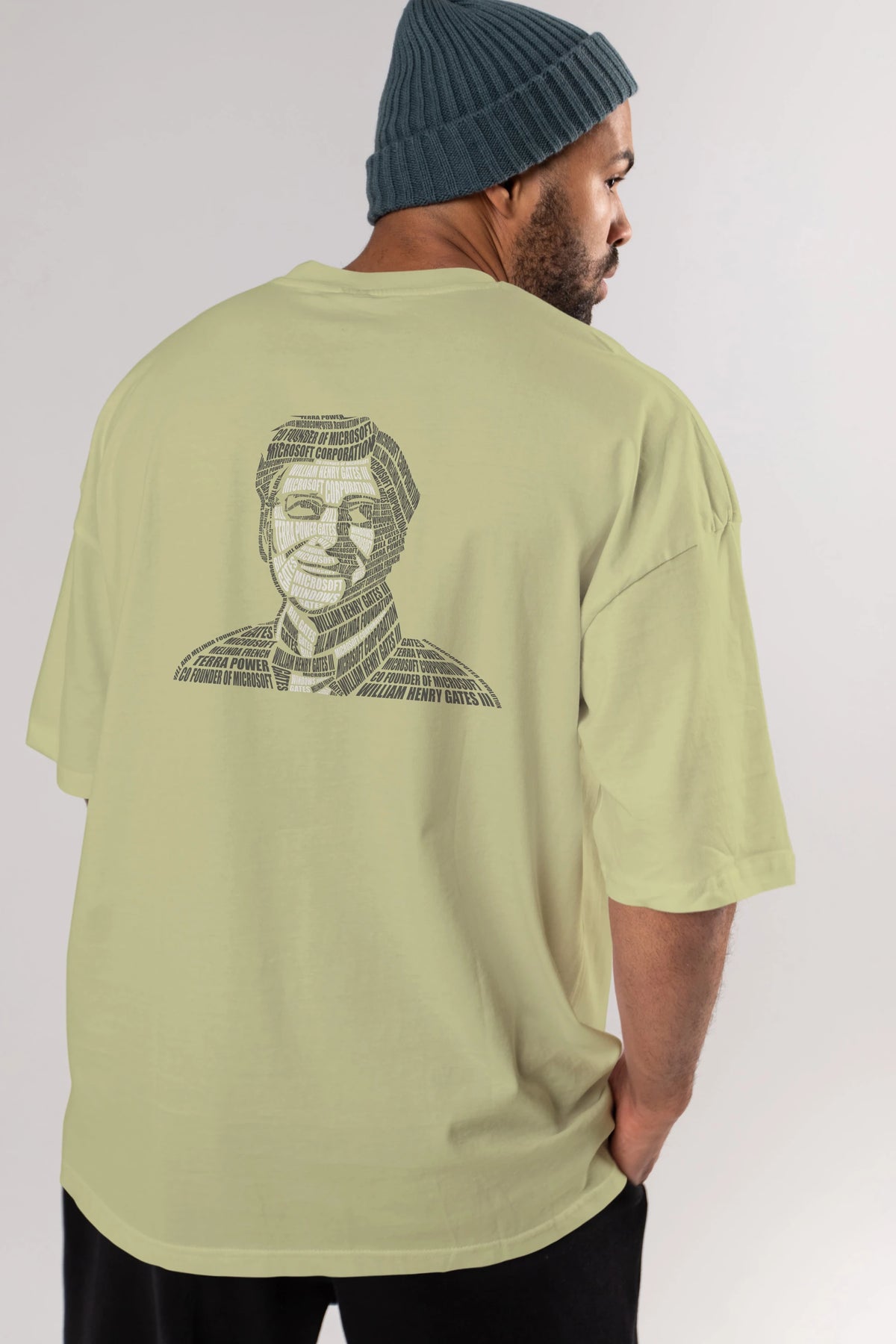 Bill Gates Calligram Arka Baskılı Oversize t-shirt %100 pamuk Erkek Kadın Unisex