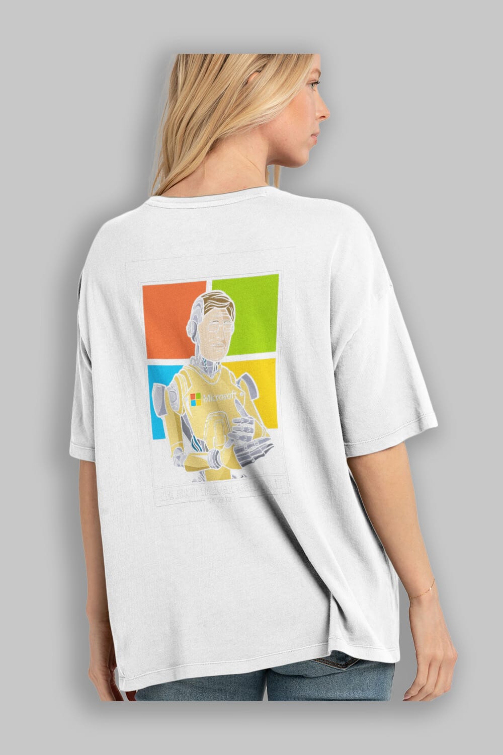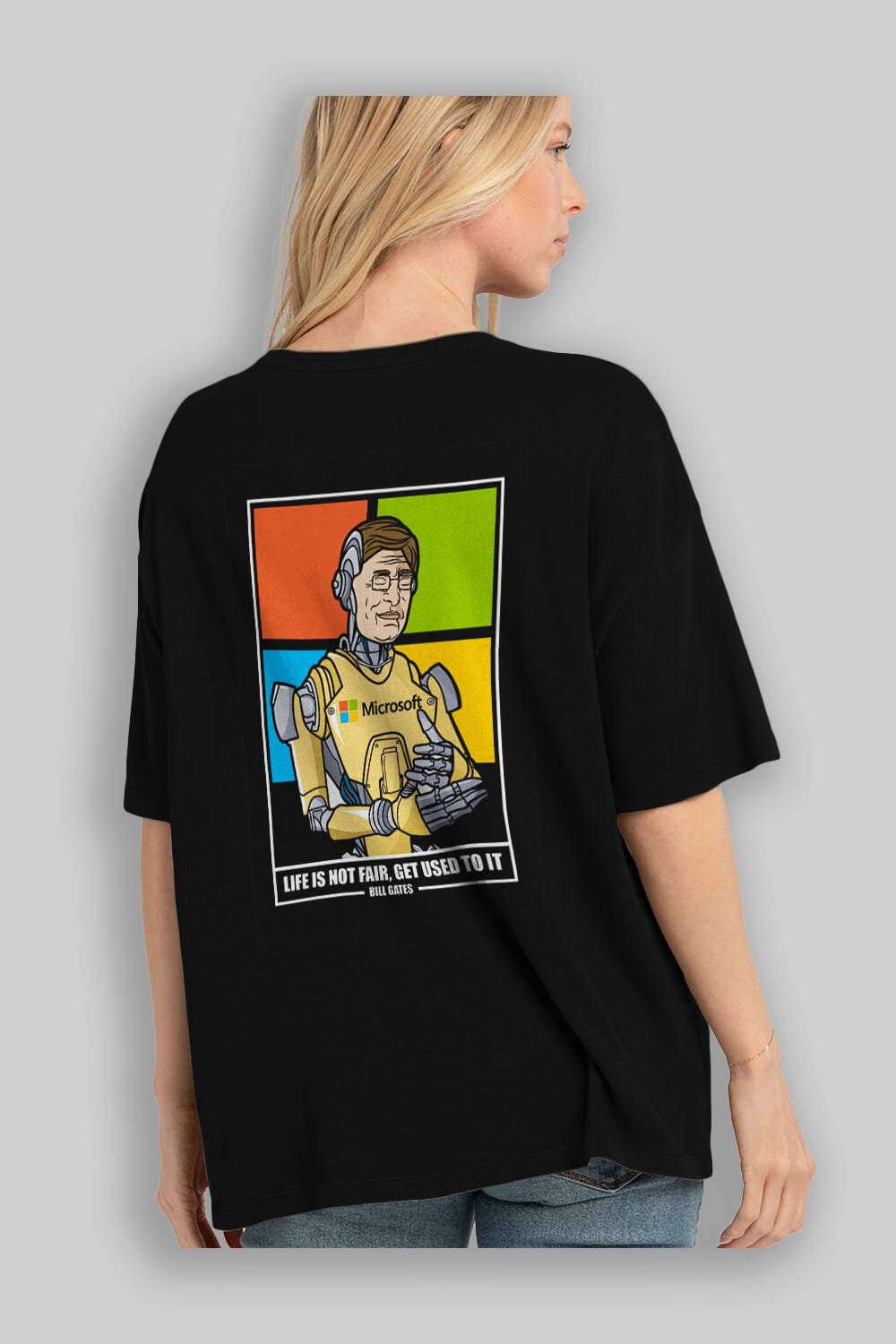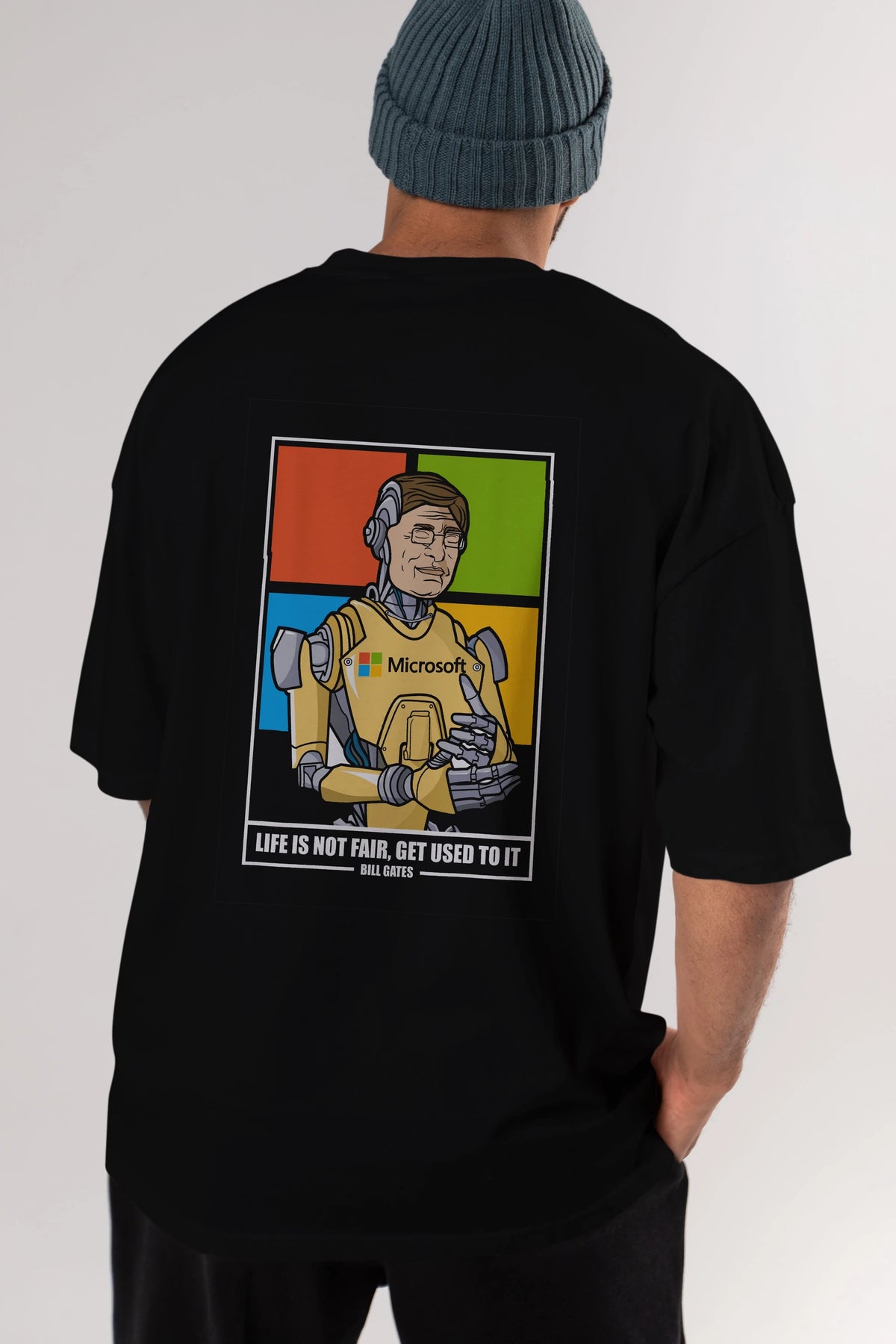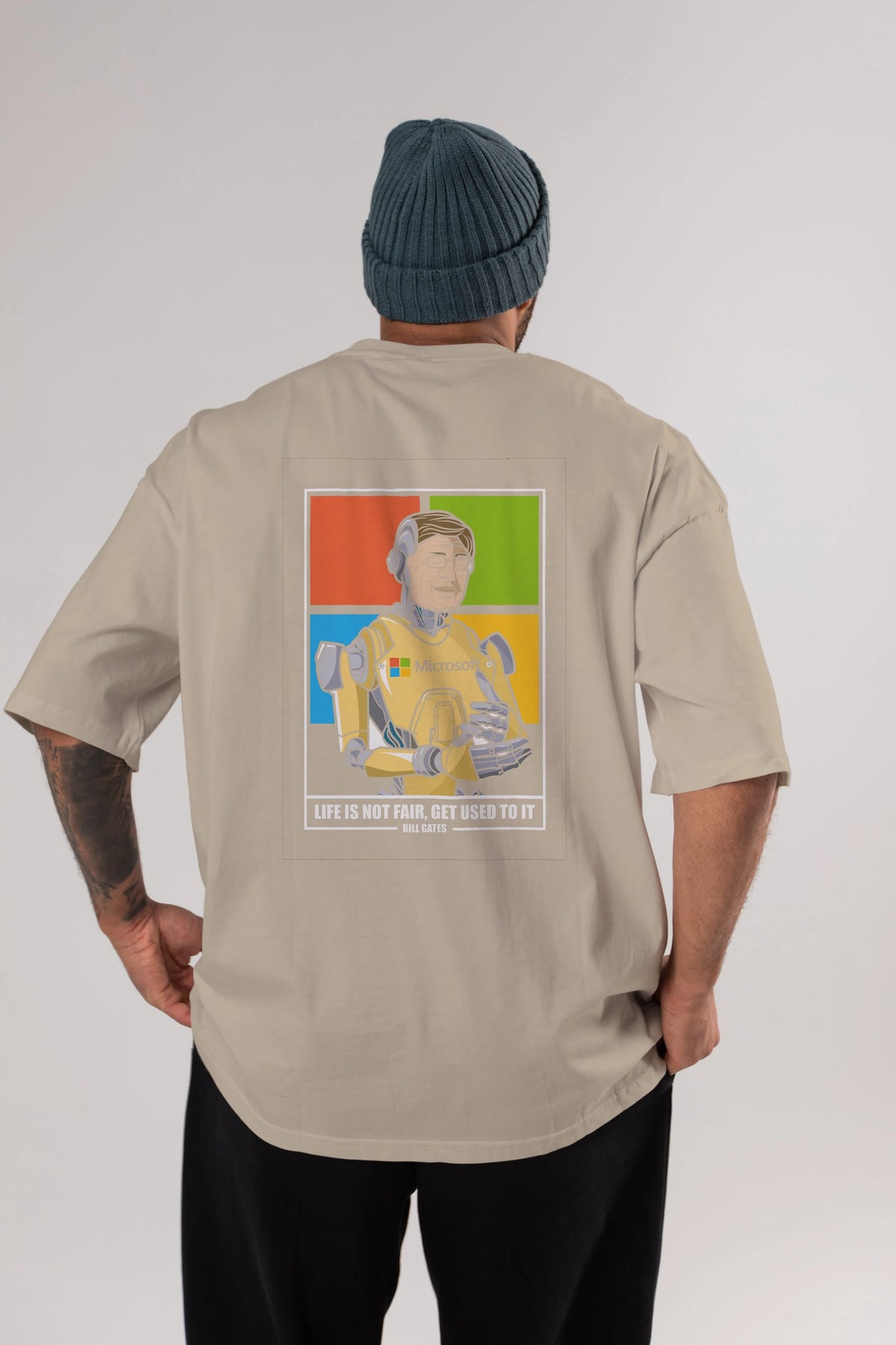 Bill Gates Robot Human Arka Baskılı Oversize t-shirt Erkek Kadın Unisex %100 Pamuk tişort