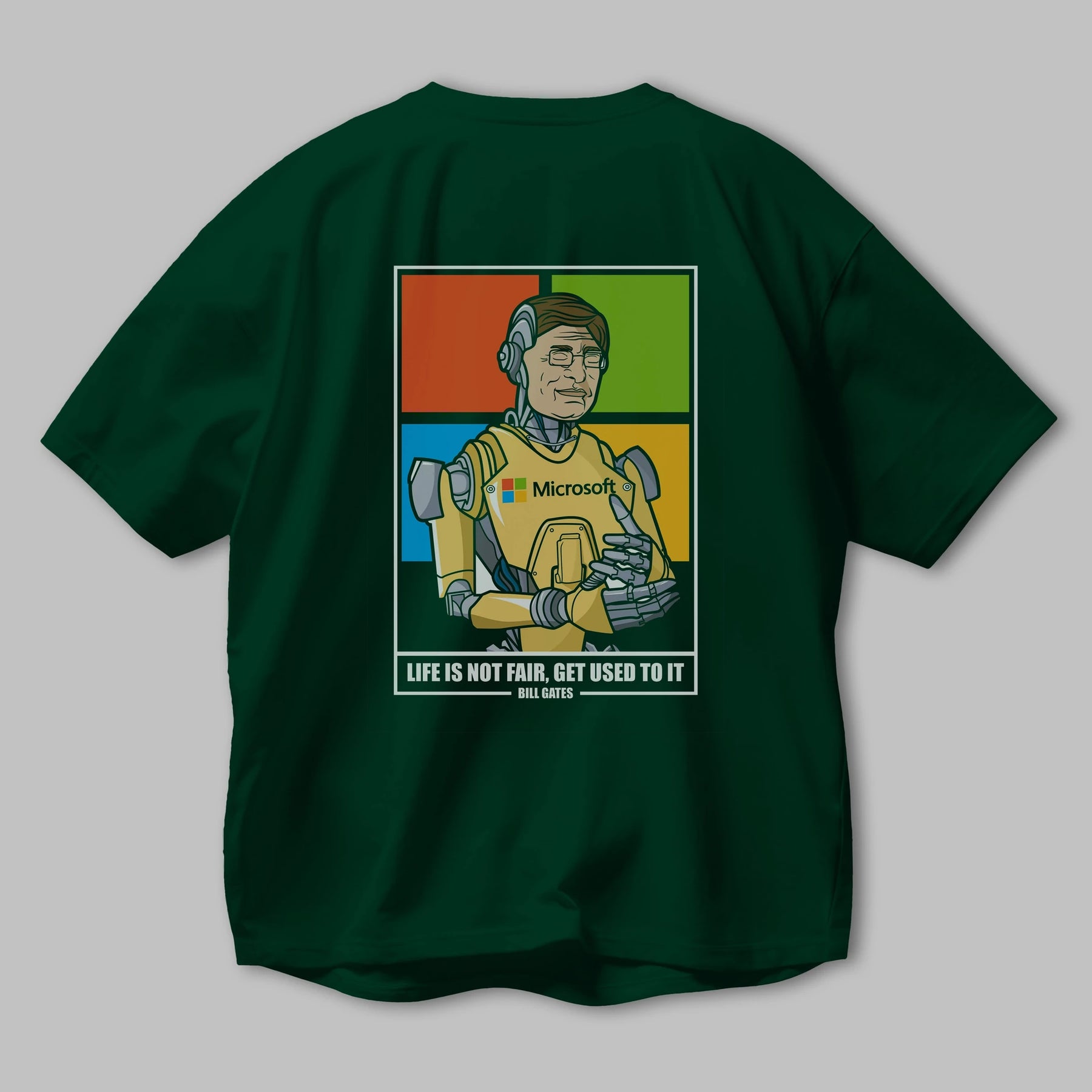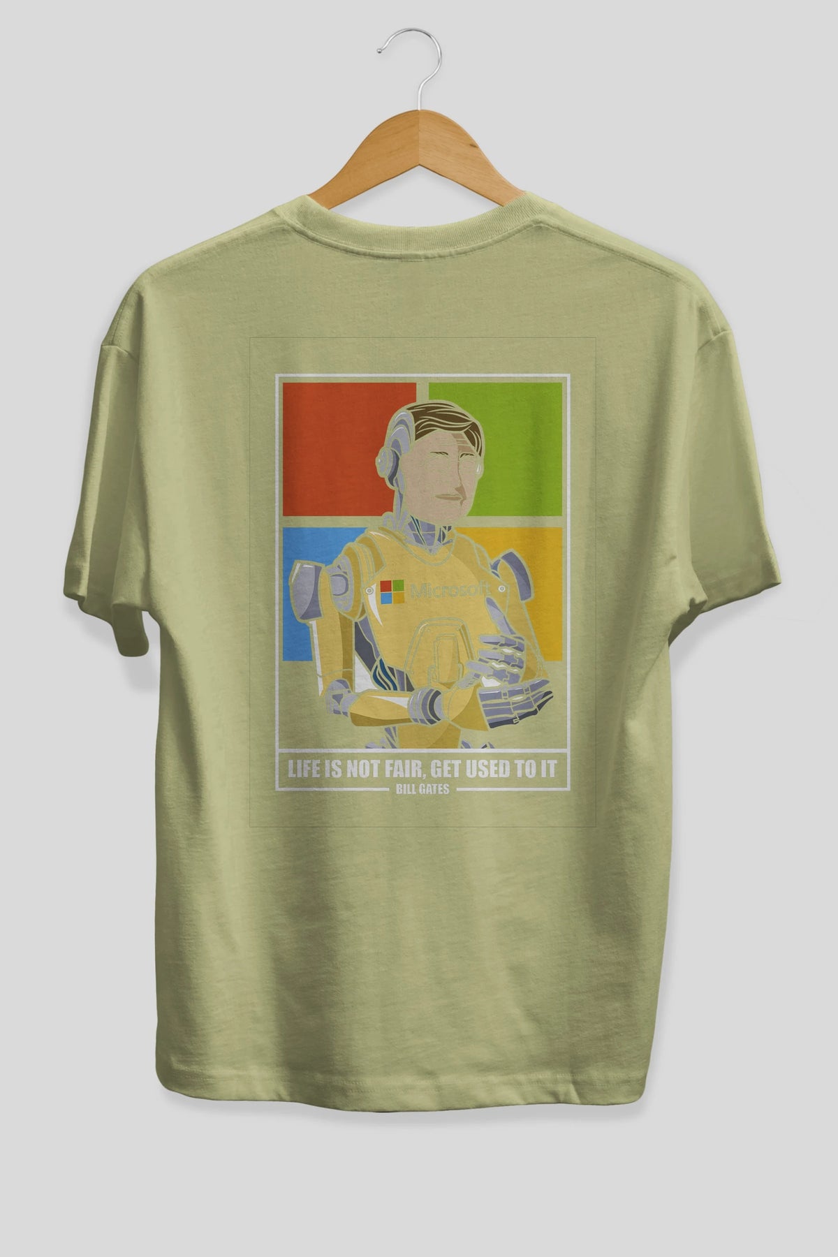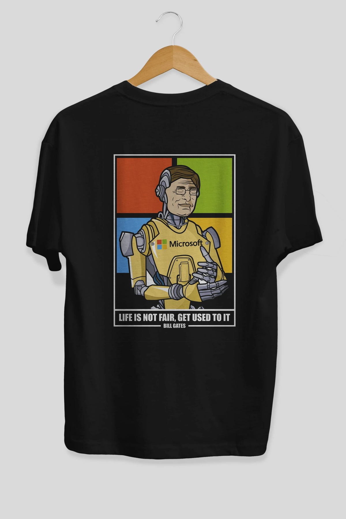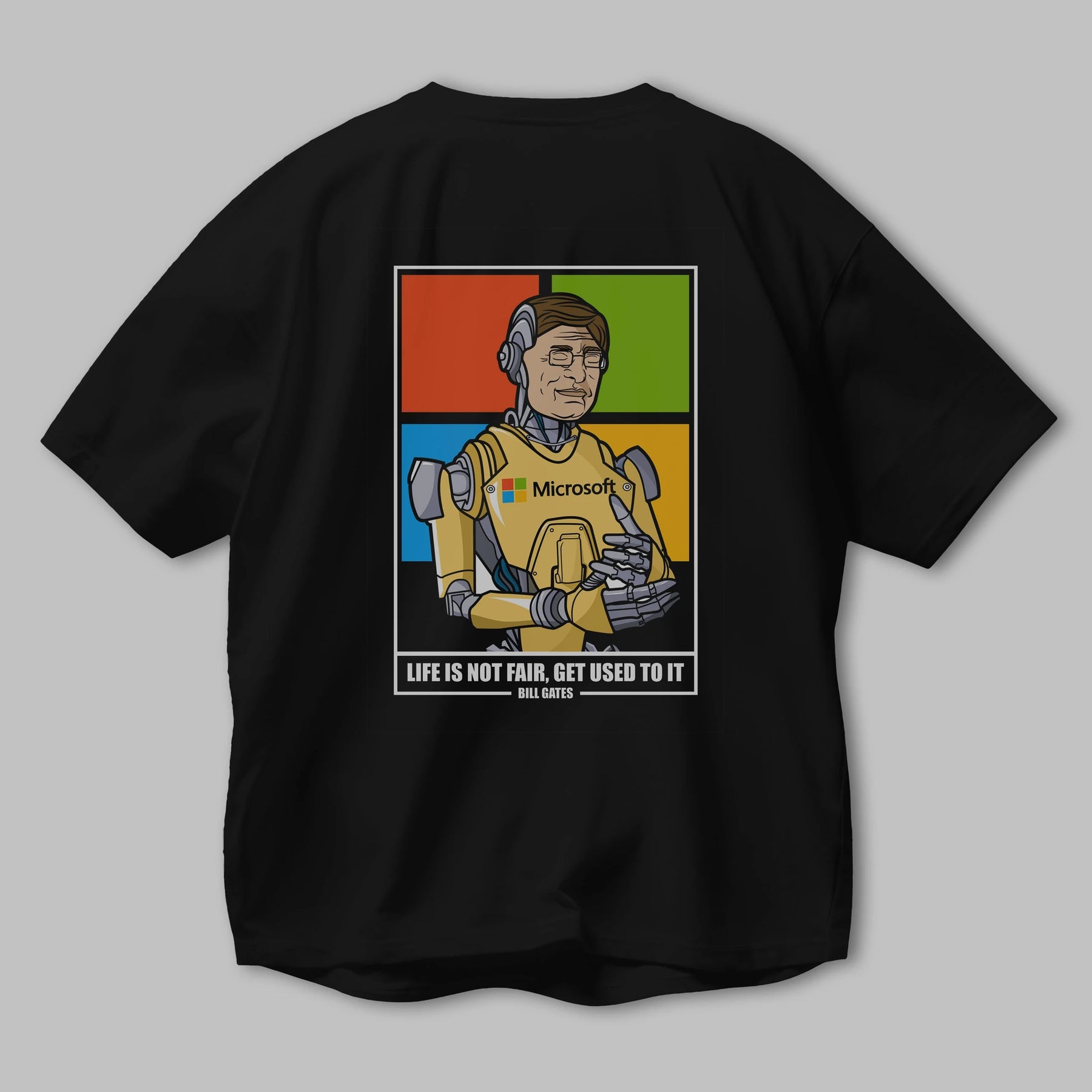 Bill Gates Robot Human Arka Baskılı Oversize t-shirt Erkek Kadın Unisex %100 Pamuk tişort