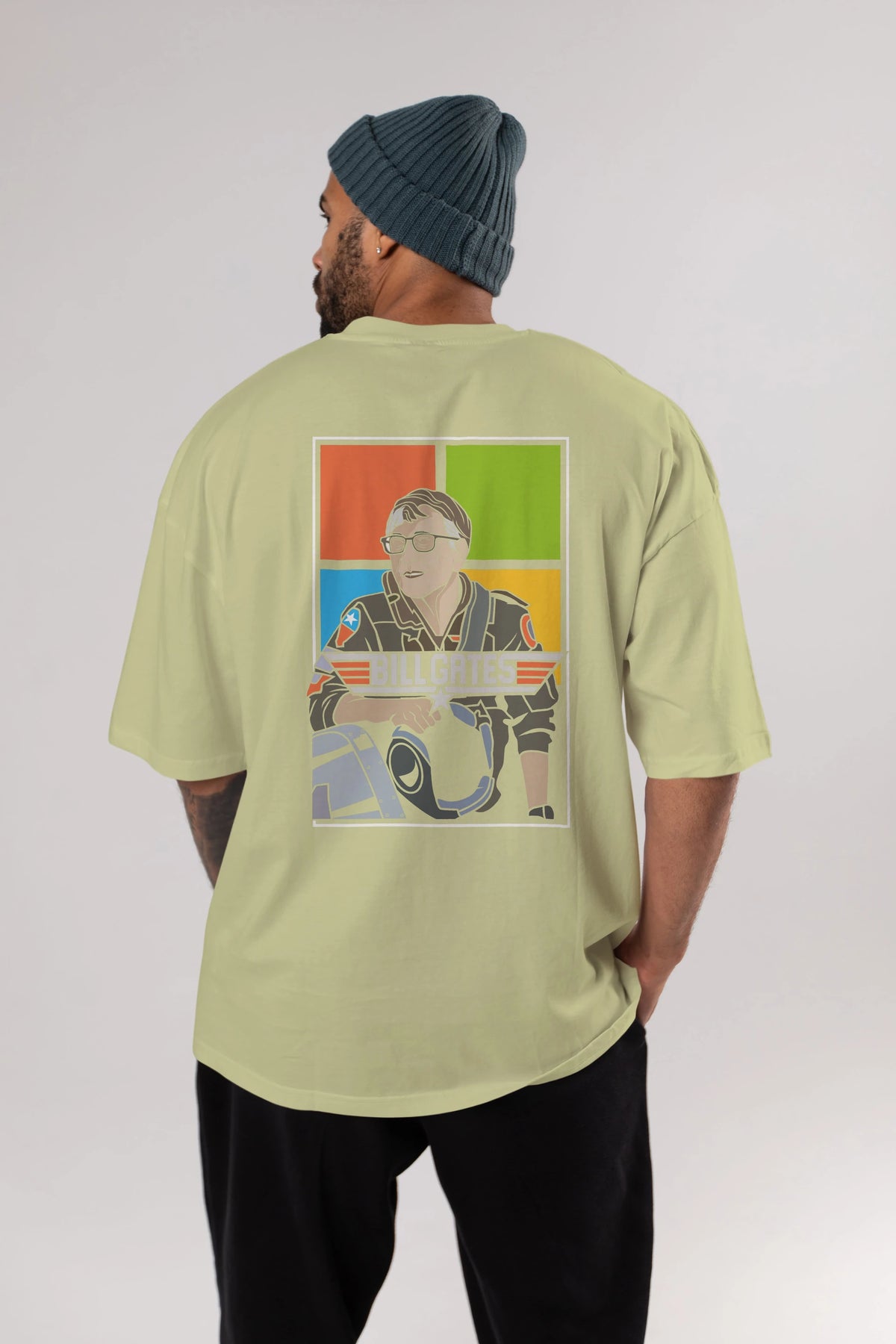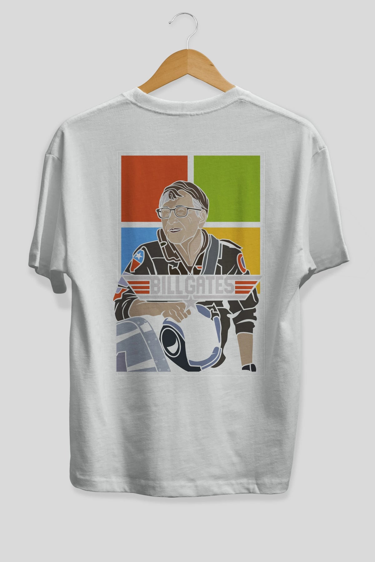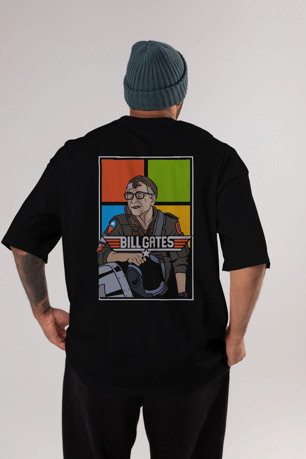 Bill Gates Top Gun Arka Baskılı Oversize t-shirt Erkek Kadın Unisex %100 Pamuk tişort
