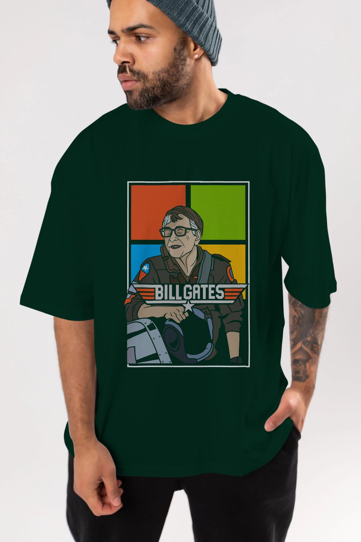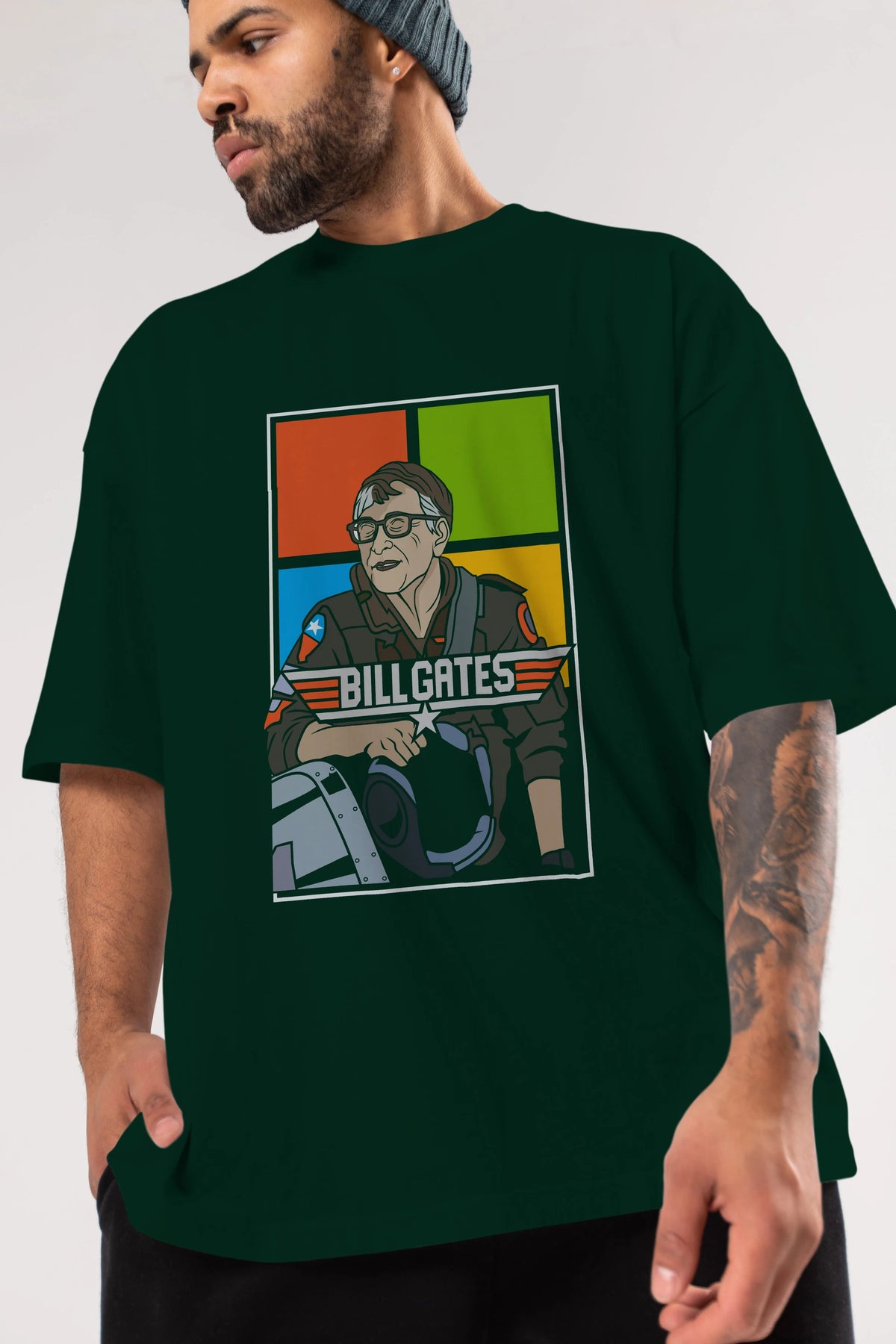 Bill Gates Top Gun Ön Baskılı Oversize t-shirt Erkek Kadın Unisex %100 Pamuk tişort