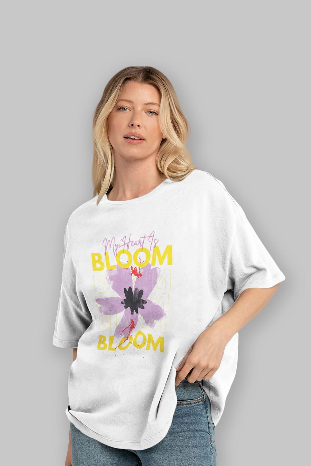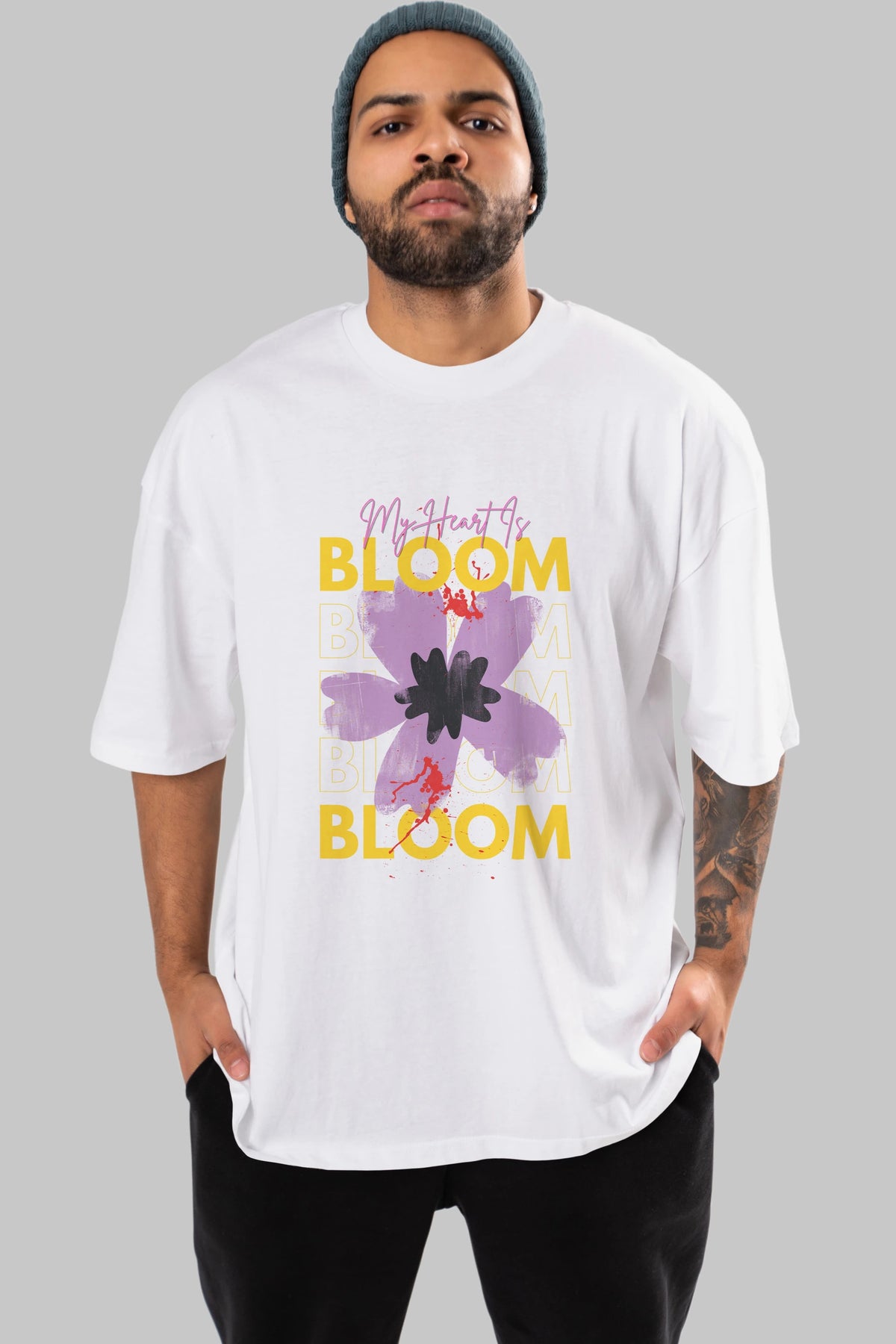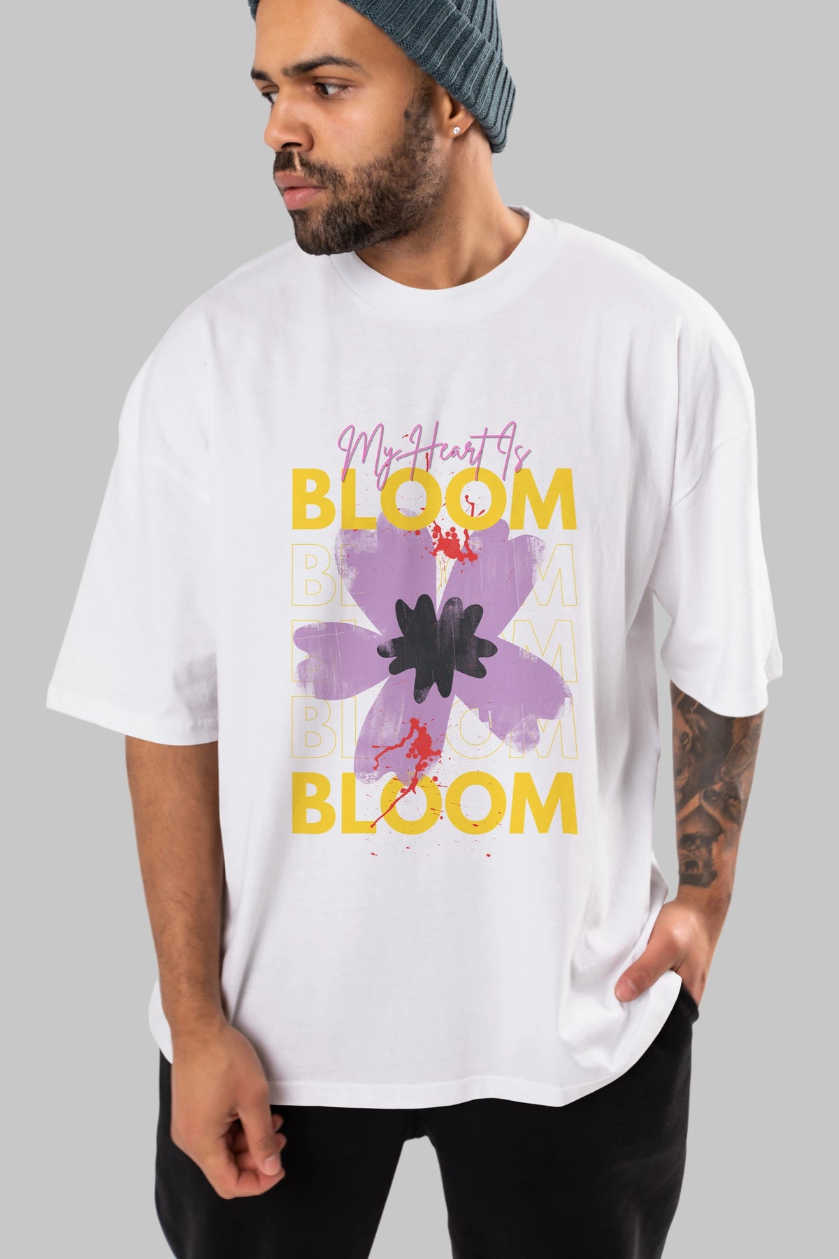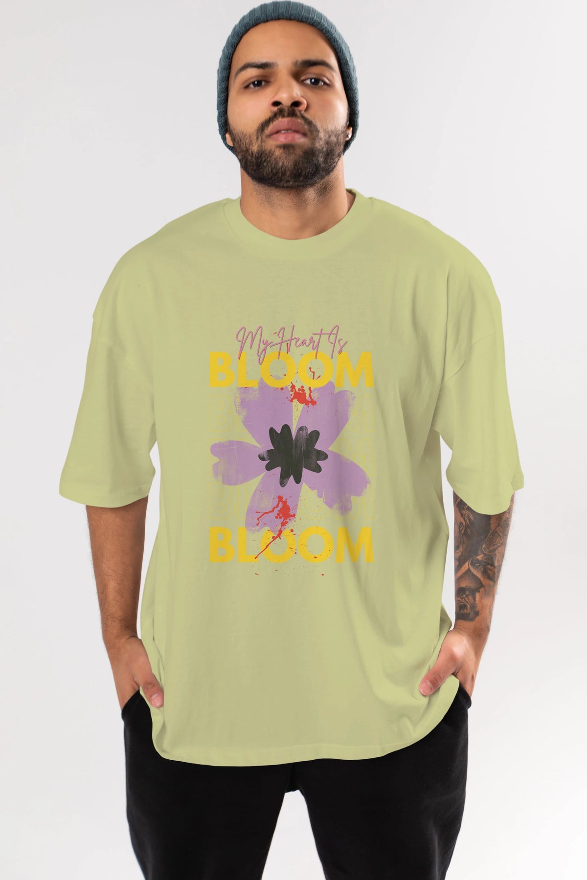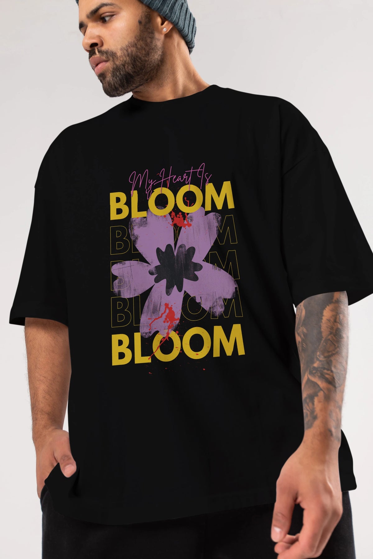 Bloom Yazılı Ön Baskılı Oversize t-shirt Erkek Kadın Unisex
