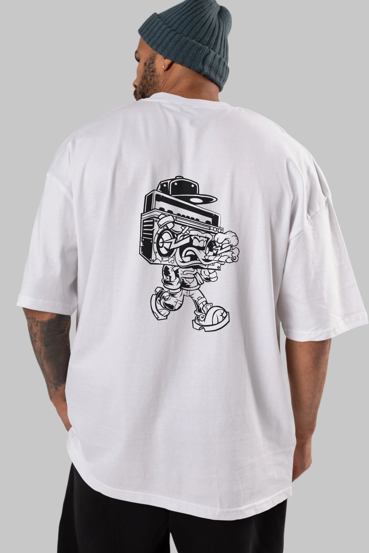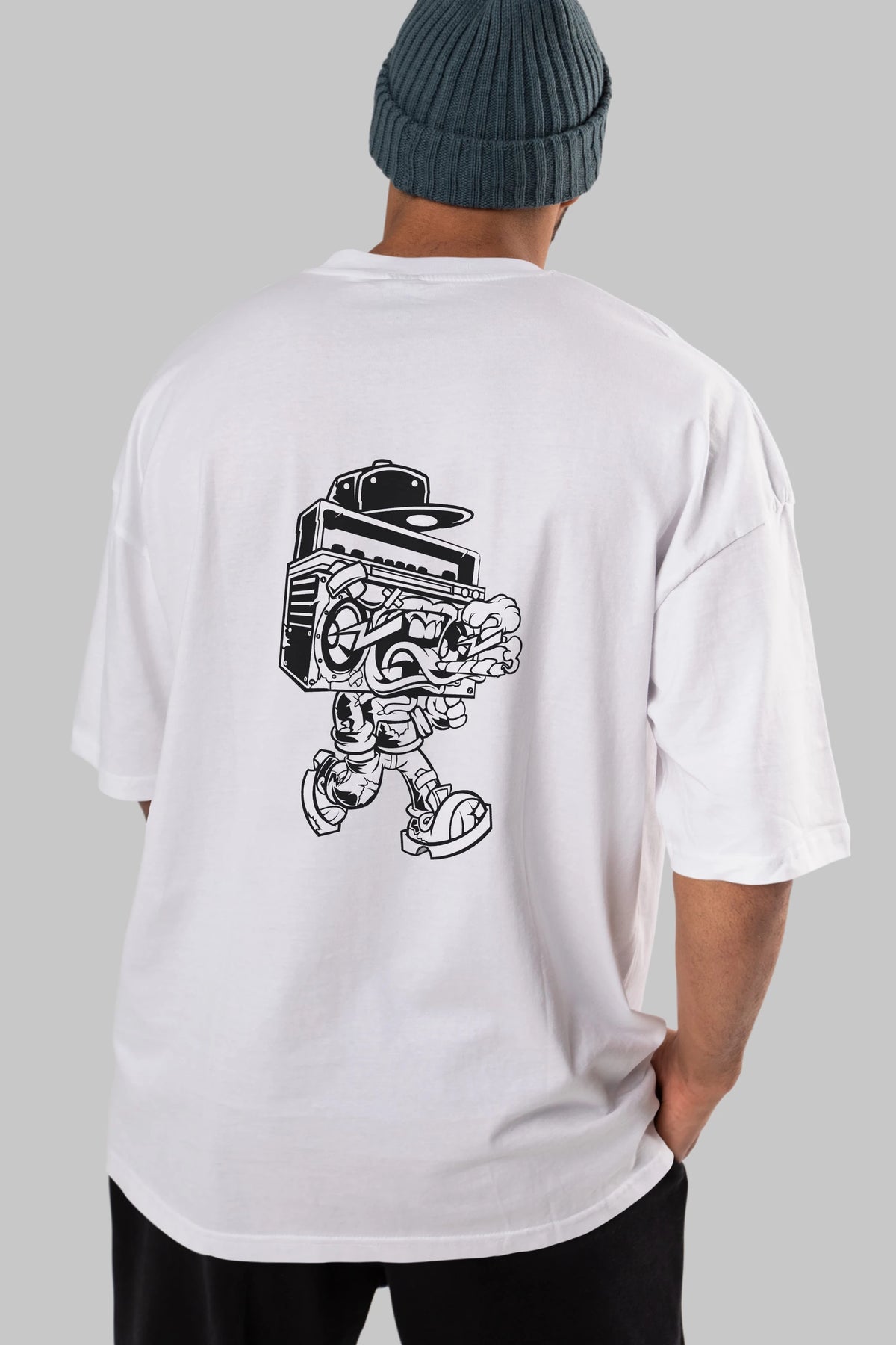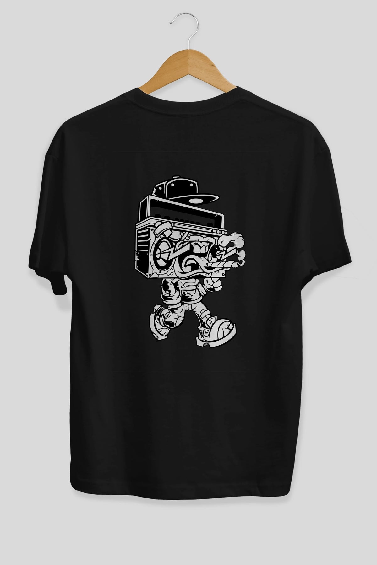 Boombox Arka Baskılı Oversize t-shirt Erkek Kadın Unisex %100 Pamuk tişort