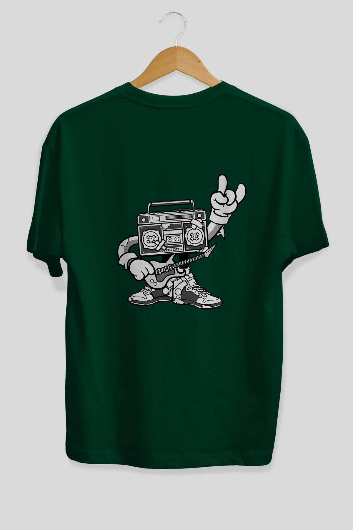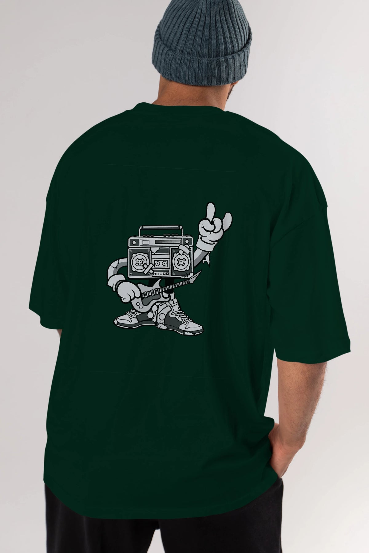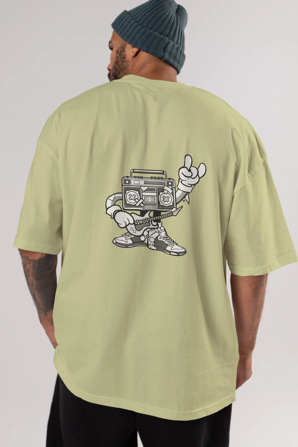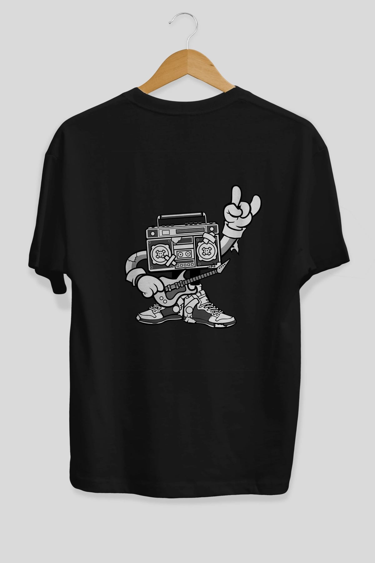 Boombox Rockstar Arka Baskılı Oversize t-shirt Erkek Kadın Unisex %100 Pamuk tişort
