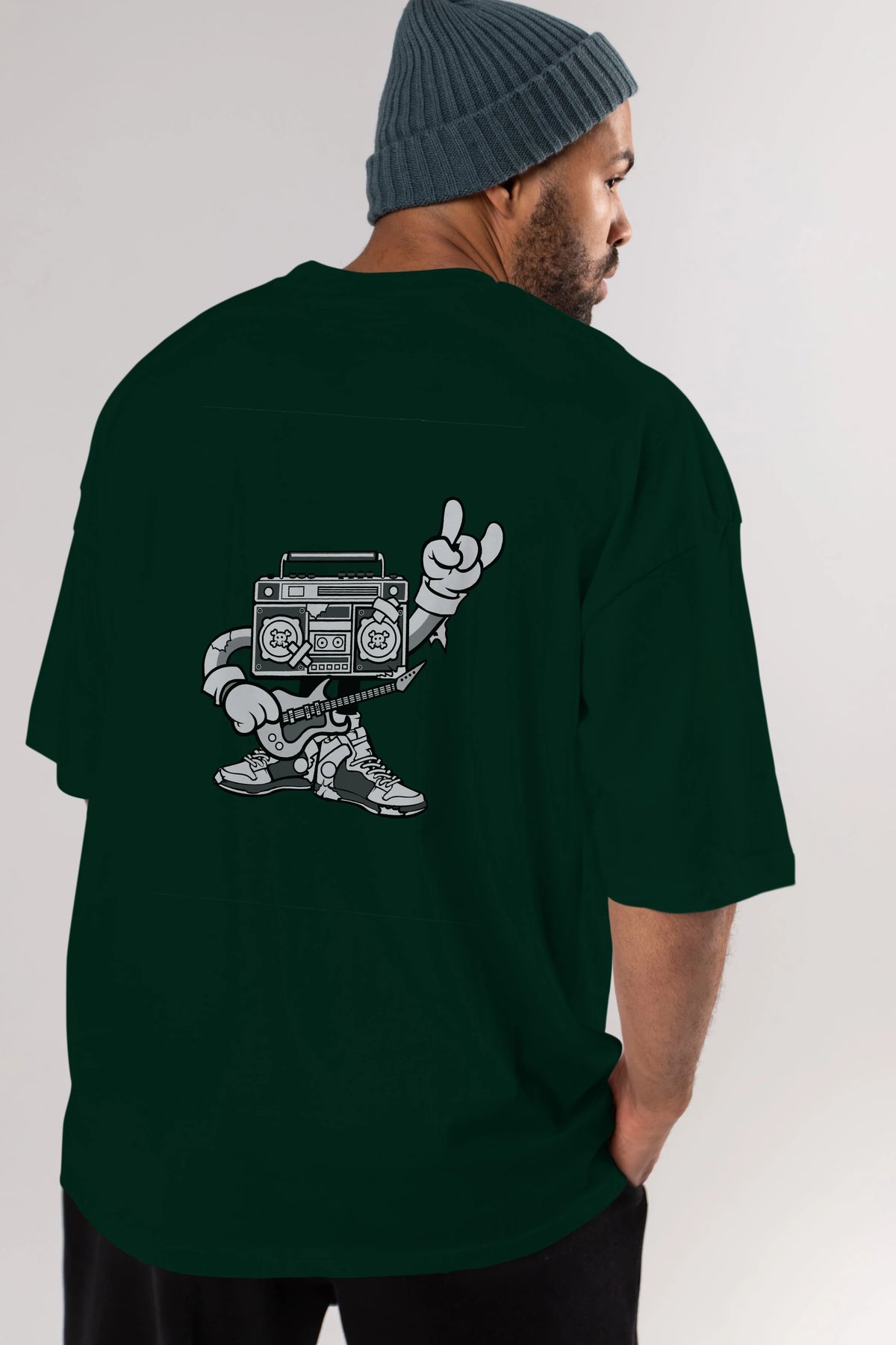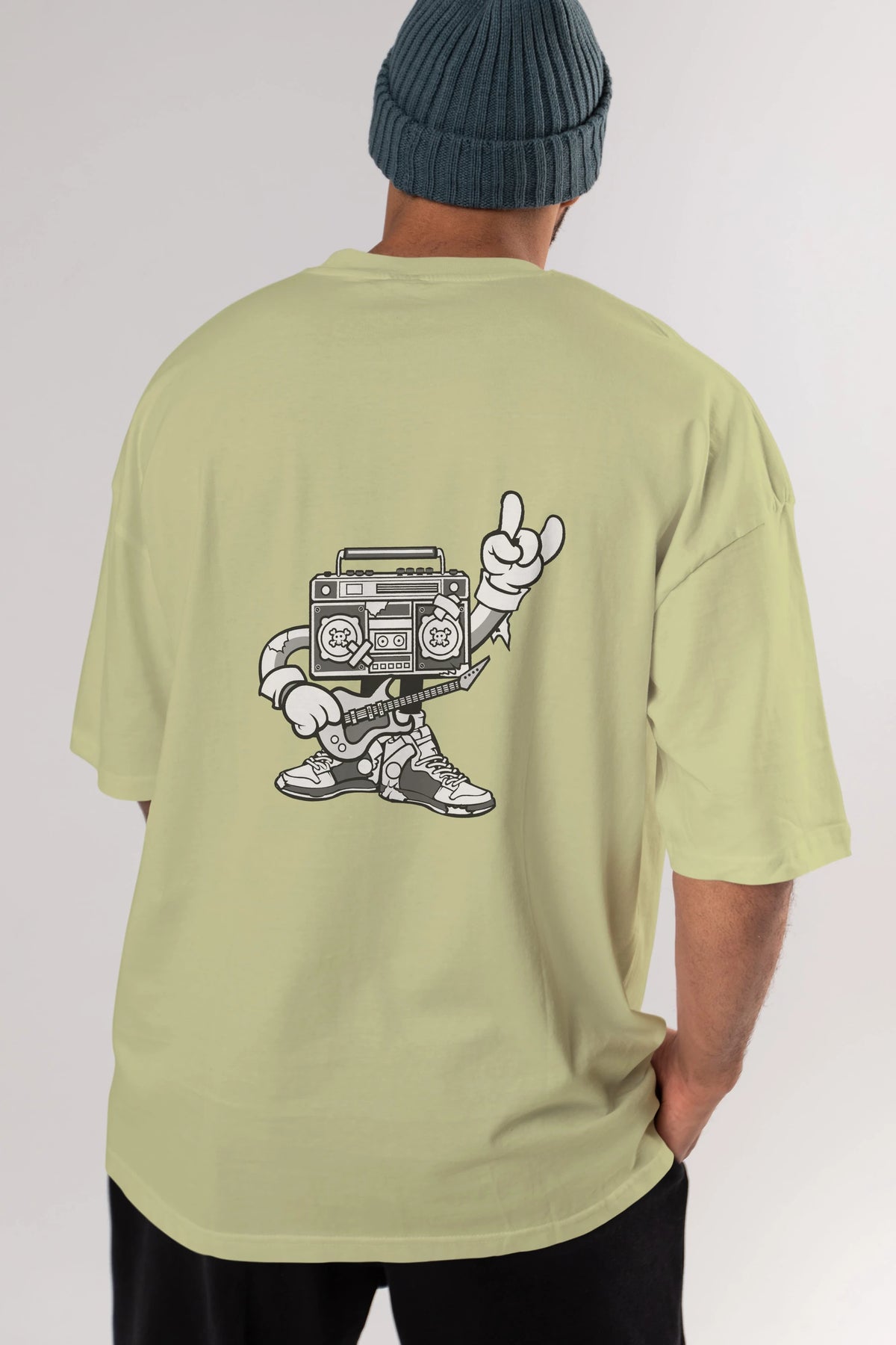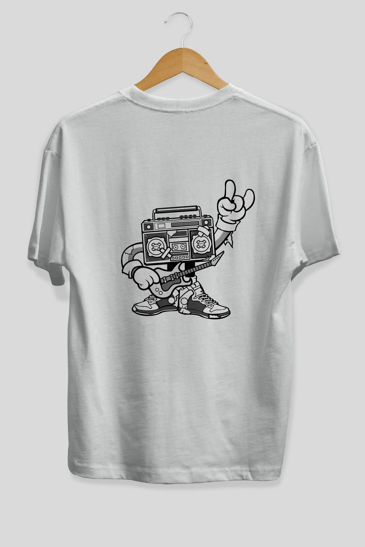 Boombox Rockstar Arka Baskılı Oversize t-shirt Erkek Kadın Unisex %100 Pamuk tişort