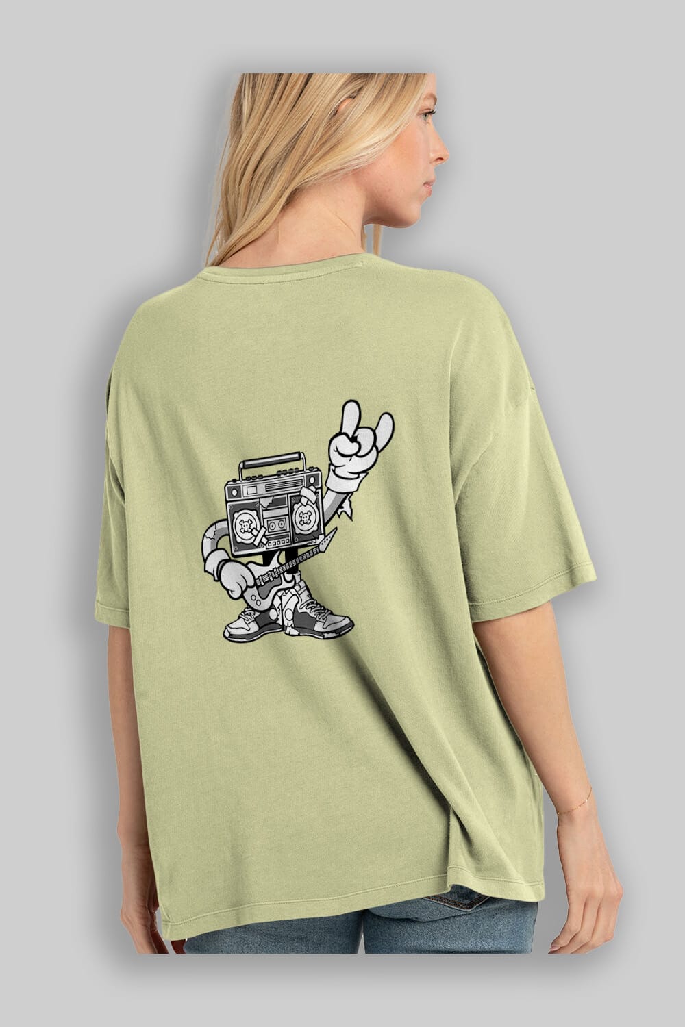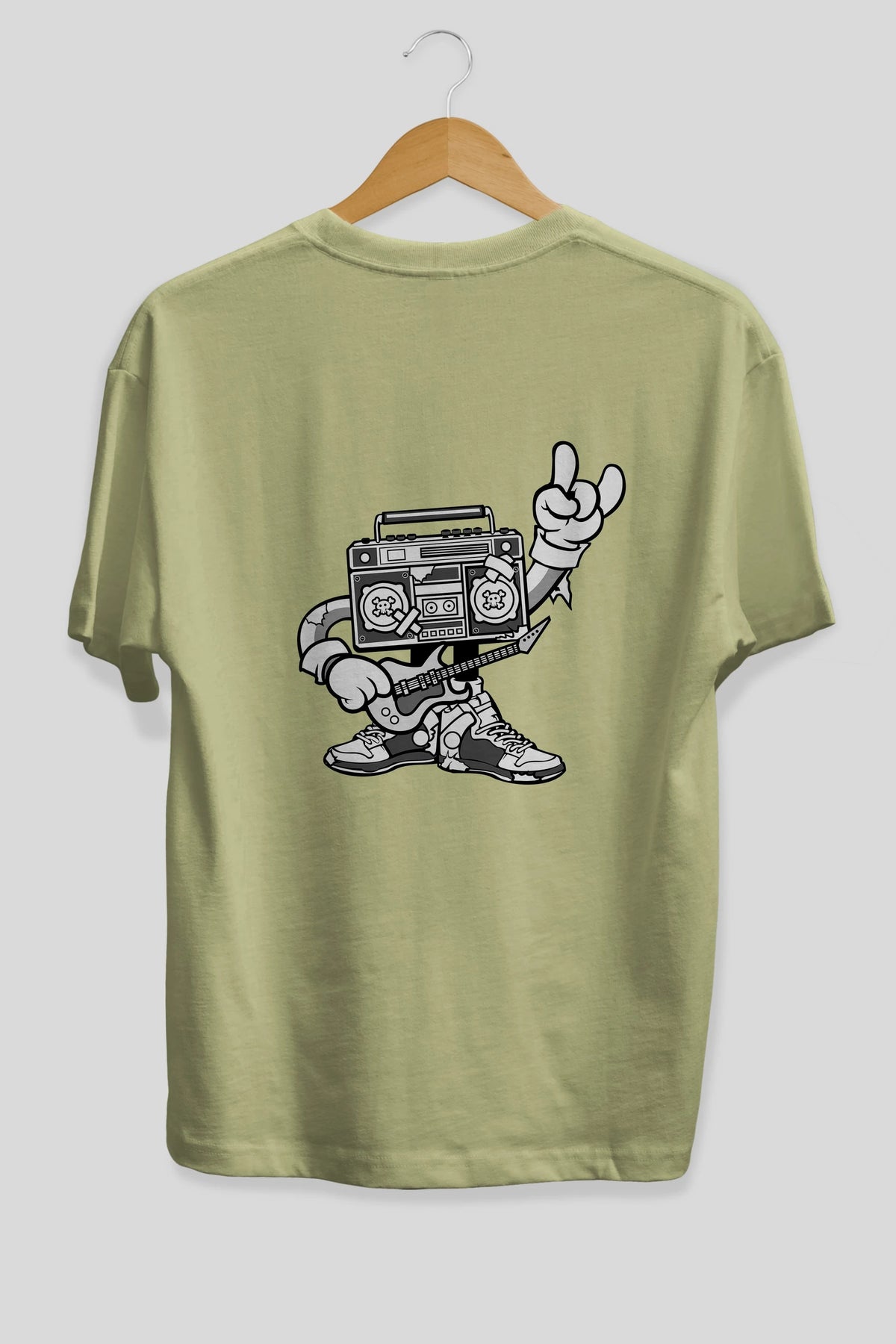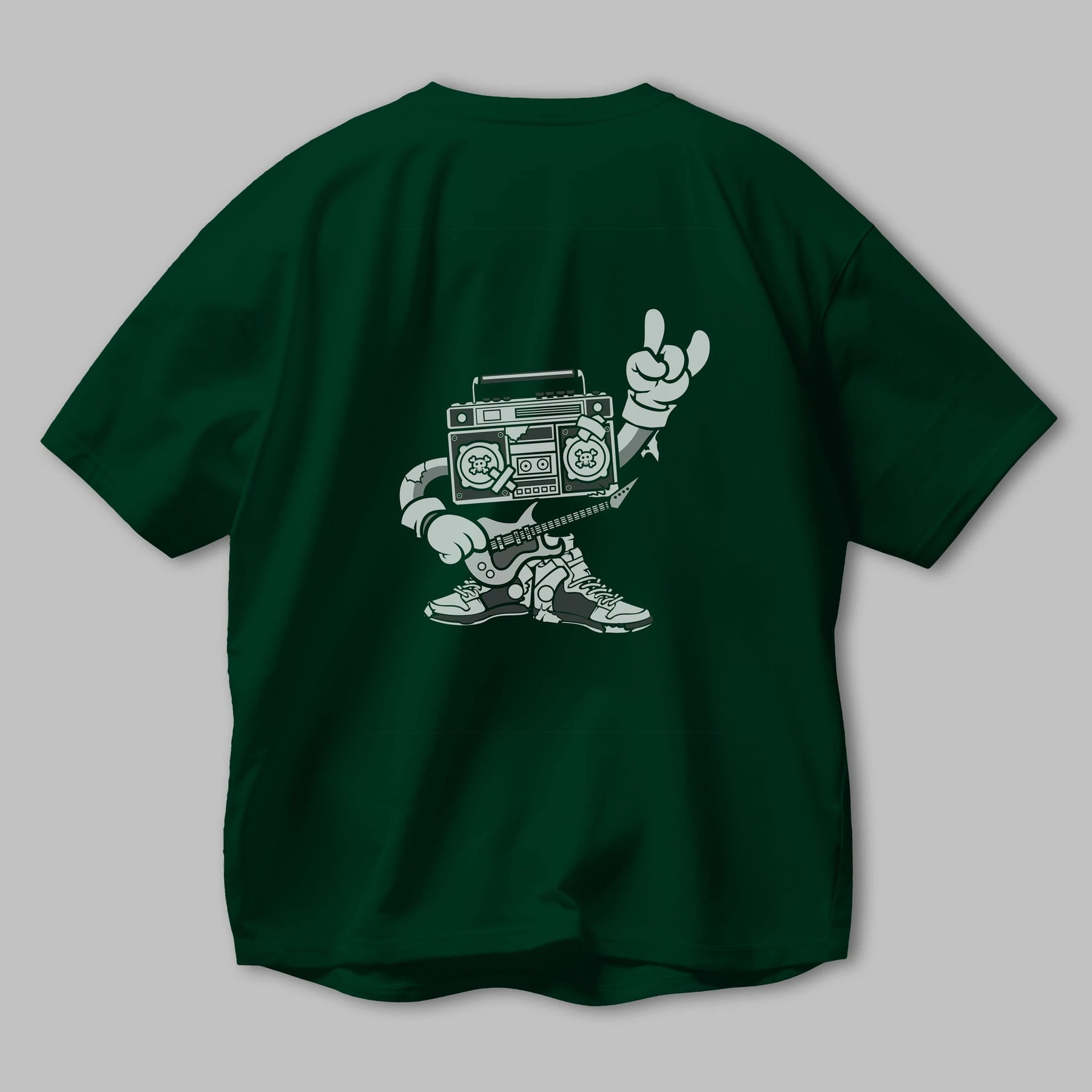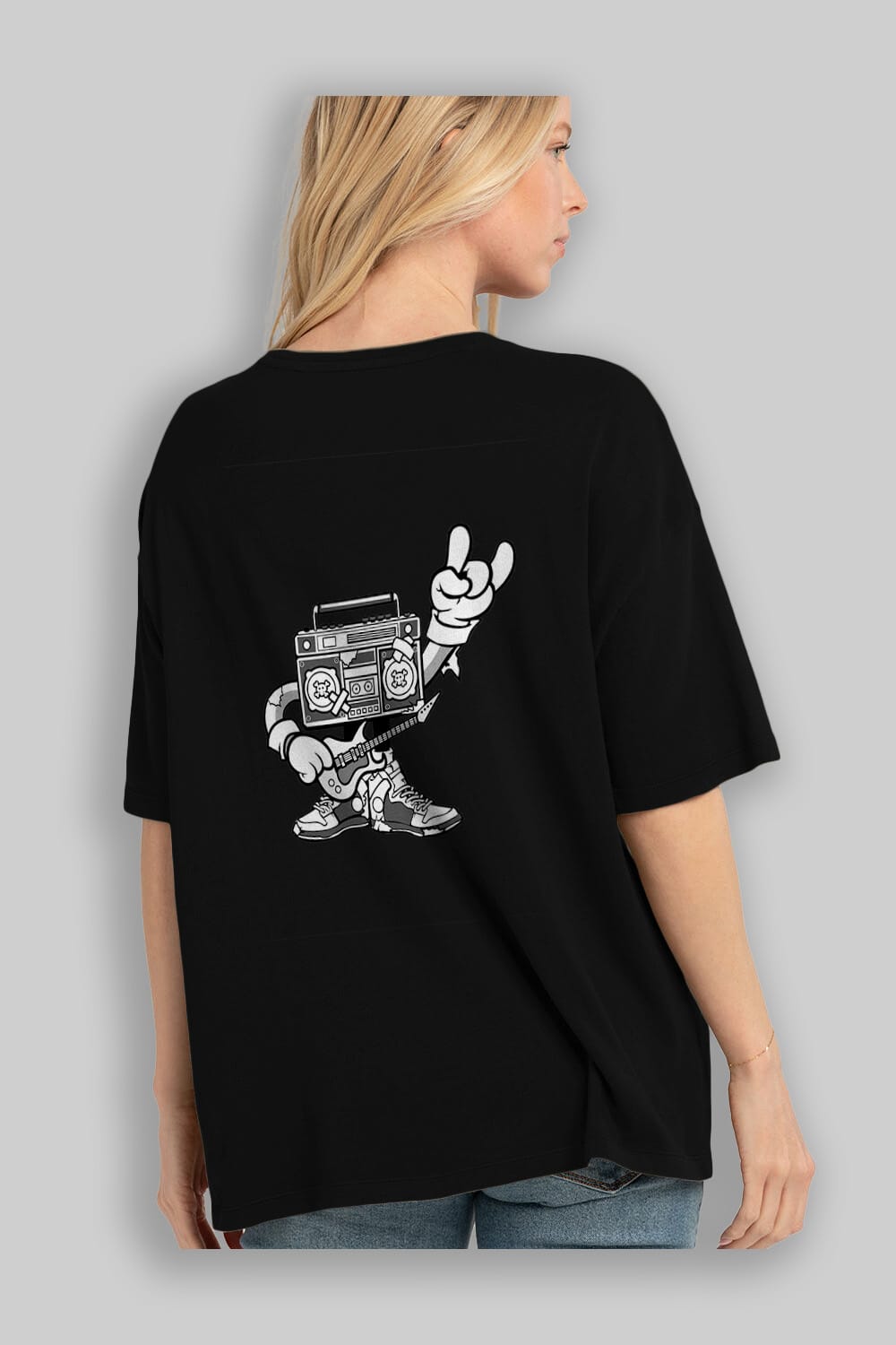 Boombox Rockstar Arka Baskılı Oversize t-shirt Erkek Kadın Unisex %100 Pamuk tişort