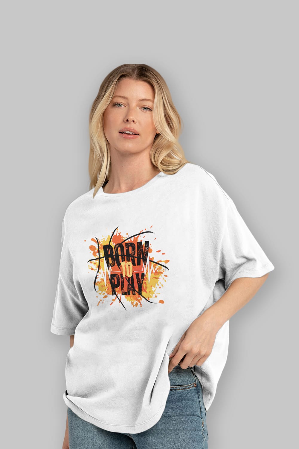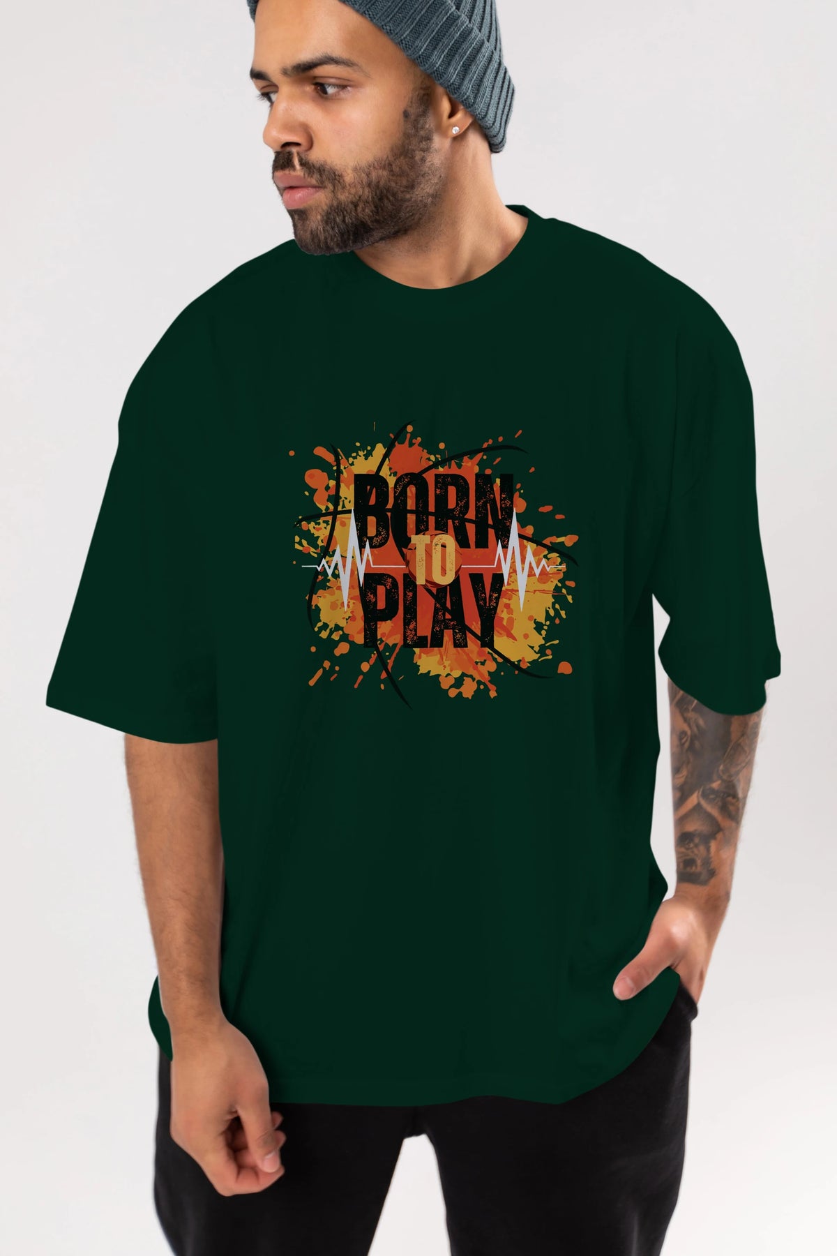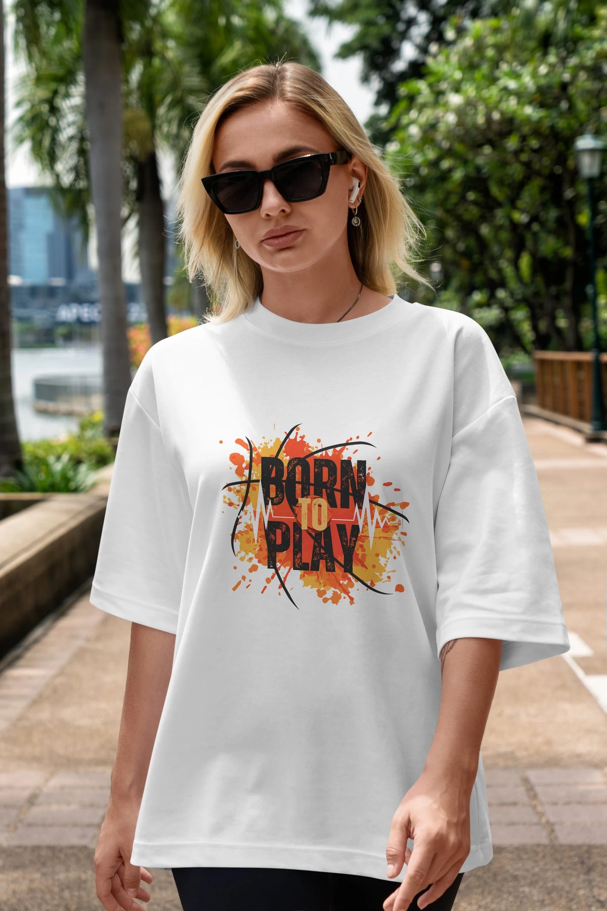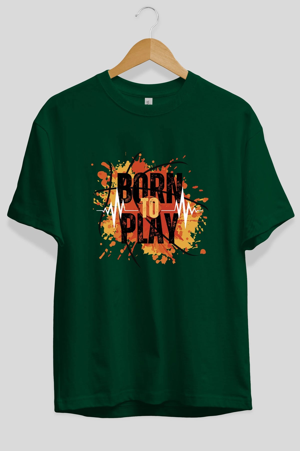 Born to Play Yazılı Ön Baskılı Oversize t-shirt Erkek Kadın Unisex