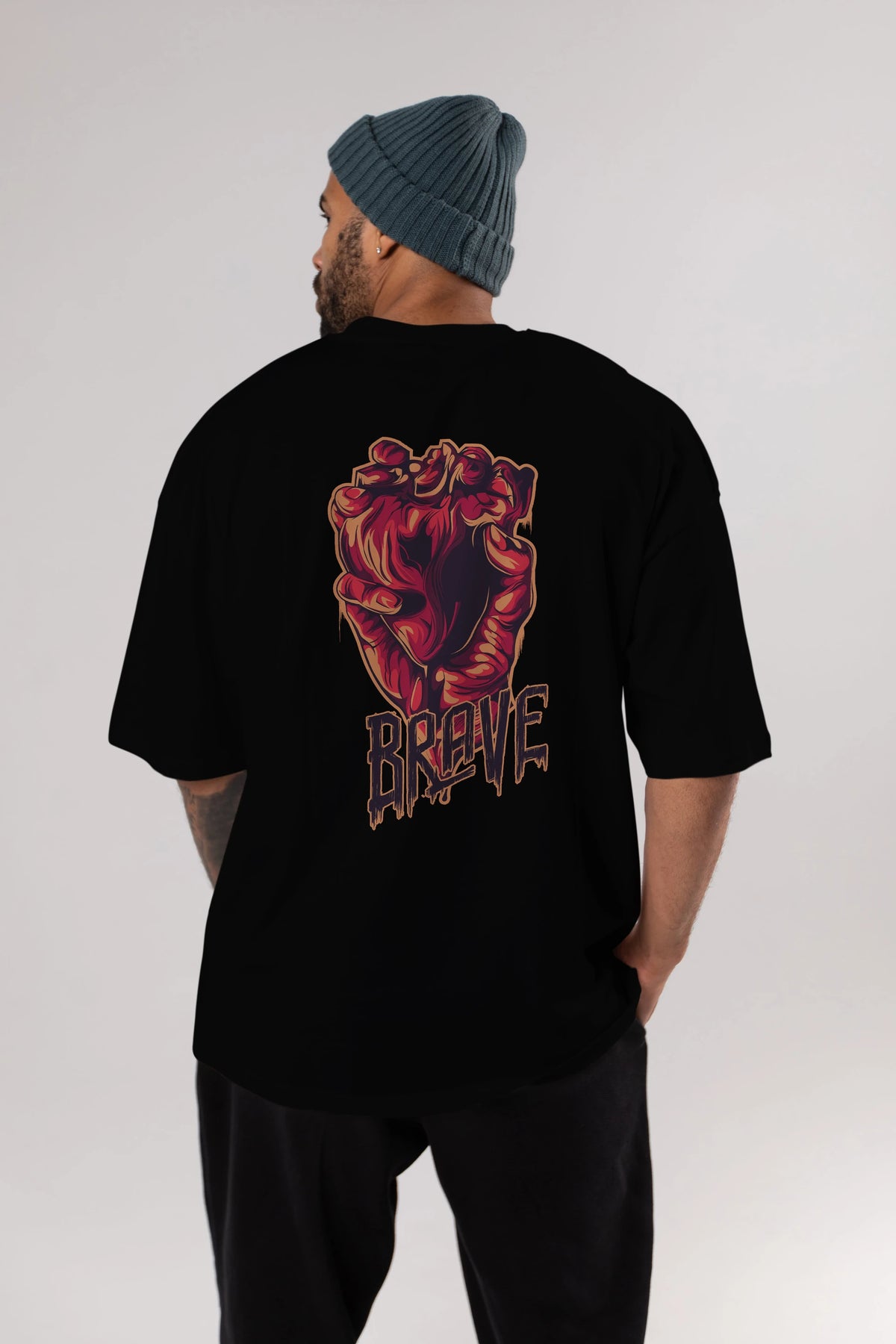 Brave Streetwear Arka Baskılı Oversize t-shirt Erkek Kadın Unisex