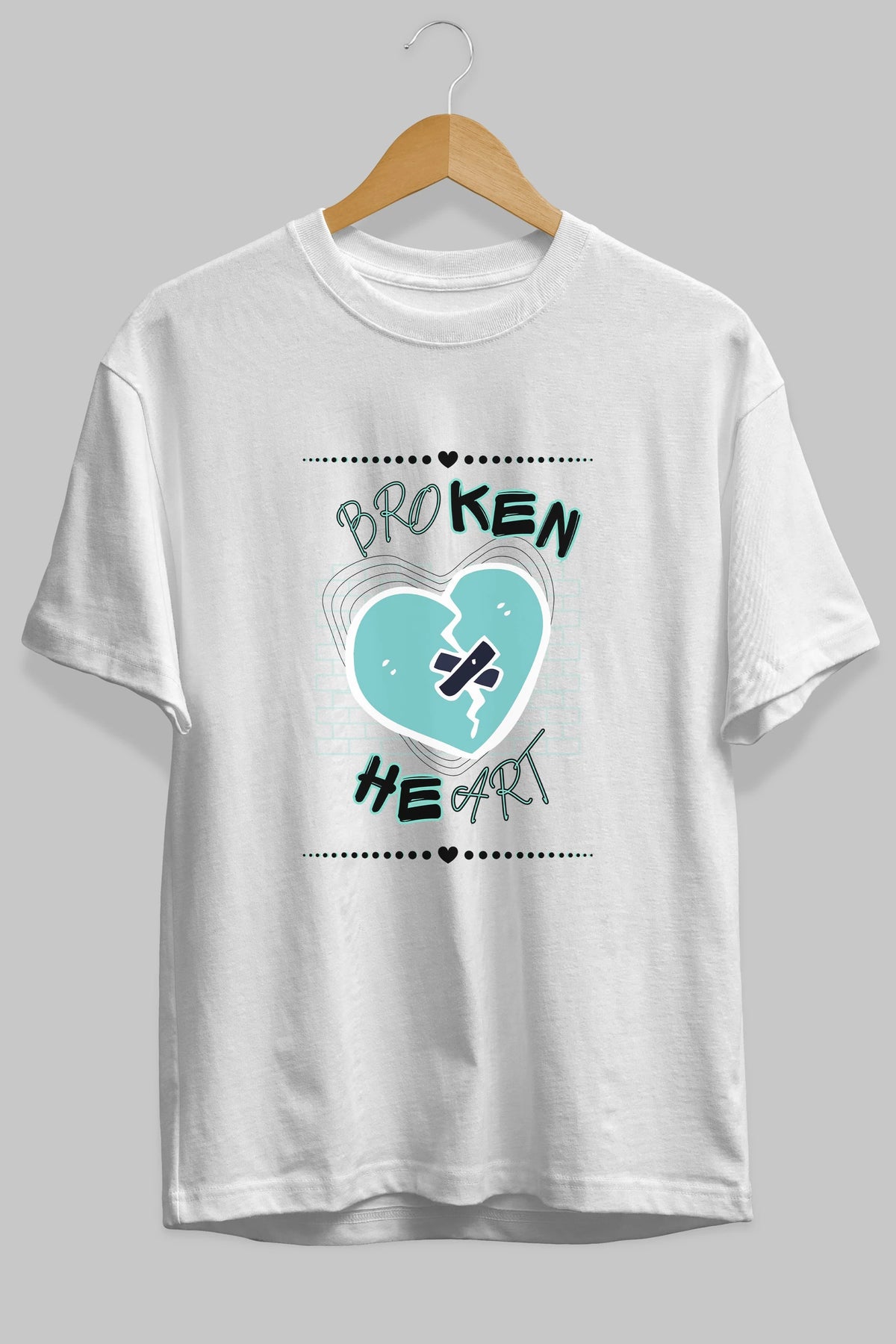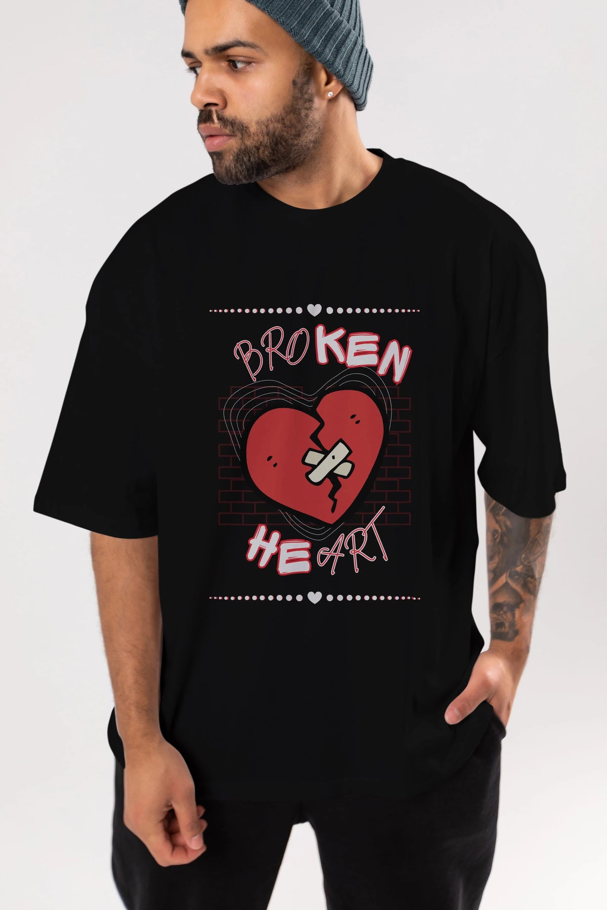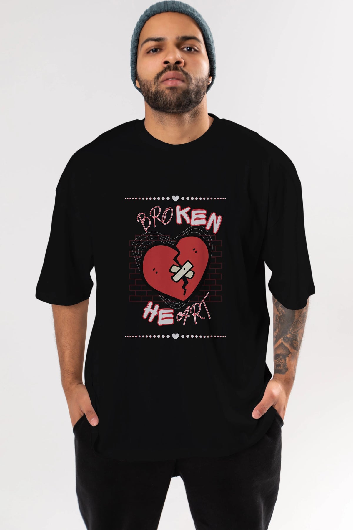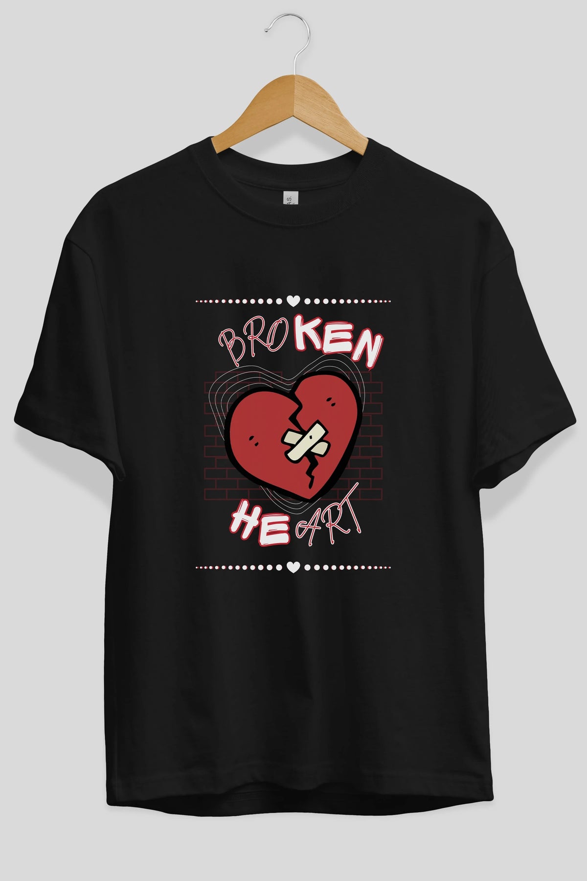 Broken Heart Yazılı Ön Baskılı Oversize t-shirt Erkek Kadın Unisex