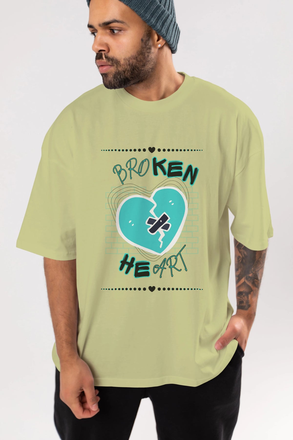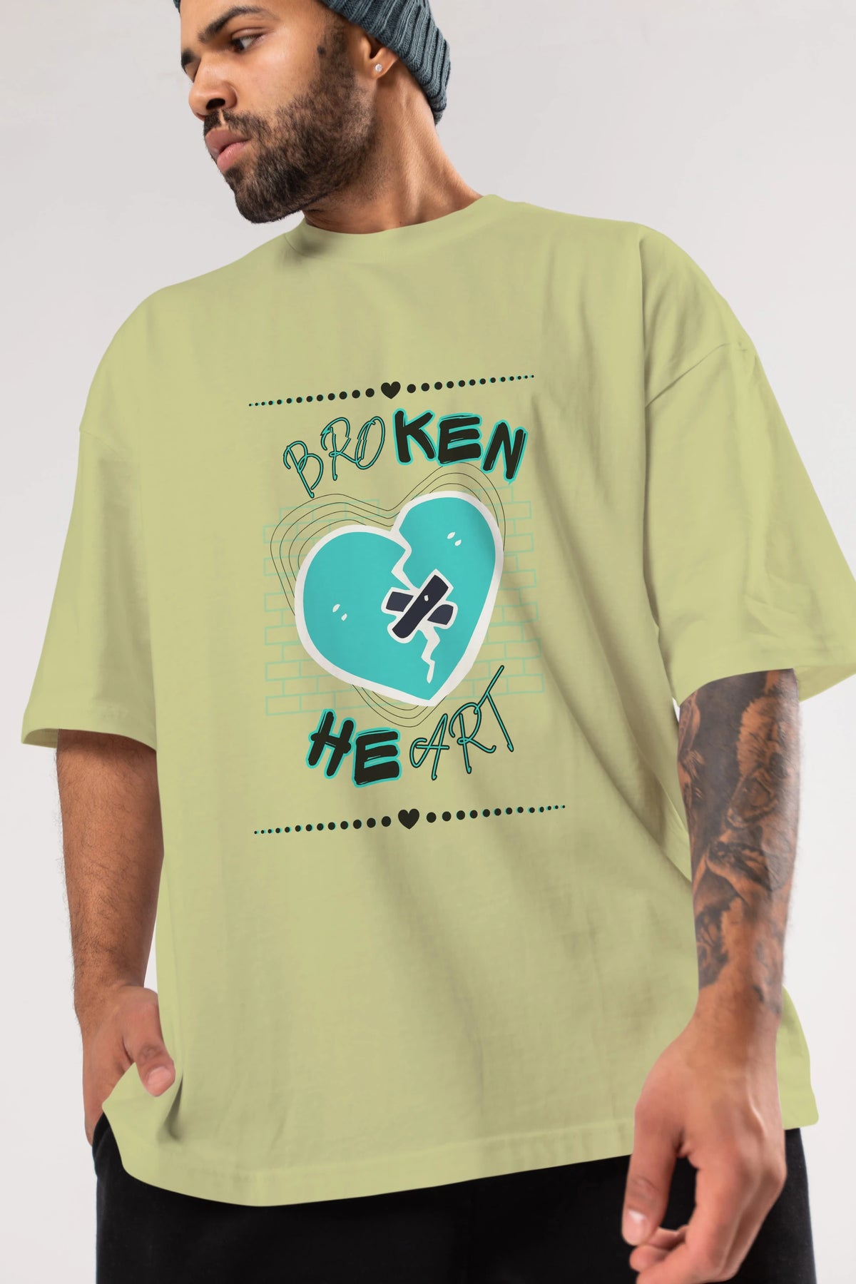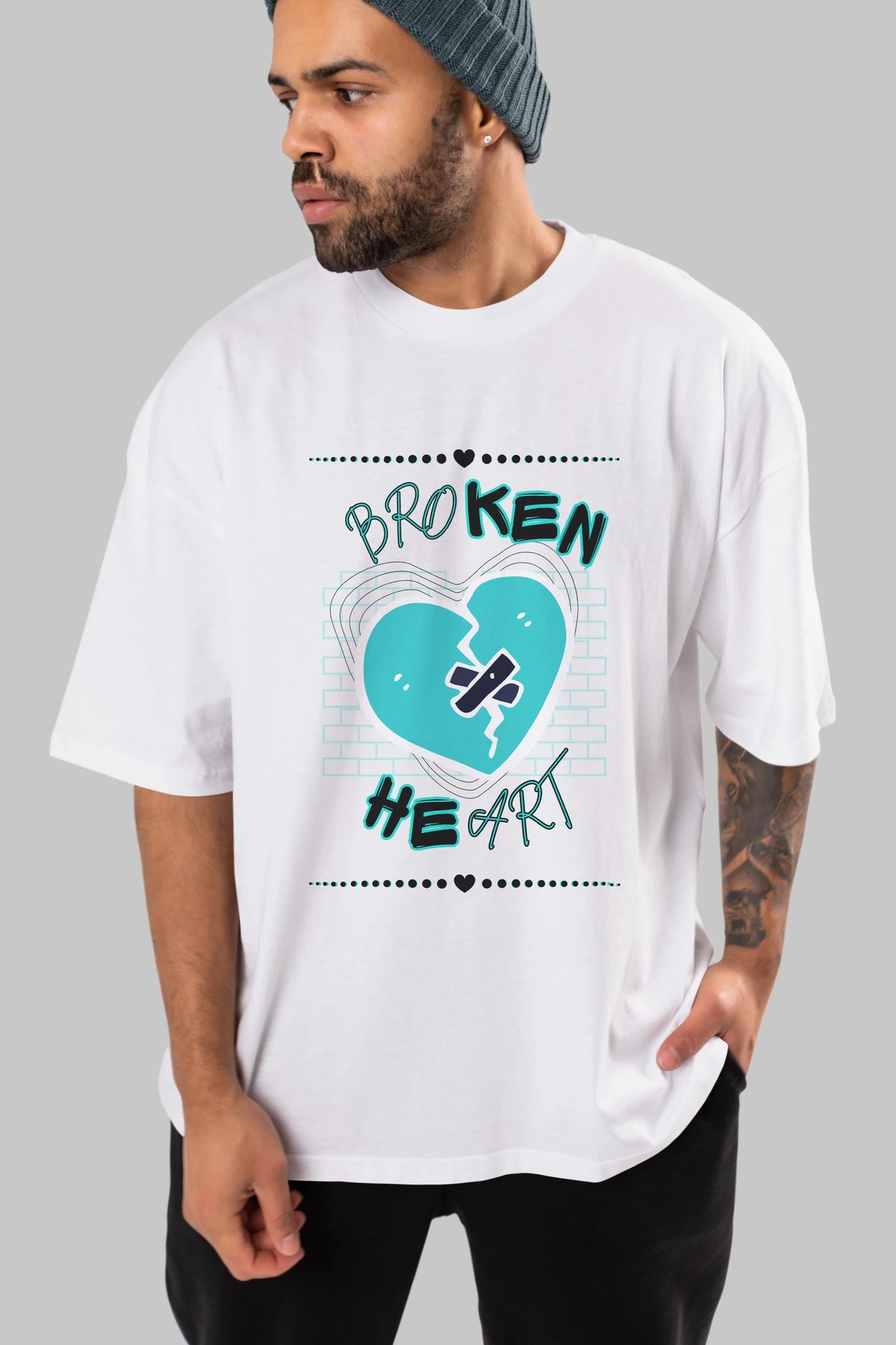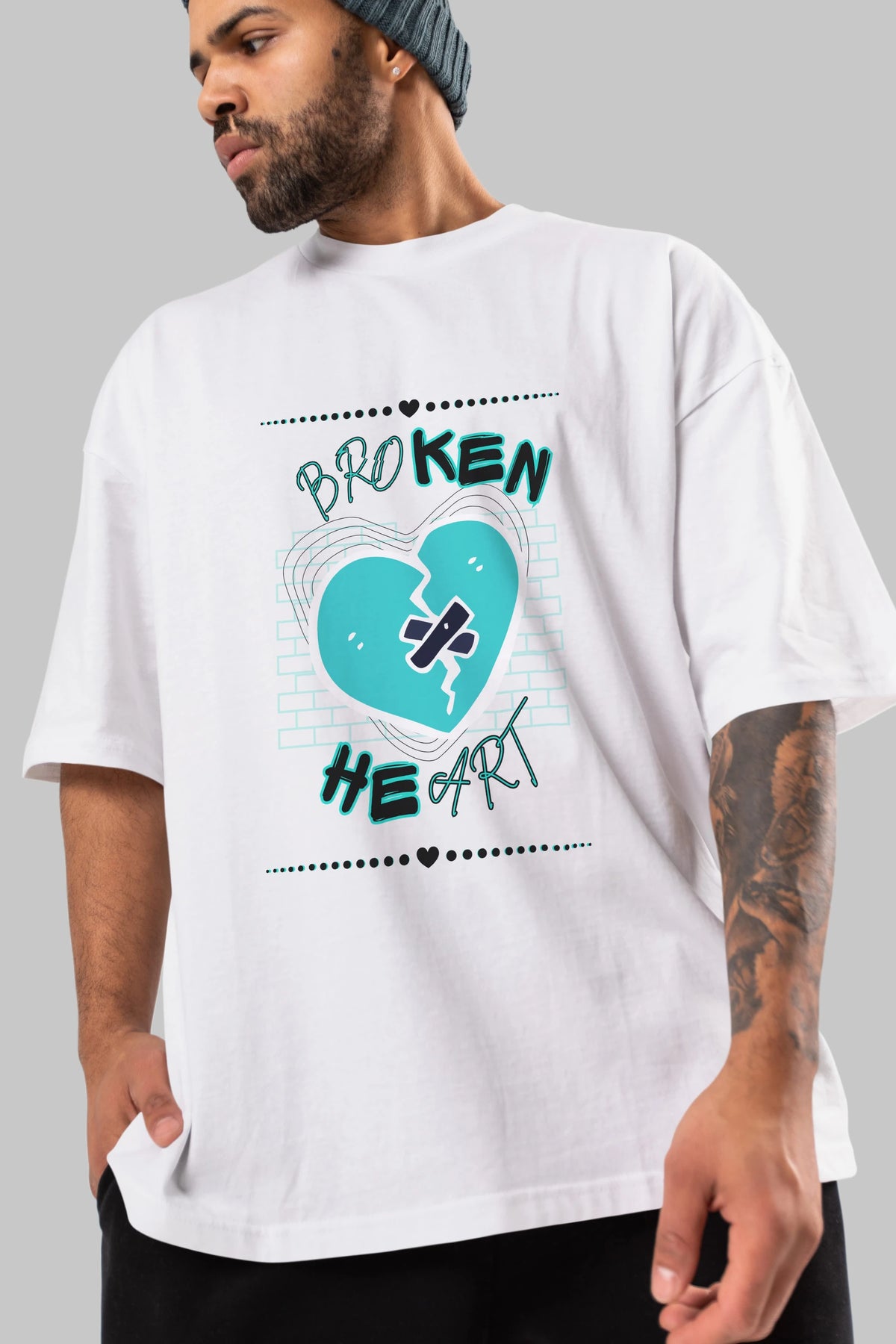 Broken Heart Yazılı Ön Baskılı Oversize t-shirt Erkek Kadın Unisex