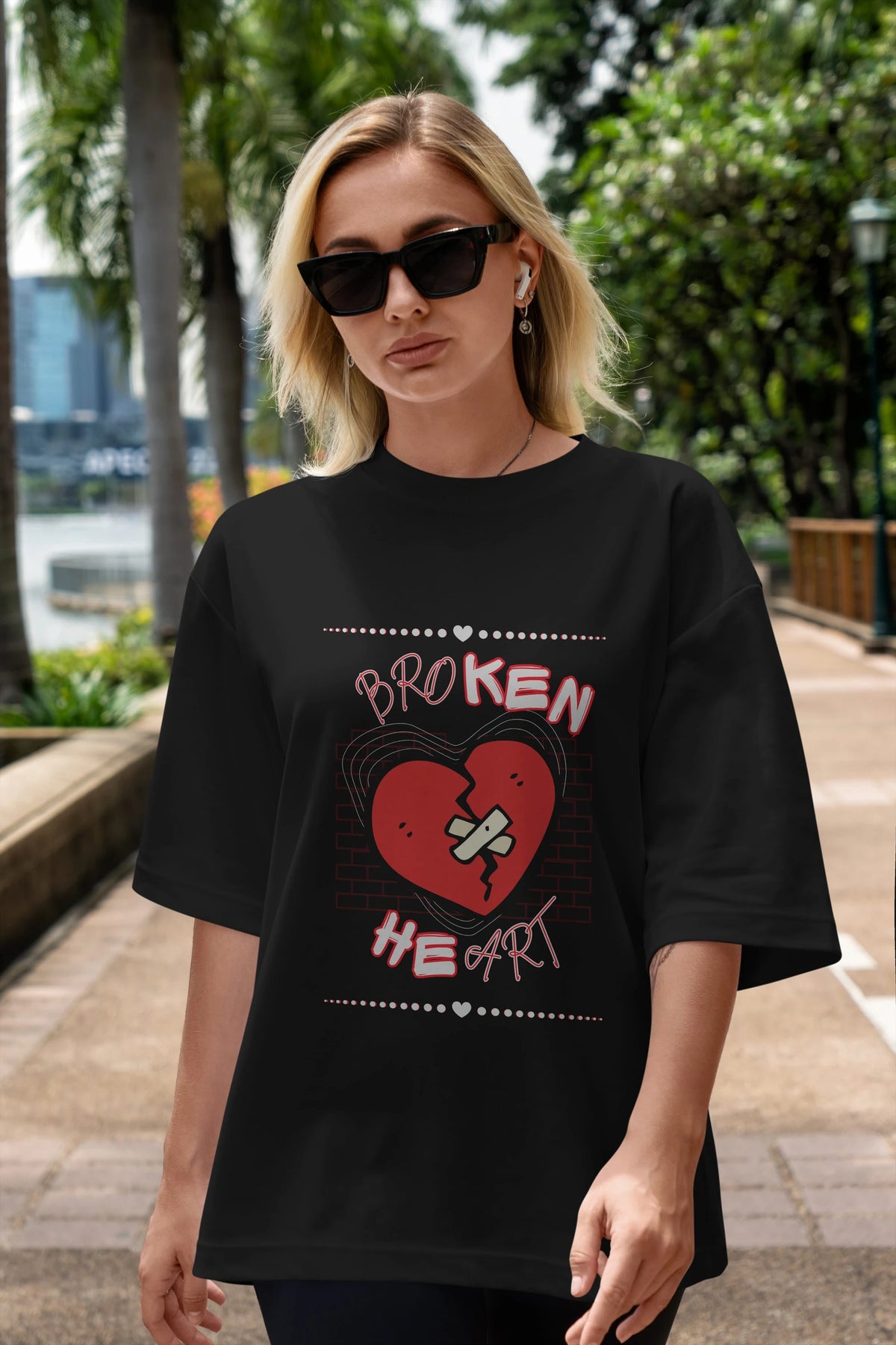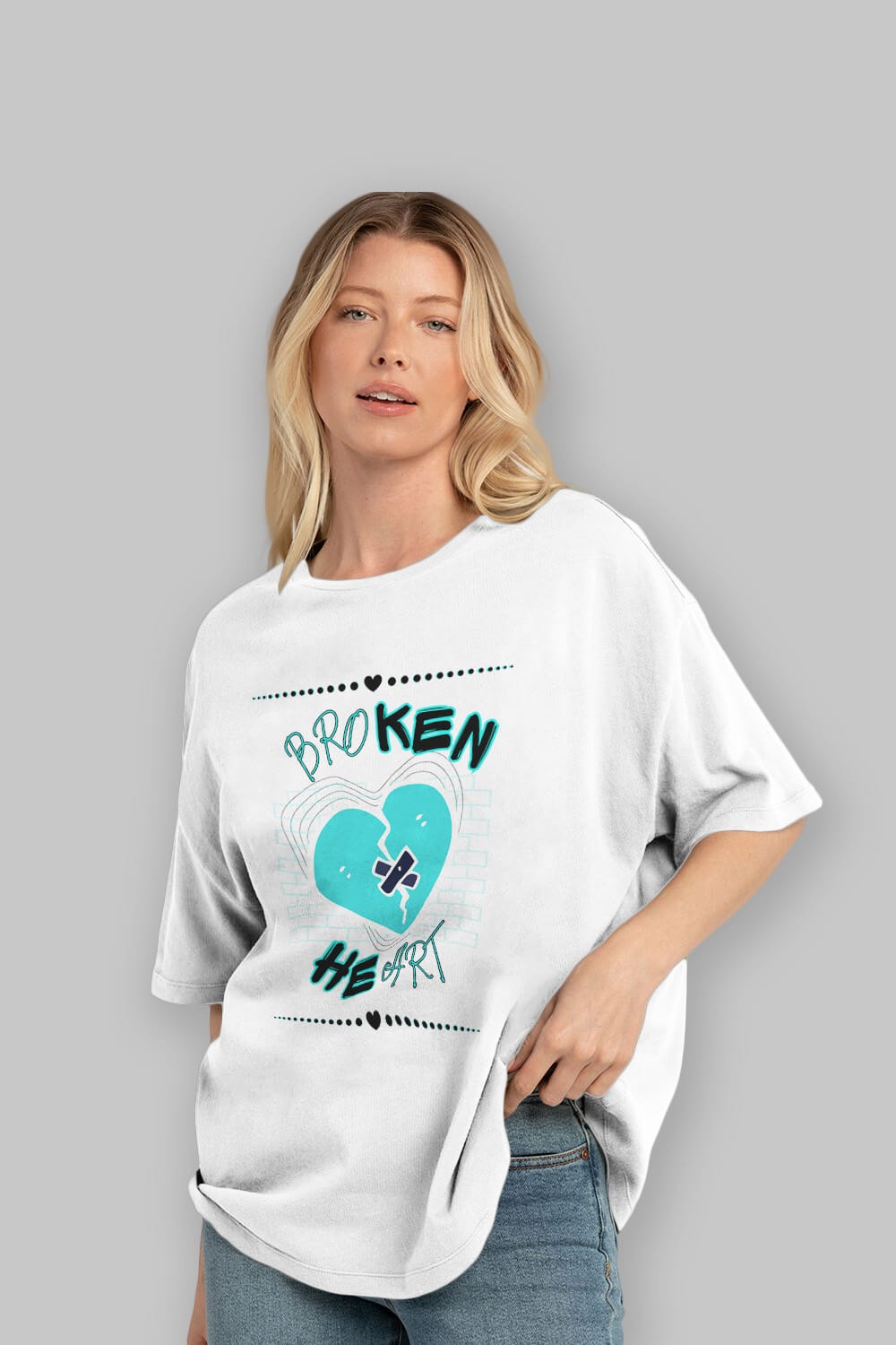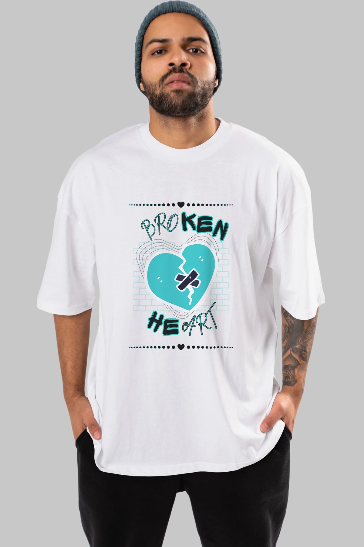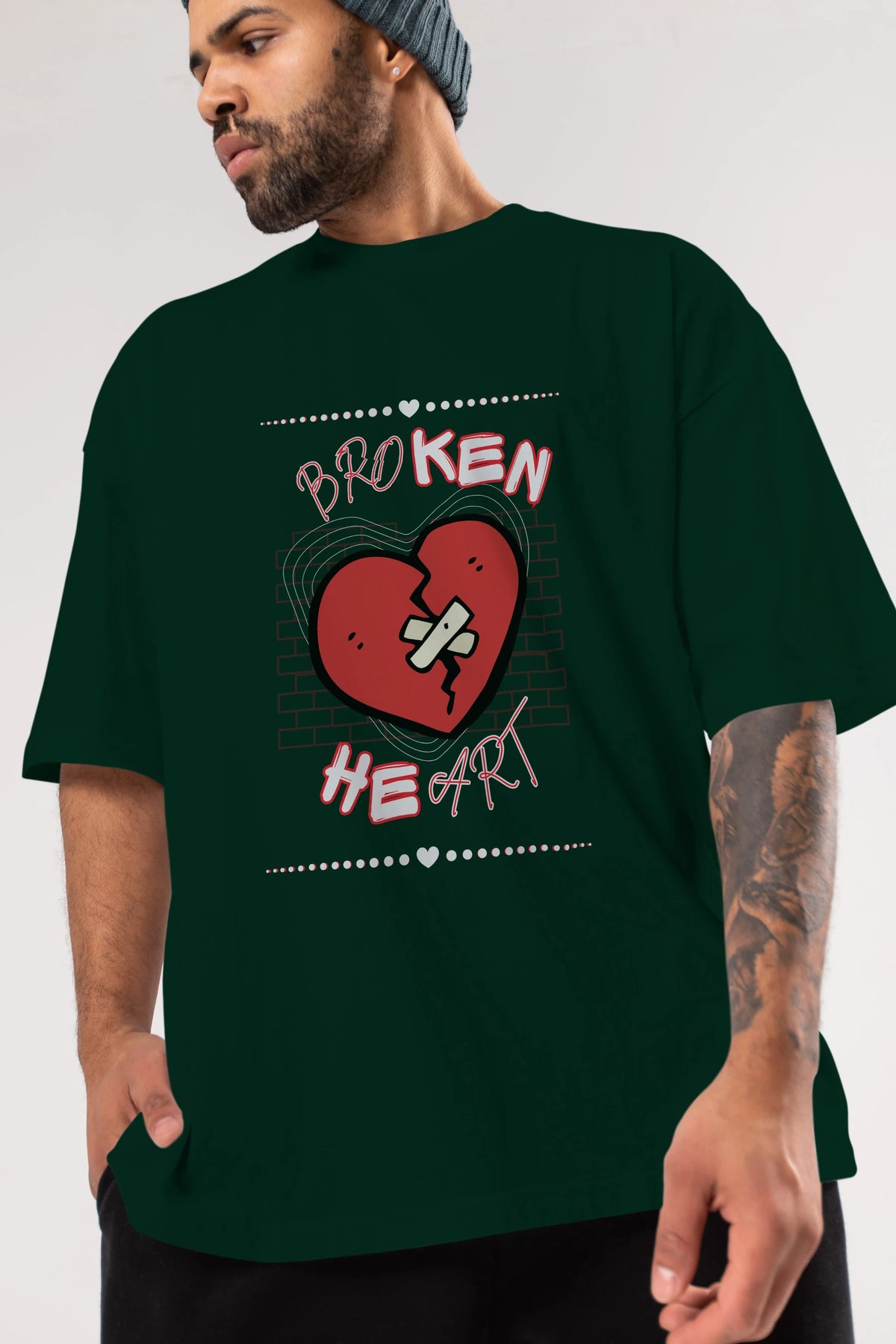 Broken Heart Yazılı Ön Baskılı Oversize t-shirt Erkek Kadın Unisex