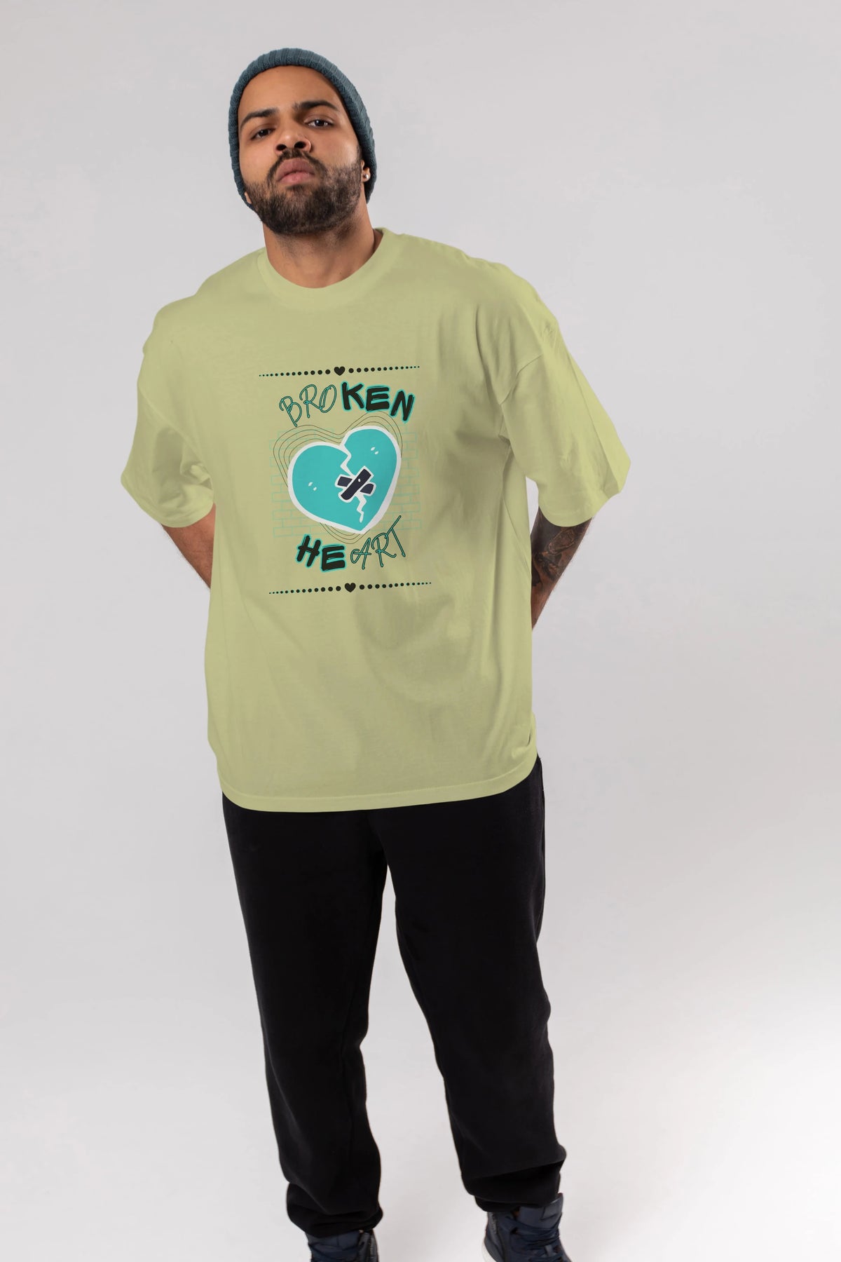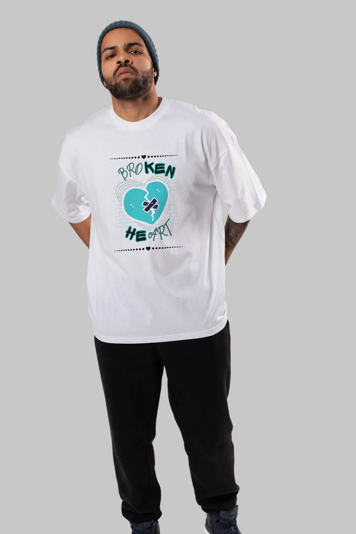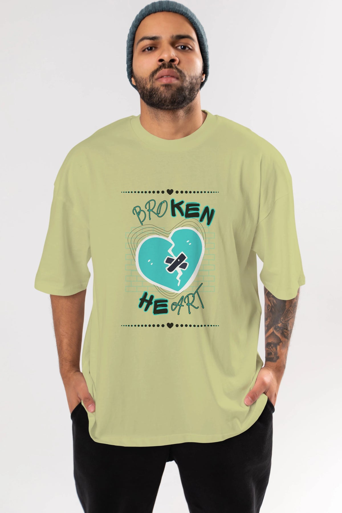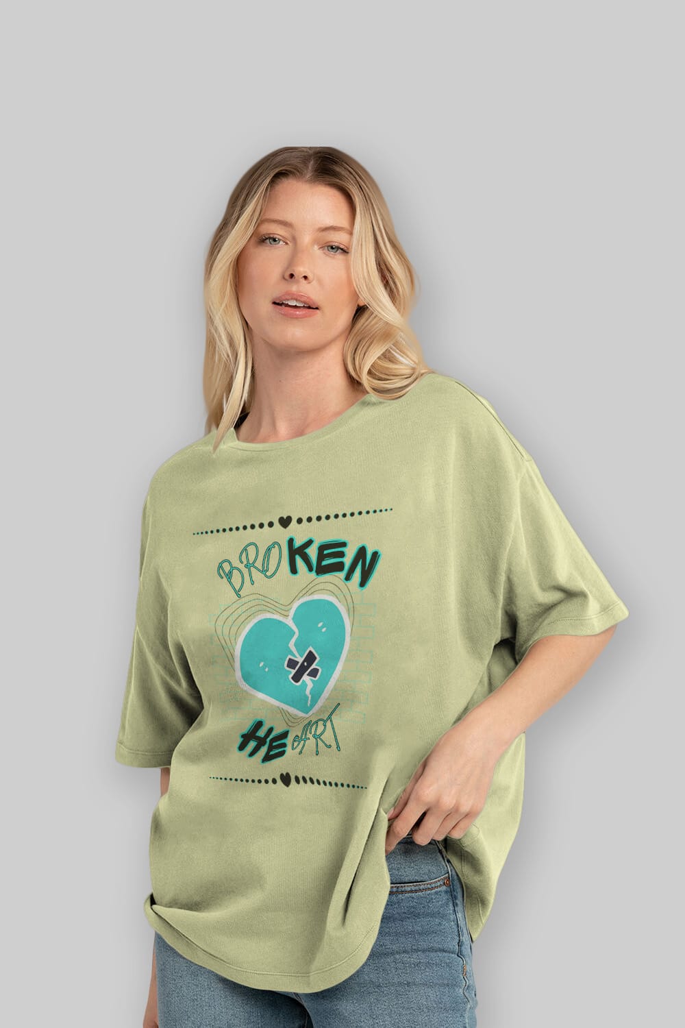 Broken Heart Yazılı Ön Baskılı Oversize t-shirt Erkek Kadın Unisex