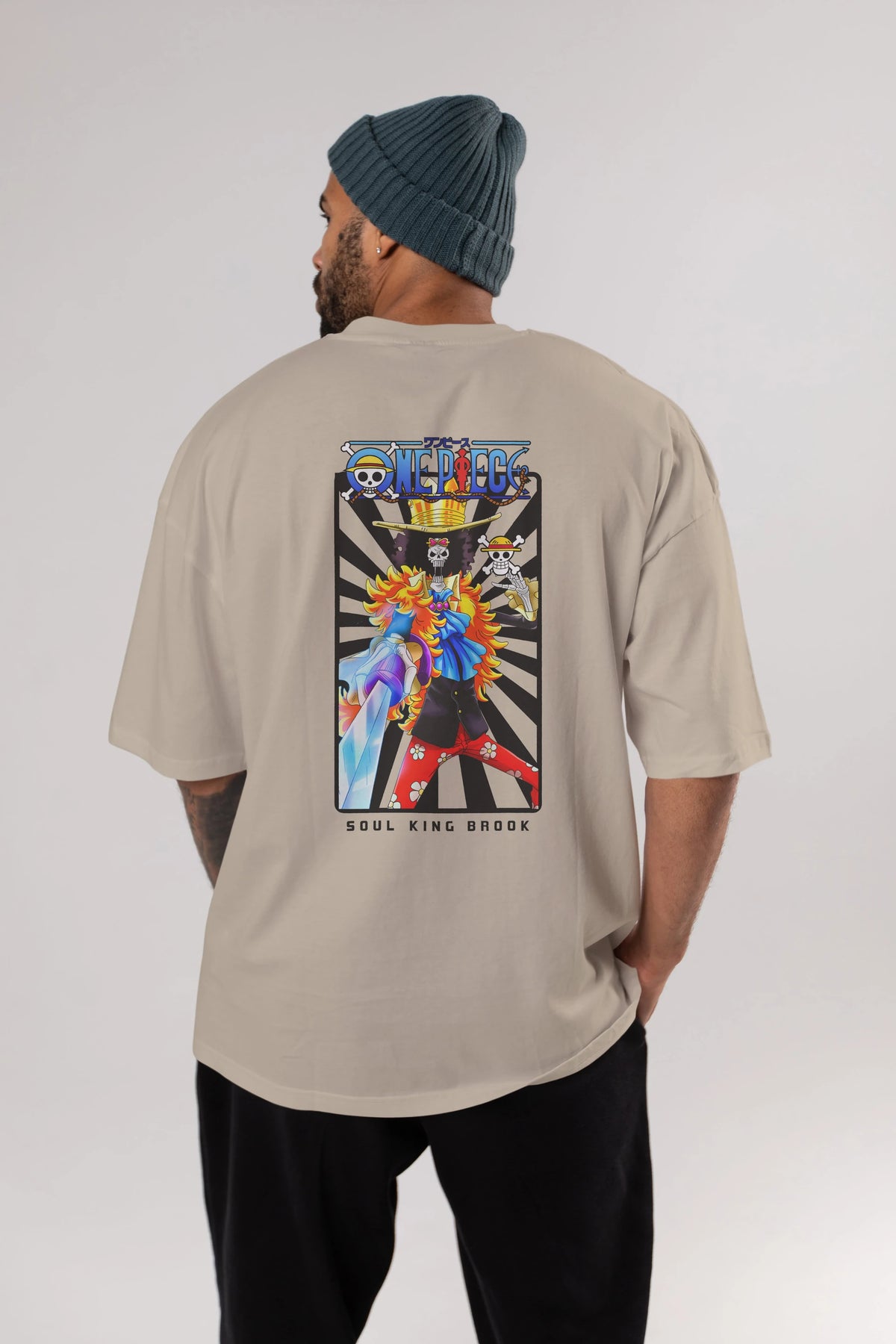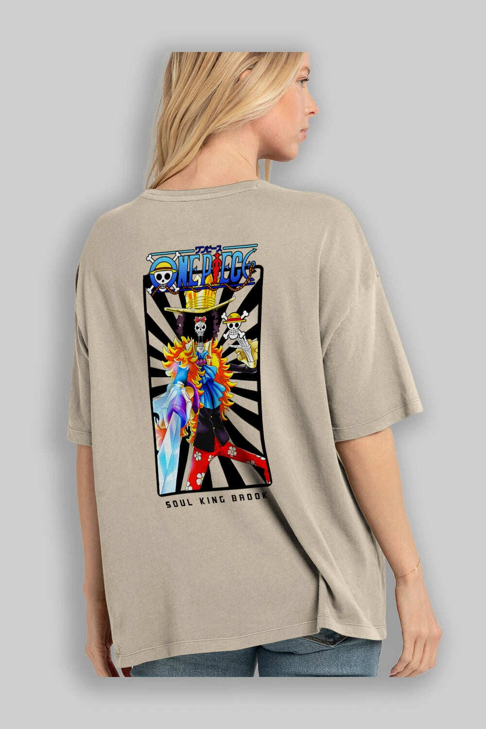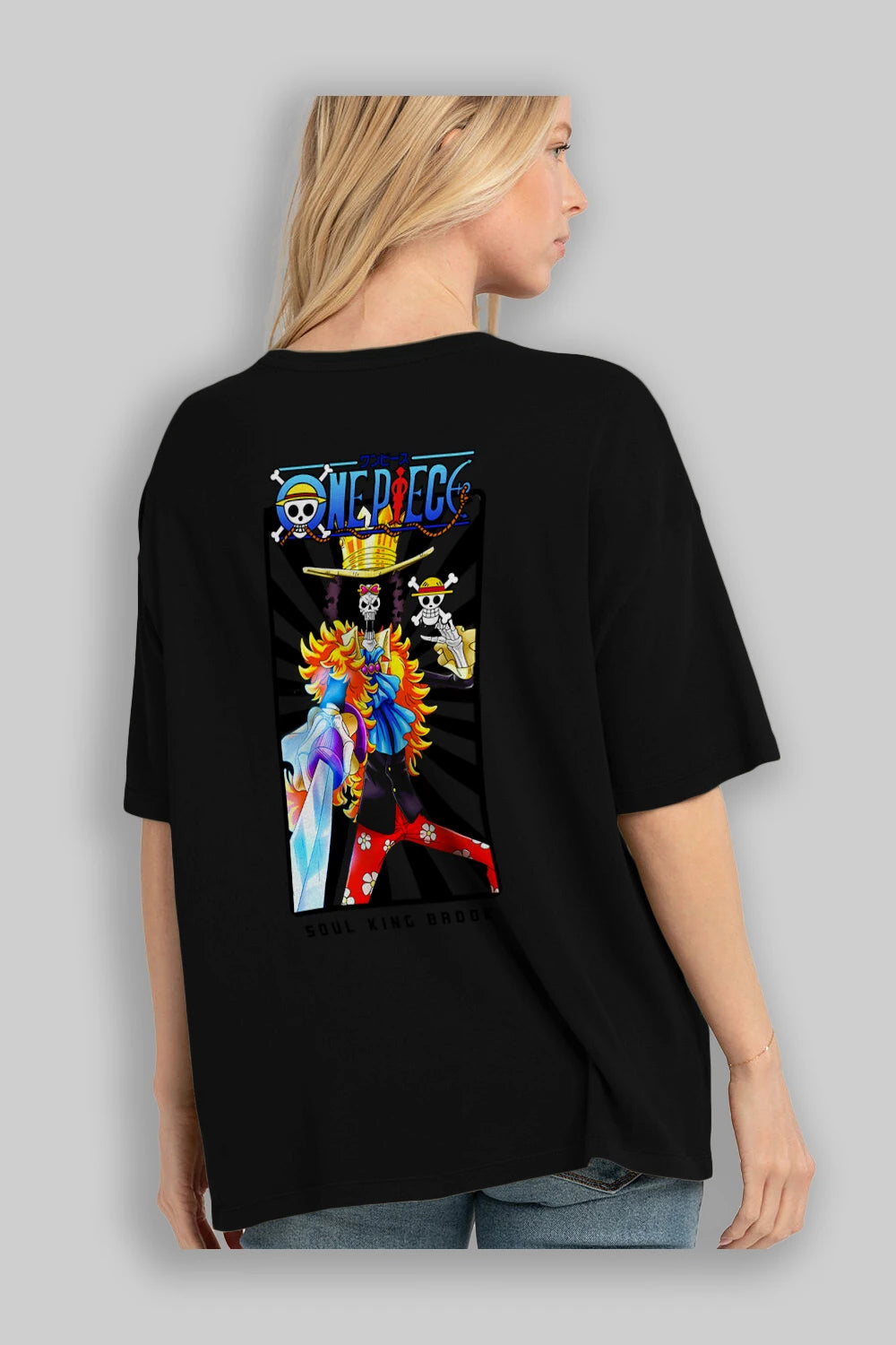 Brook Anime Arka Baskılı Oversize t-shirt Erkek Kadın Unisex %100 pamuk tişort