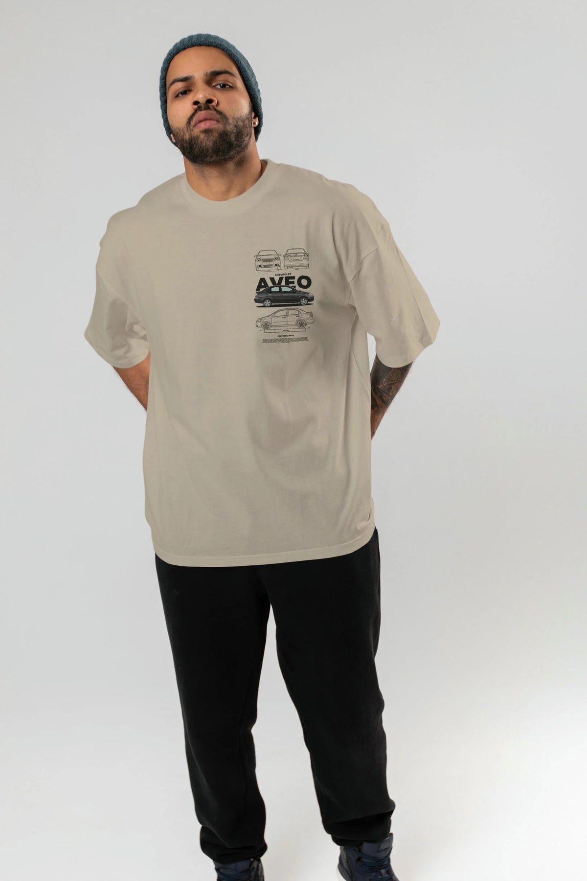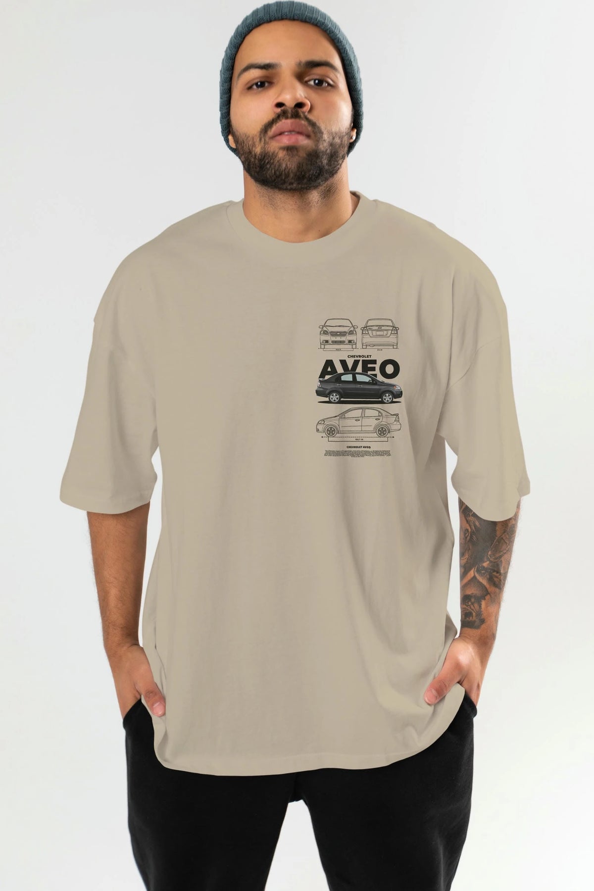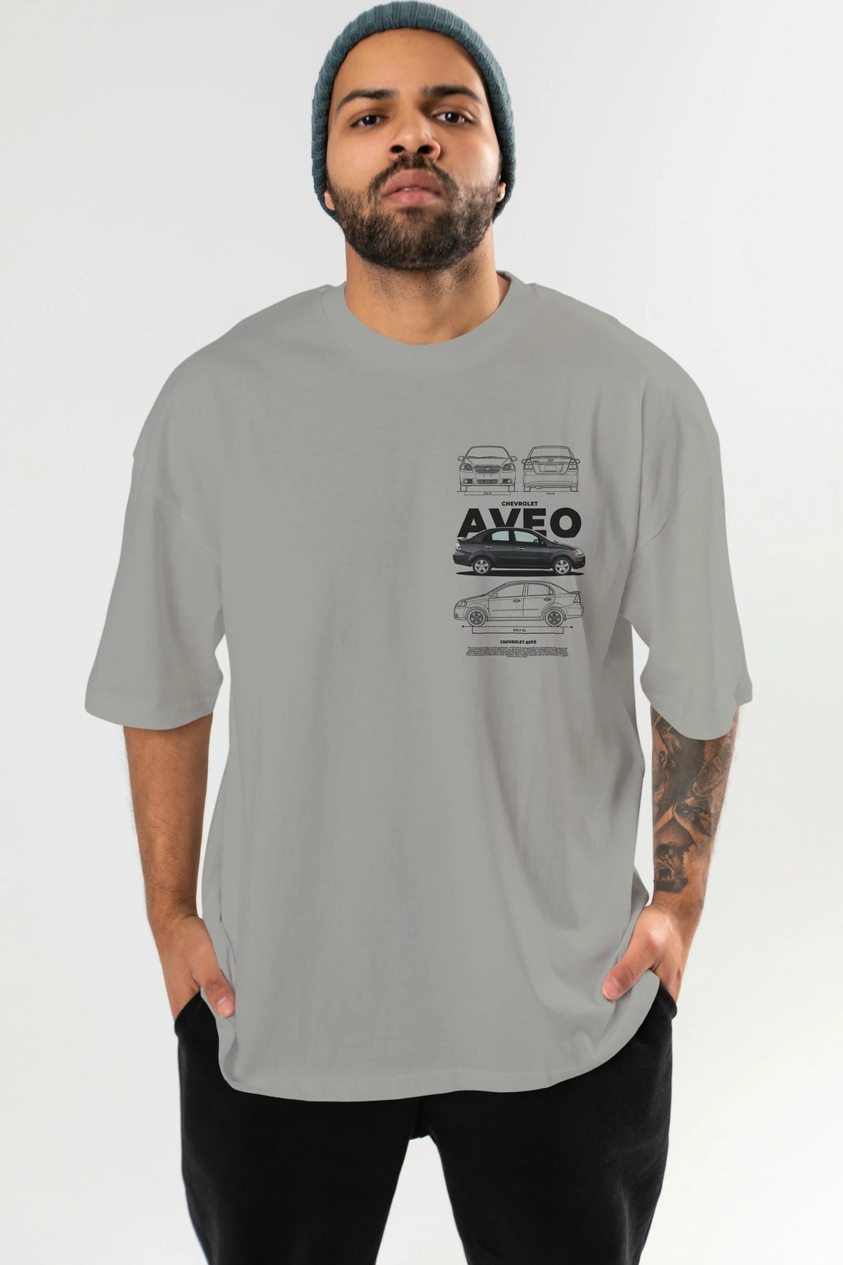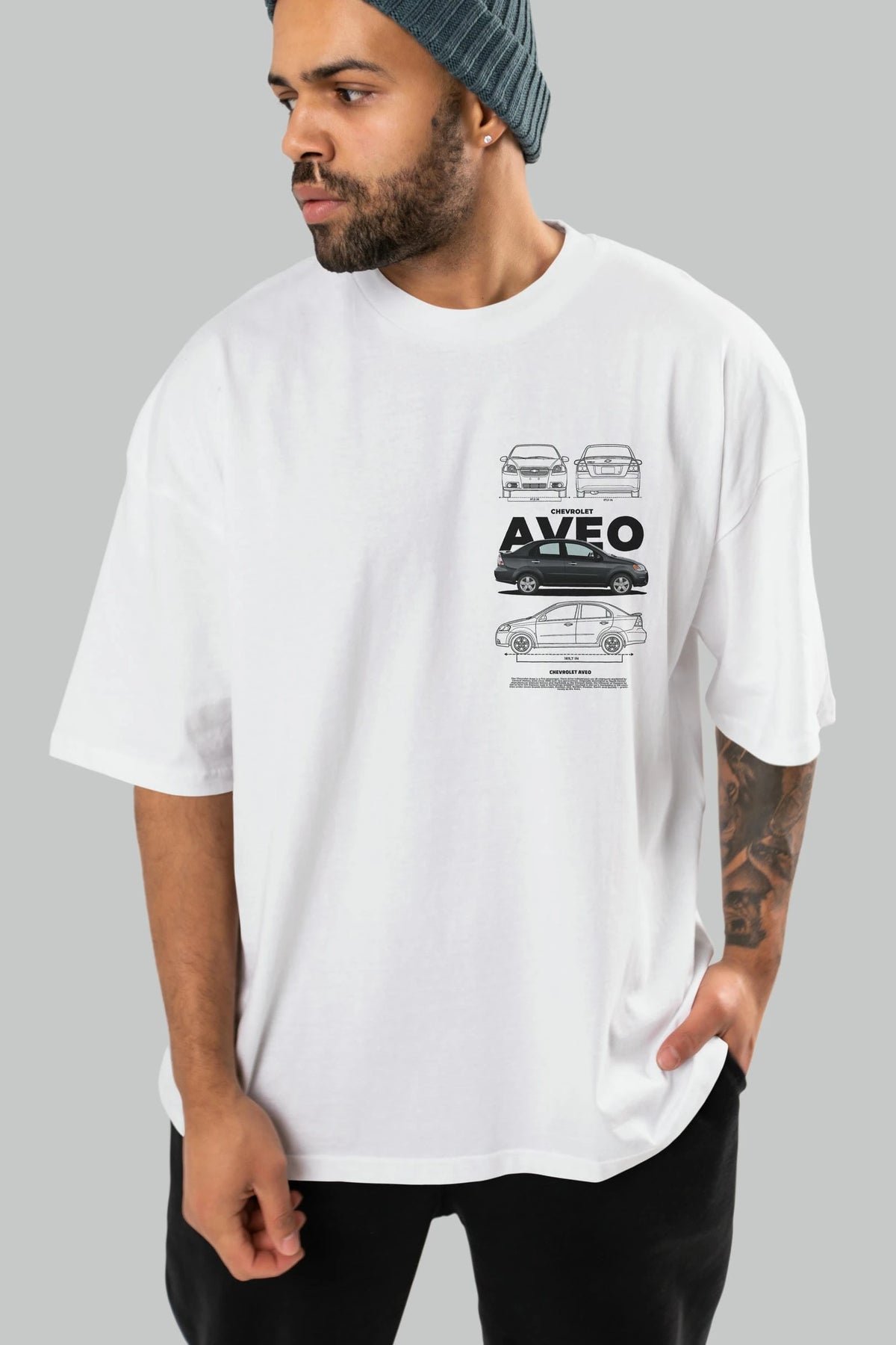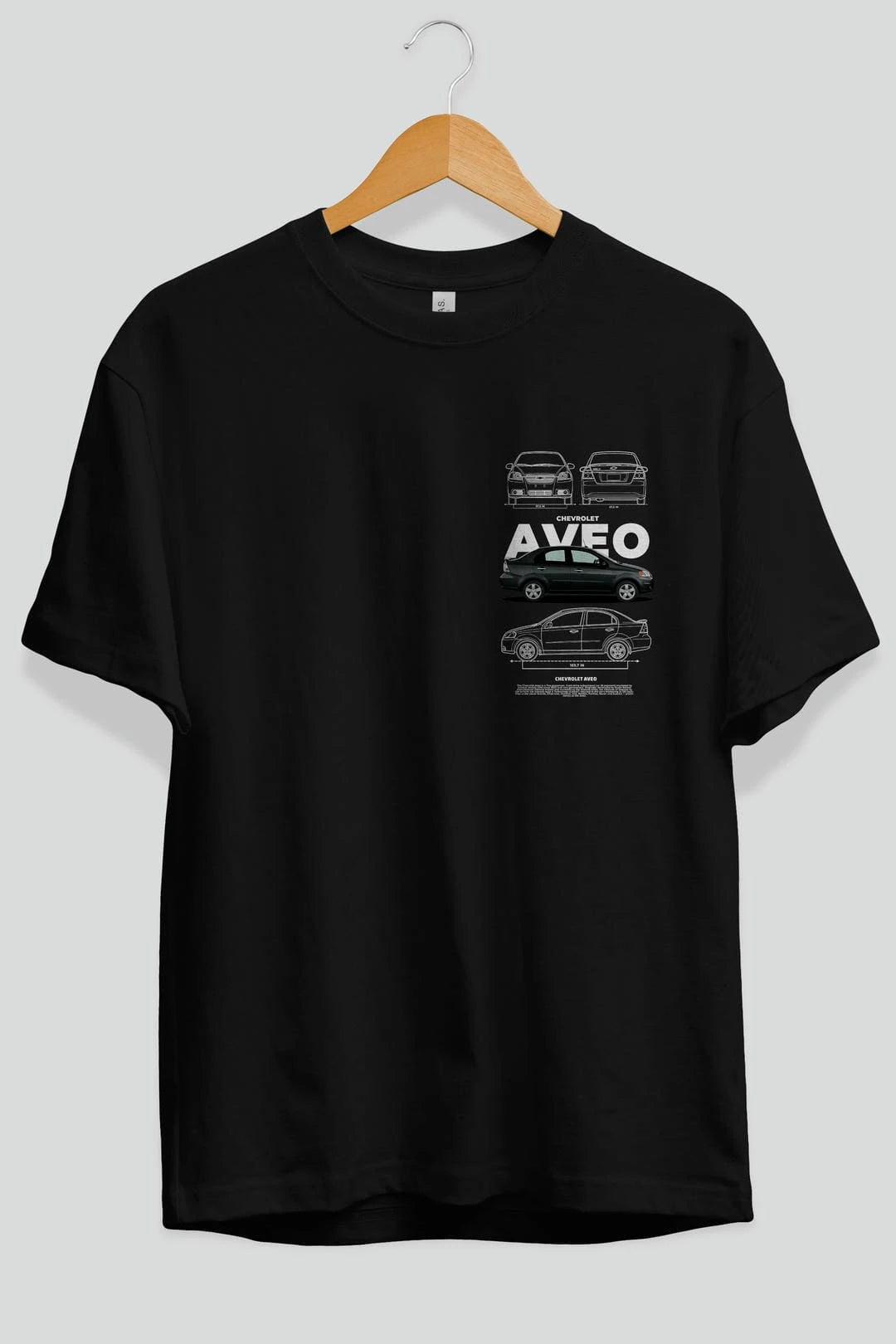 Chevrolet Aveo Ön Sol Baskılı Oversize t-shirt Erkek Kadın Unisex %100 Pamuk Bisiklet Yaka tişort