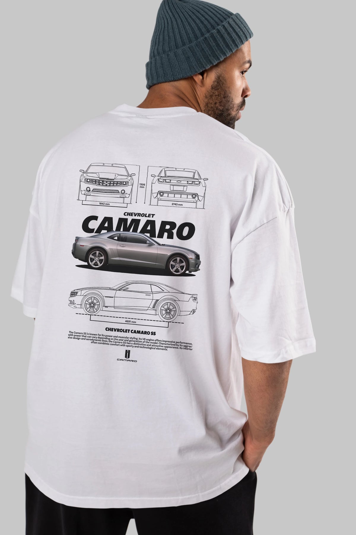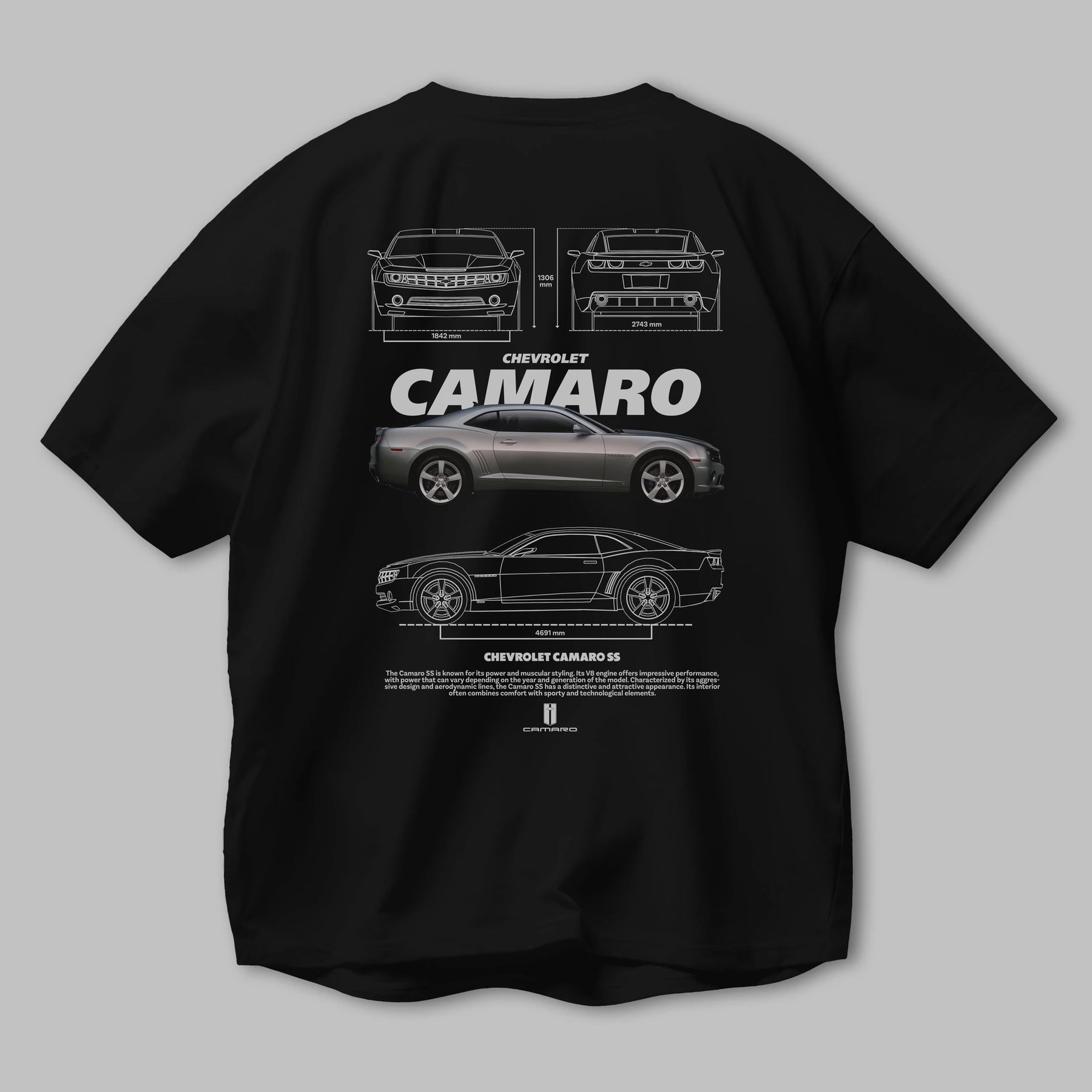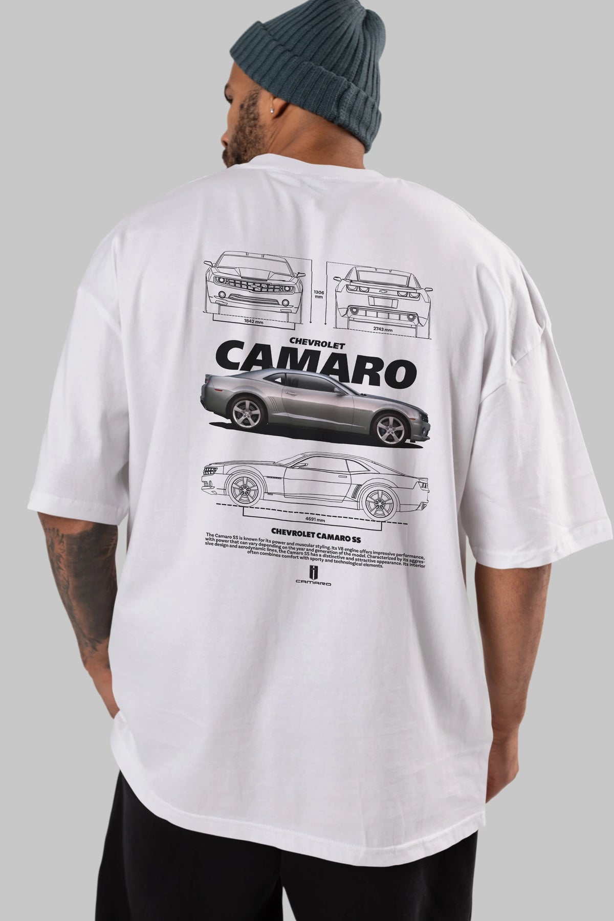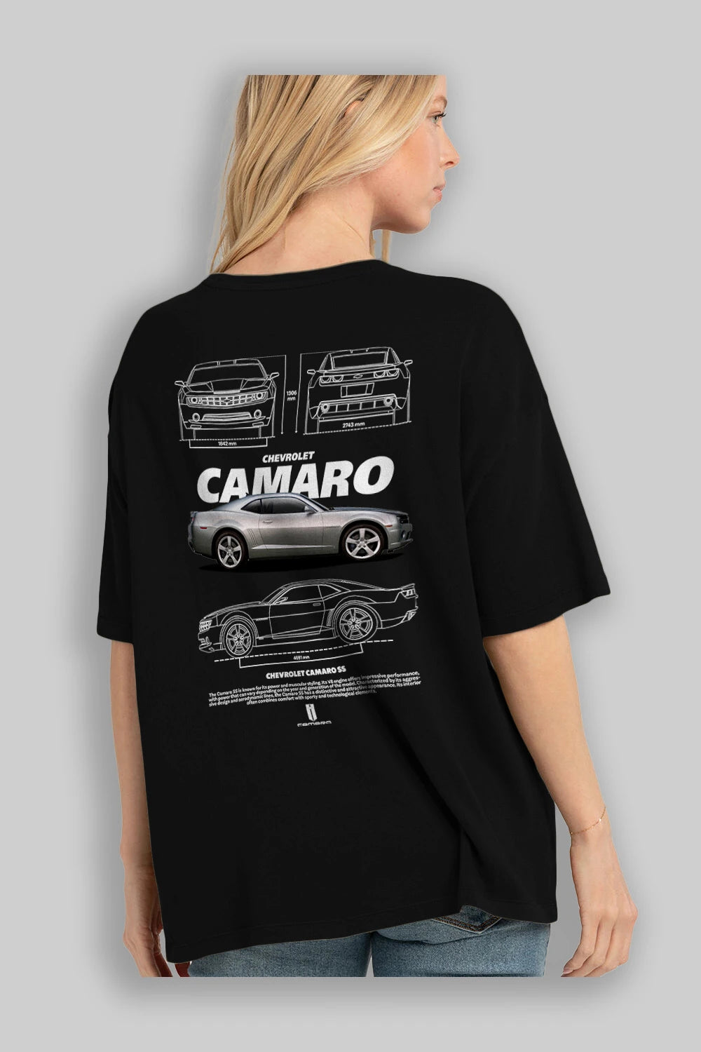 Chevrolet CAMARO SS Arka Baskılı Oversize t-shirt Erkek Kadın Unisex %100 Pamuk Bisiklet Yaka tişort