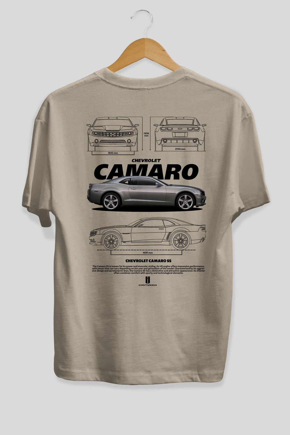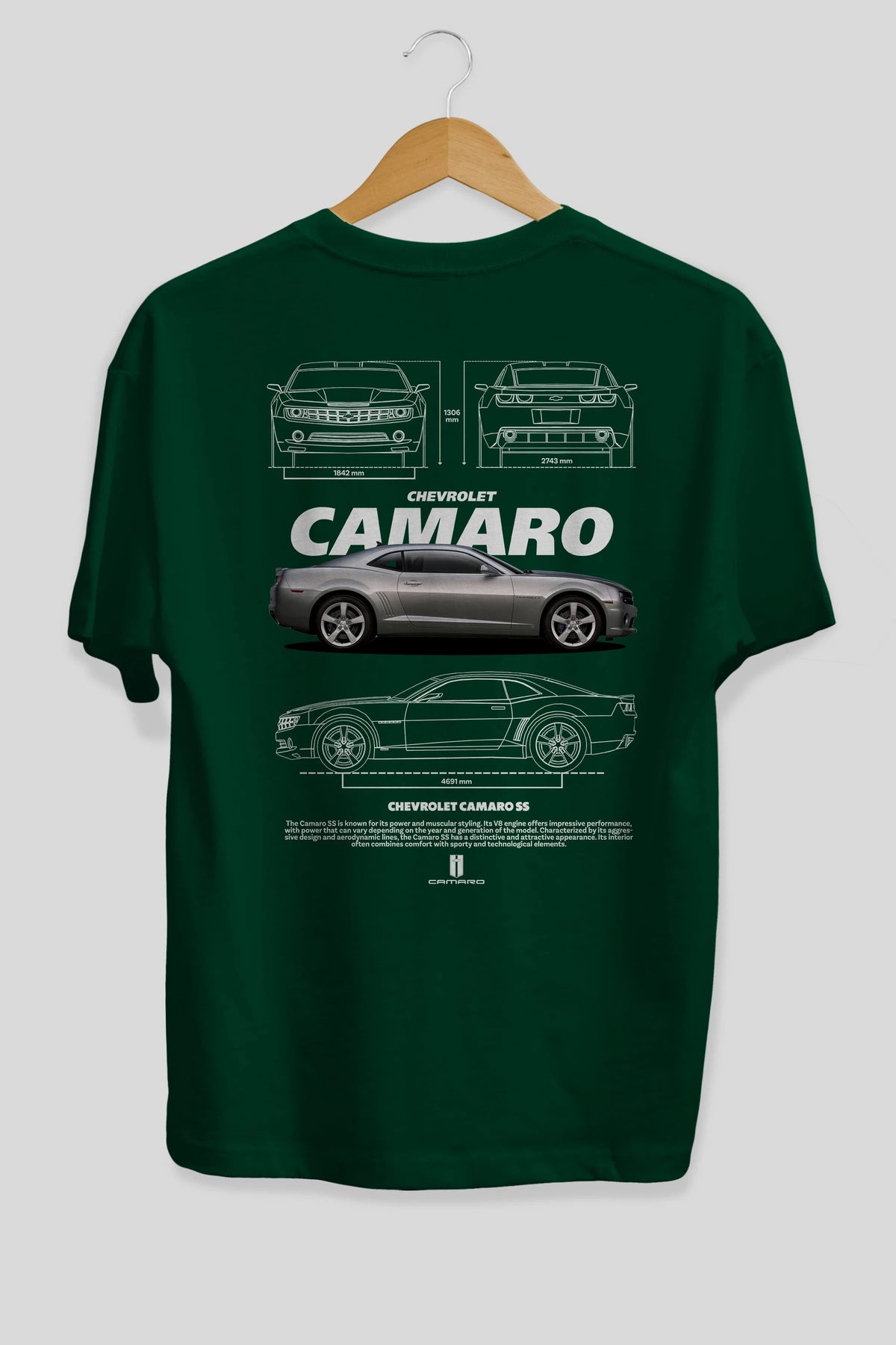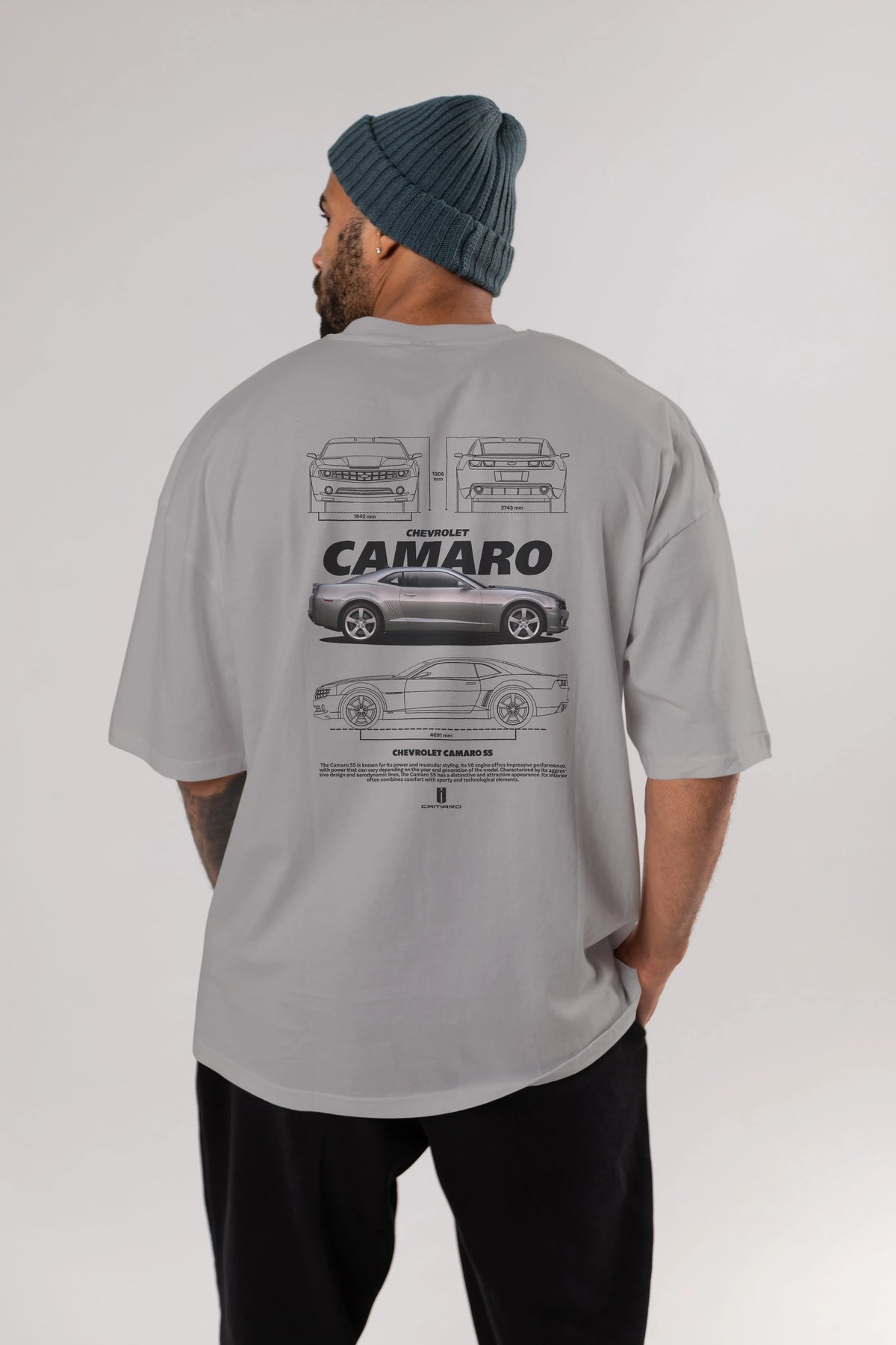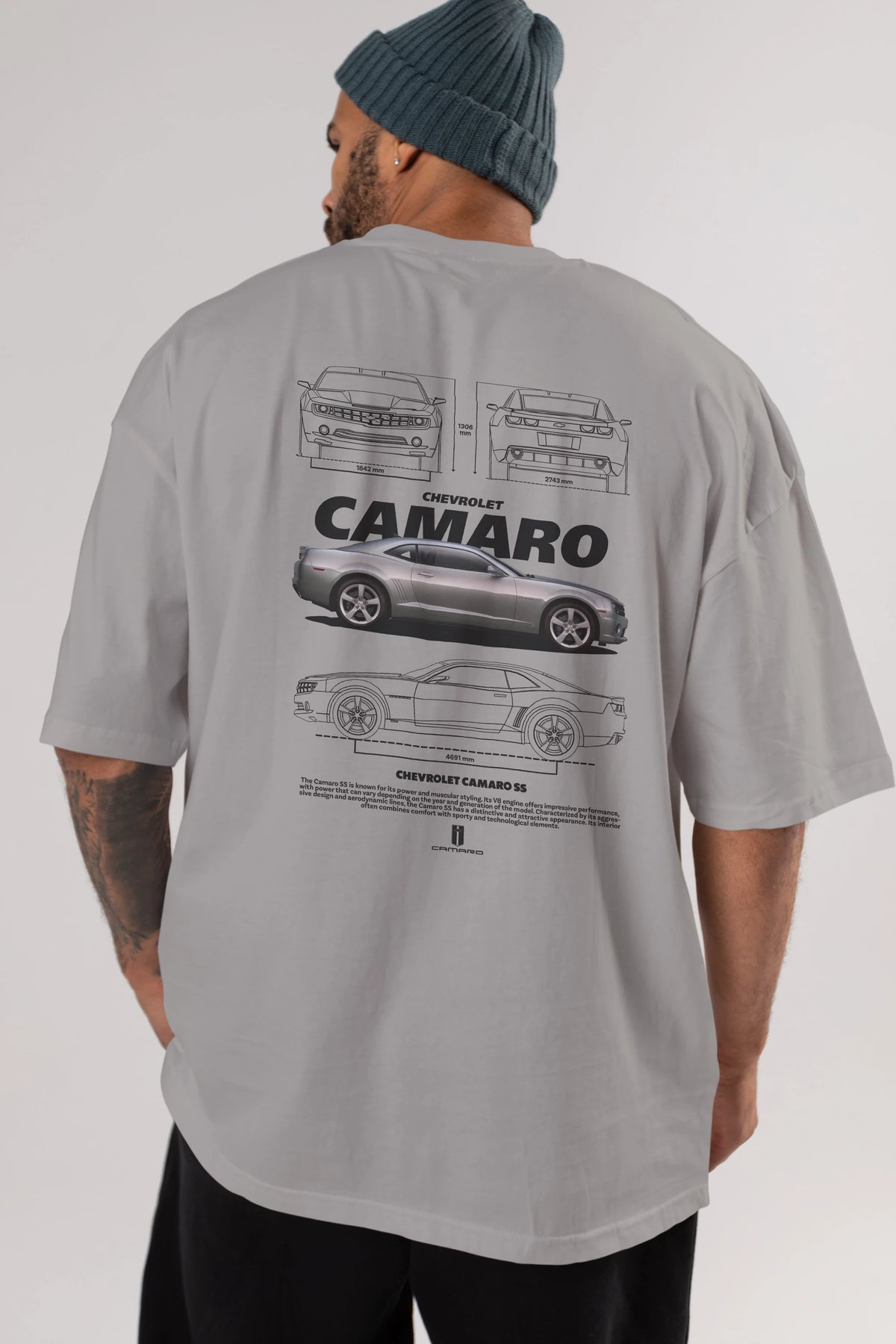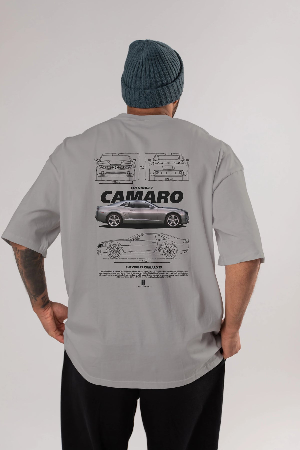 Chevrolet CAMARO SS Arka Baskılı Oversize t-shirt Erkek Kadın Unisex %100 Pamuk Bisiklet Yaka tişort
