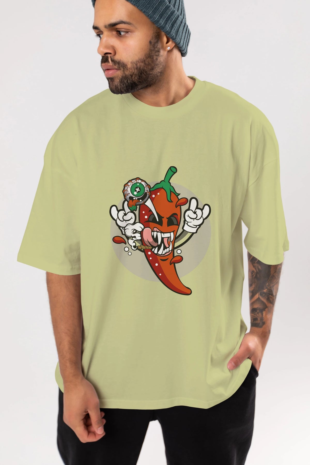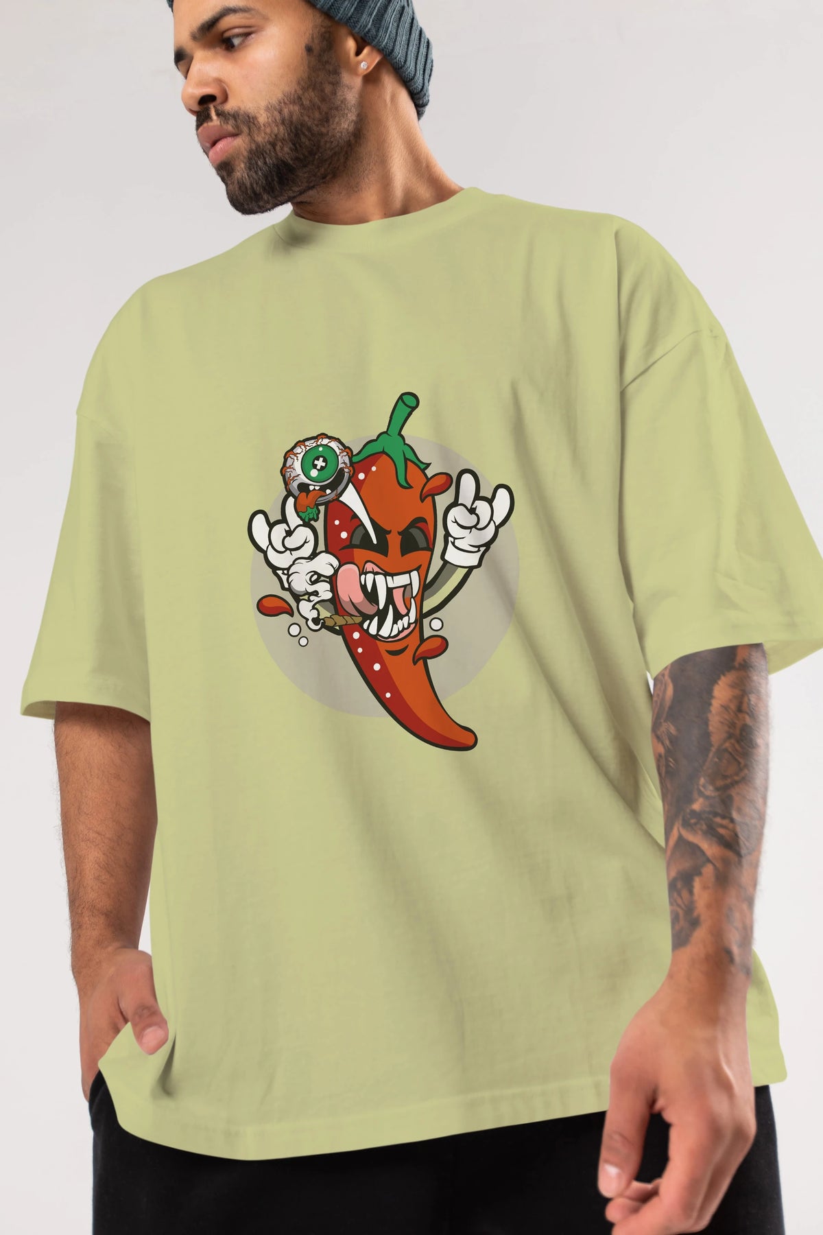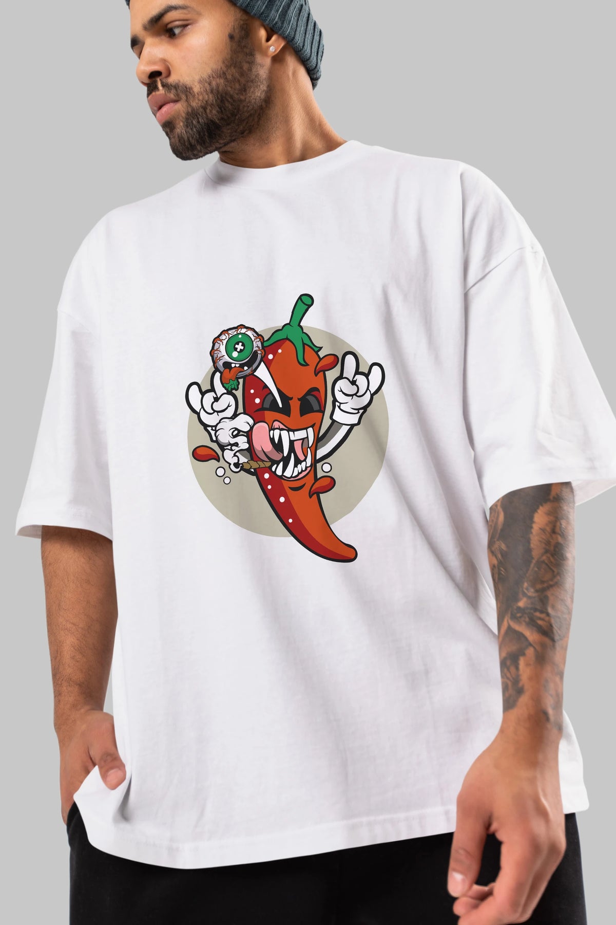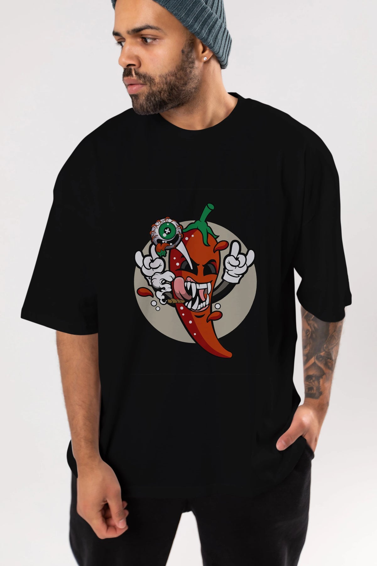 Chili Monster Ön Baskılı Oversize t-shirt Erkek Kadın Unisex %100 Pamuk tişort