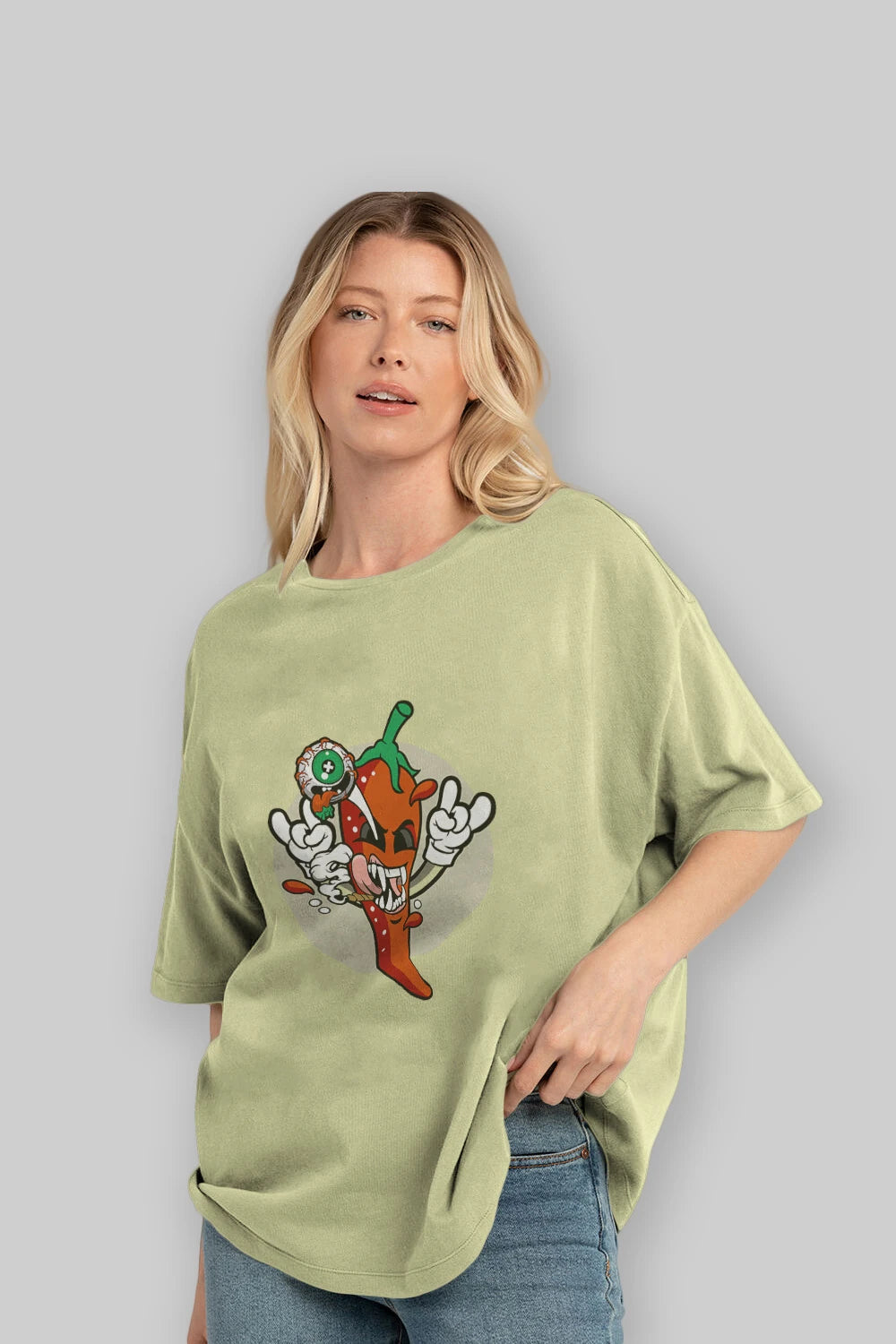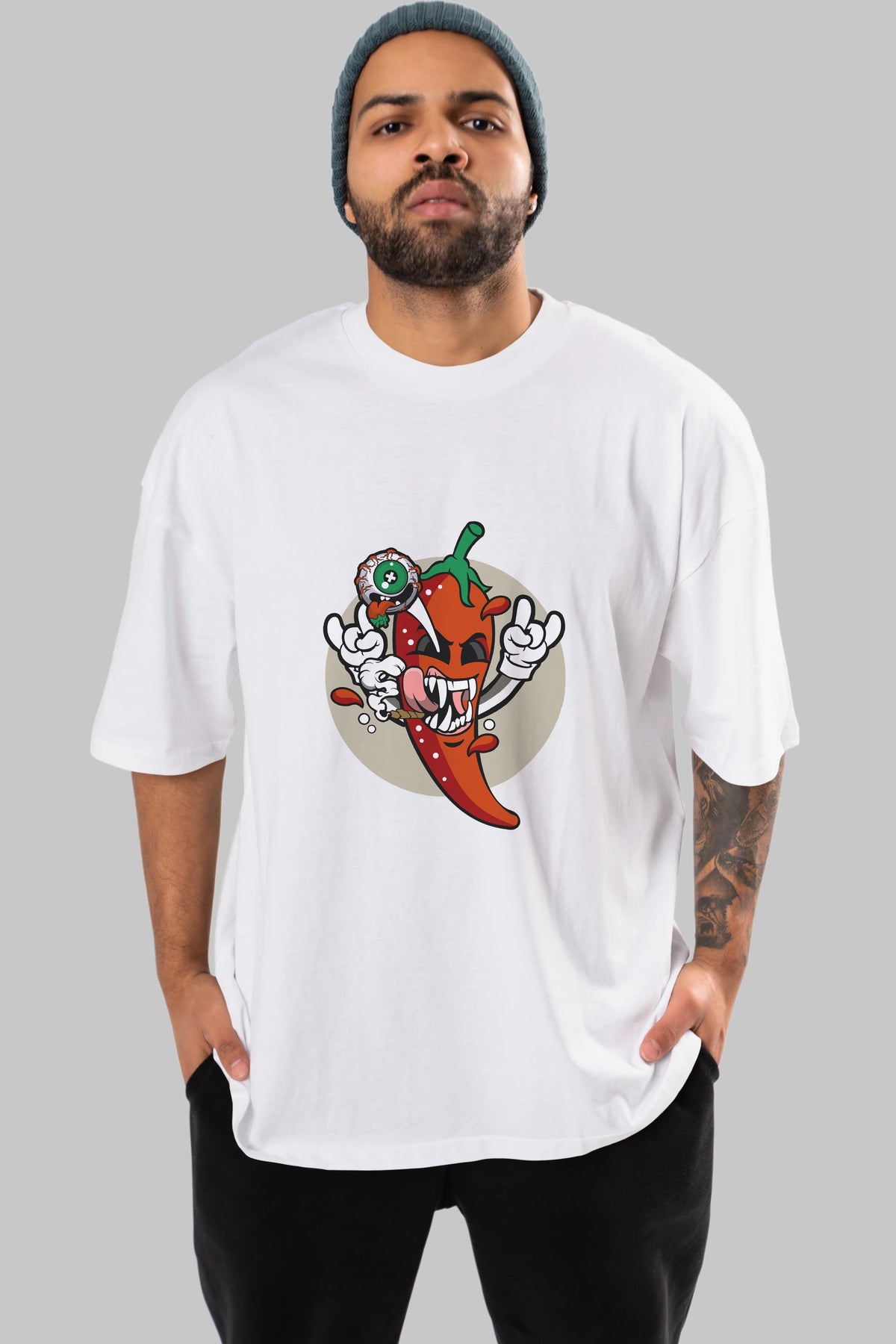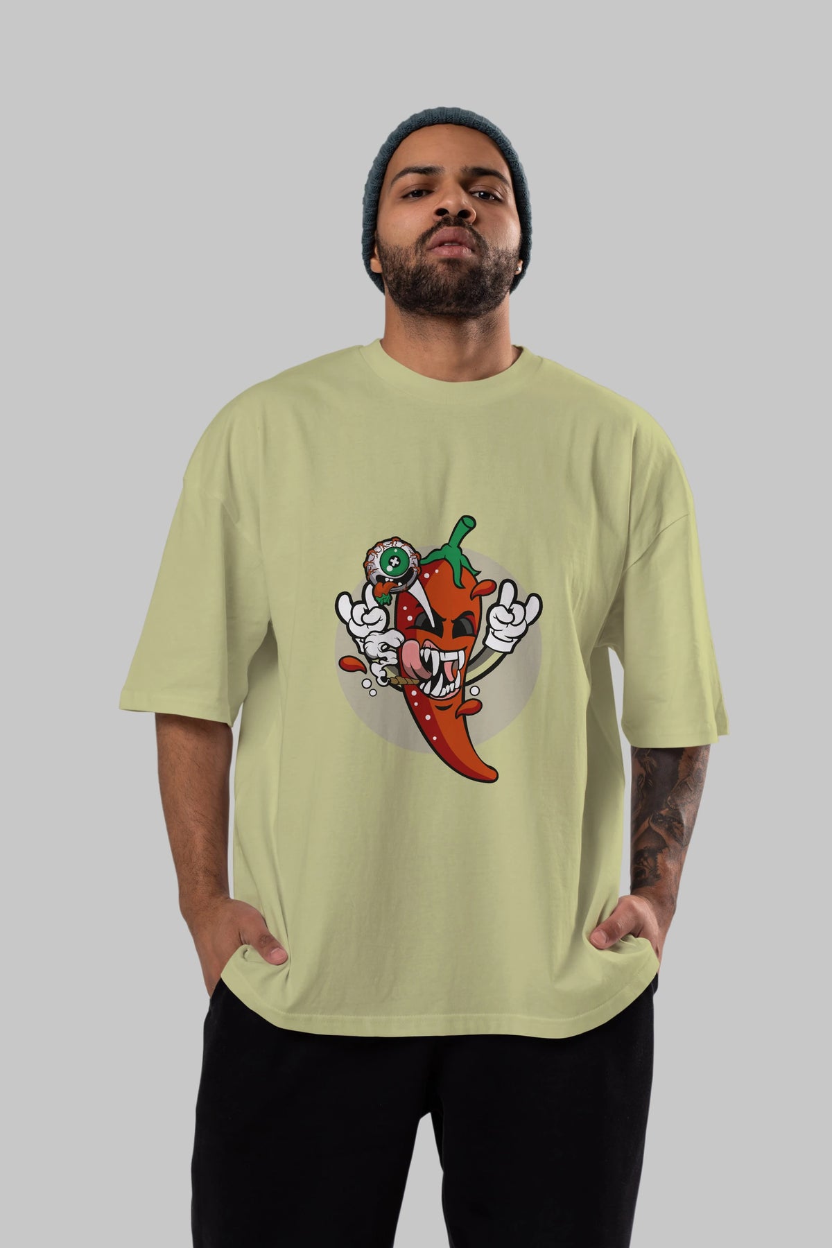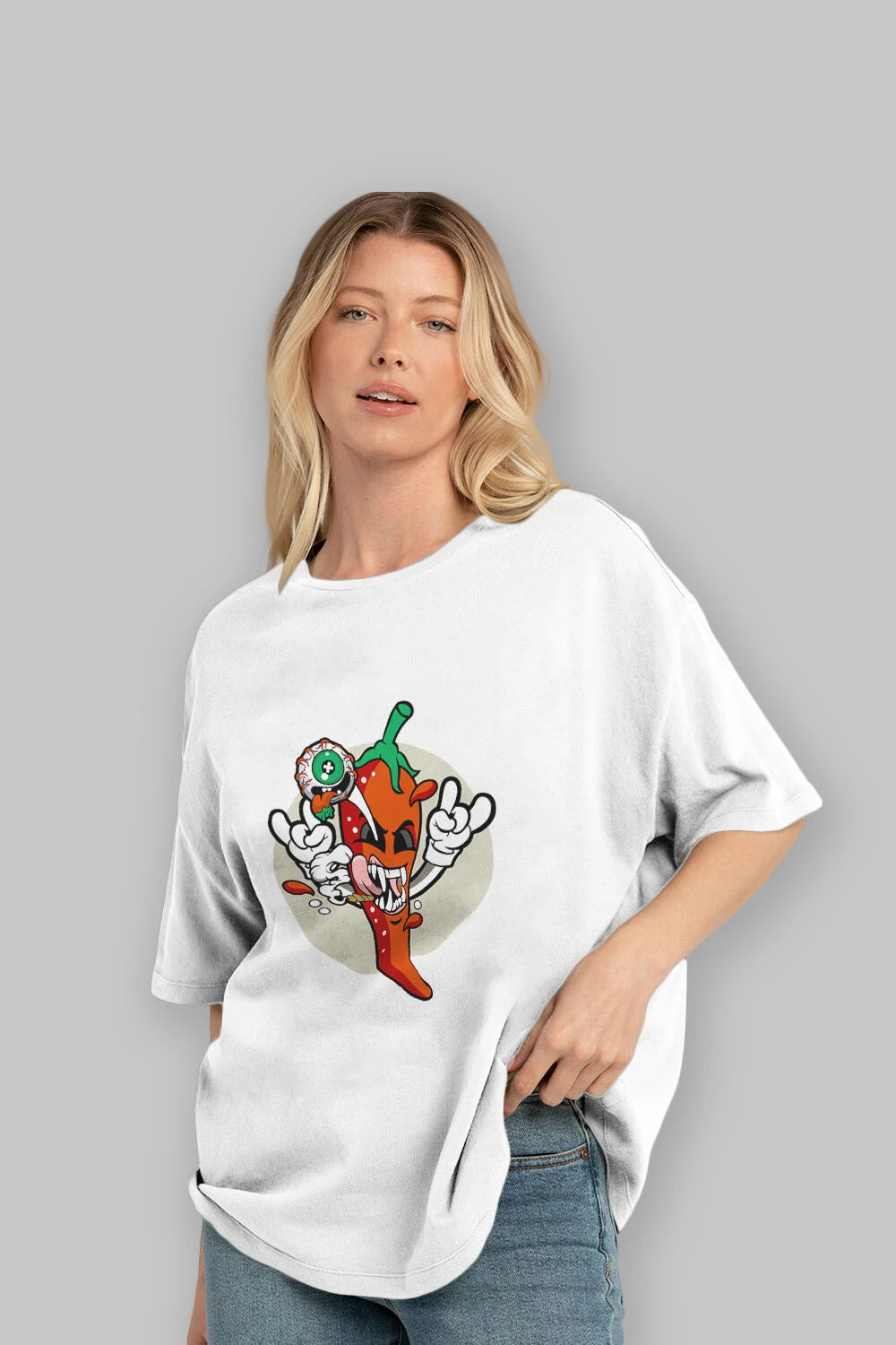 Chili Monster Ön Baskılı Oversize t-shirt Erkek Kadın Unisex %100 Pamuk tişort