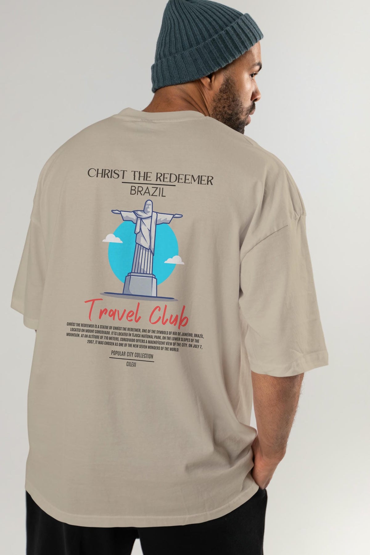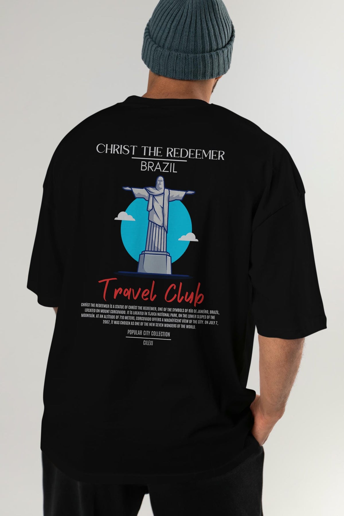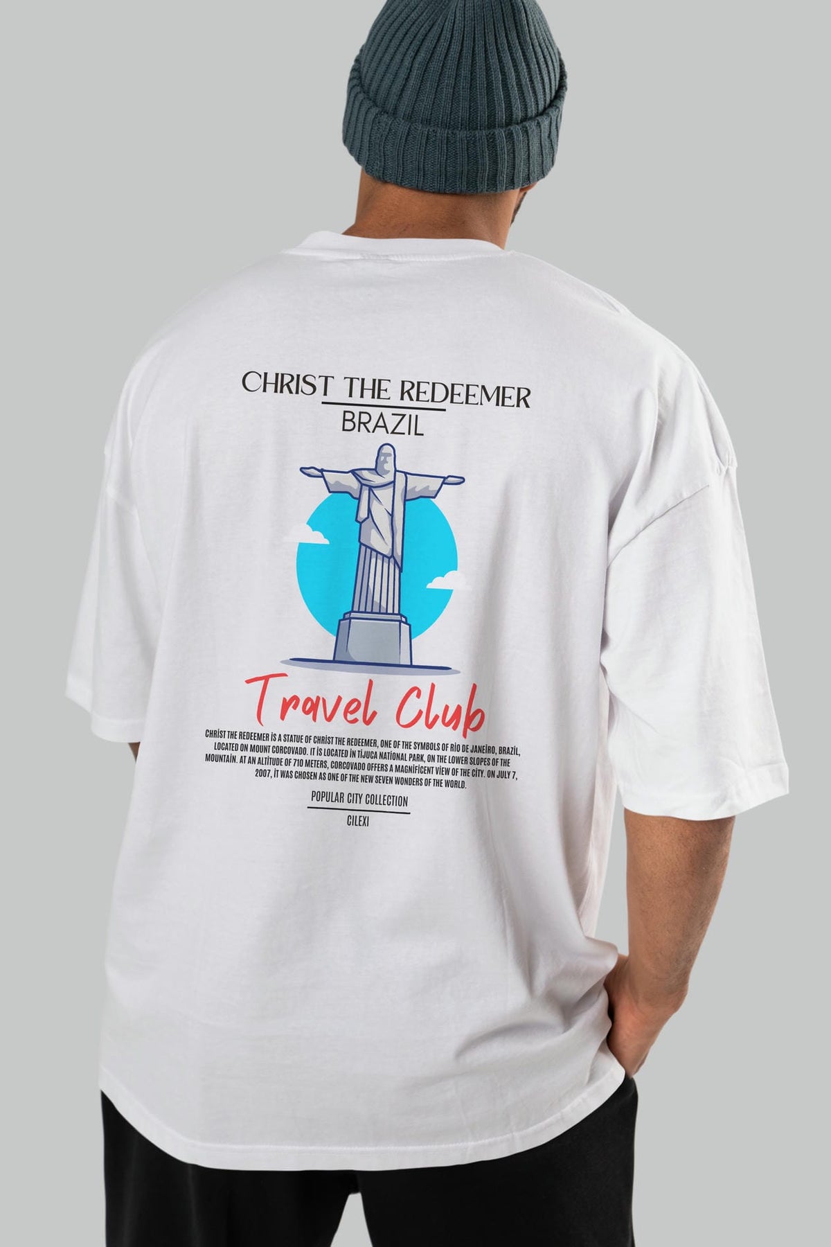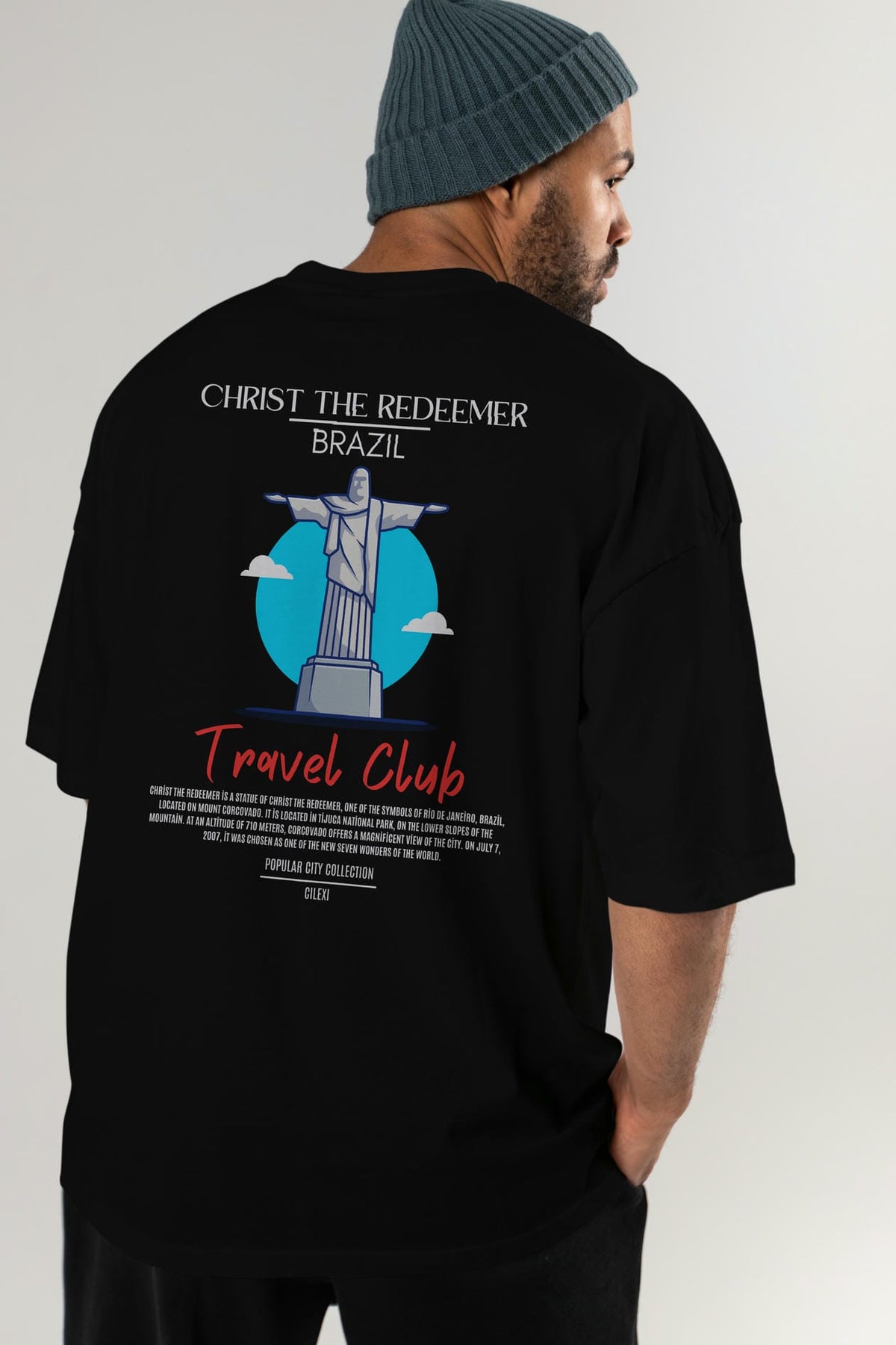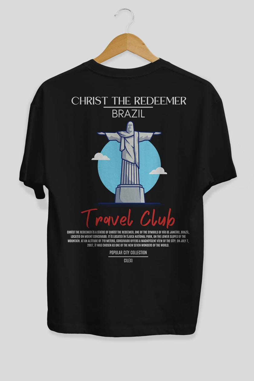 Christ The Redeemer Brazil Arka Baskılı Oversize t-shirt Erkek Kadın Pamuk Bisiklet Yaka tişort