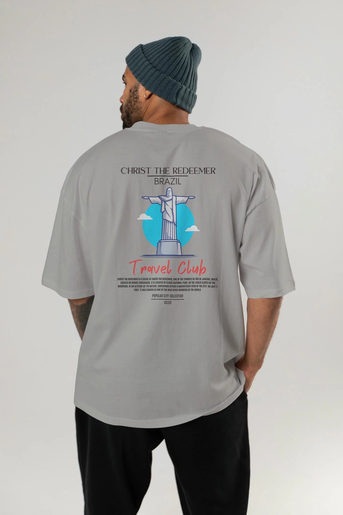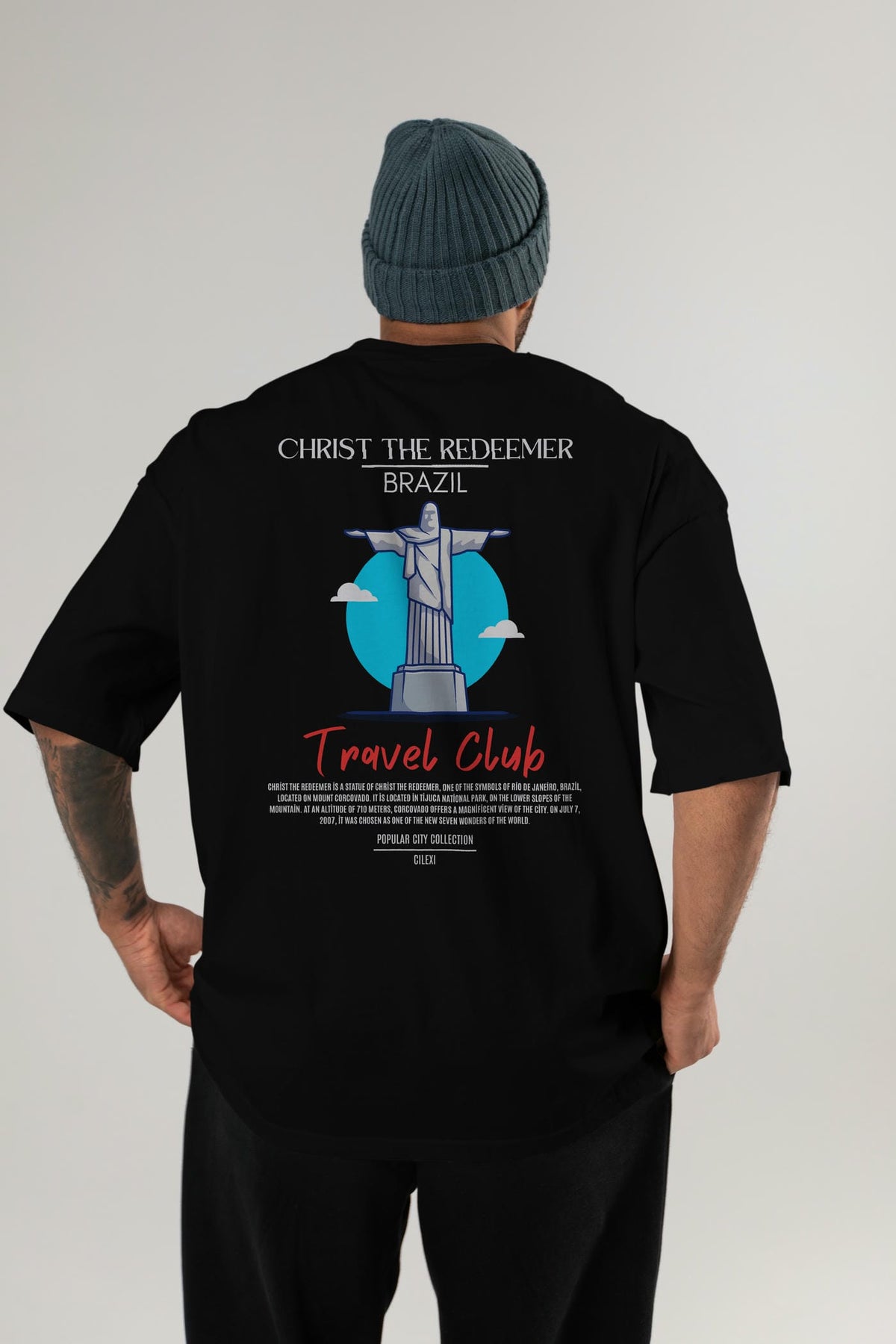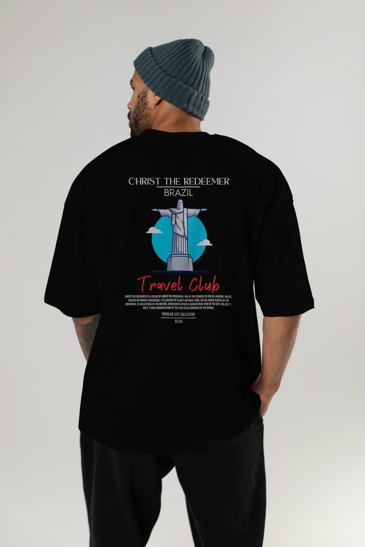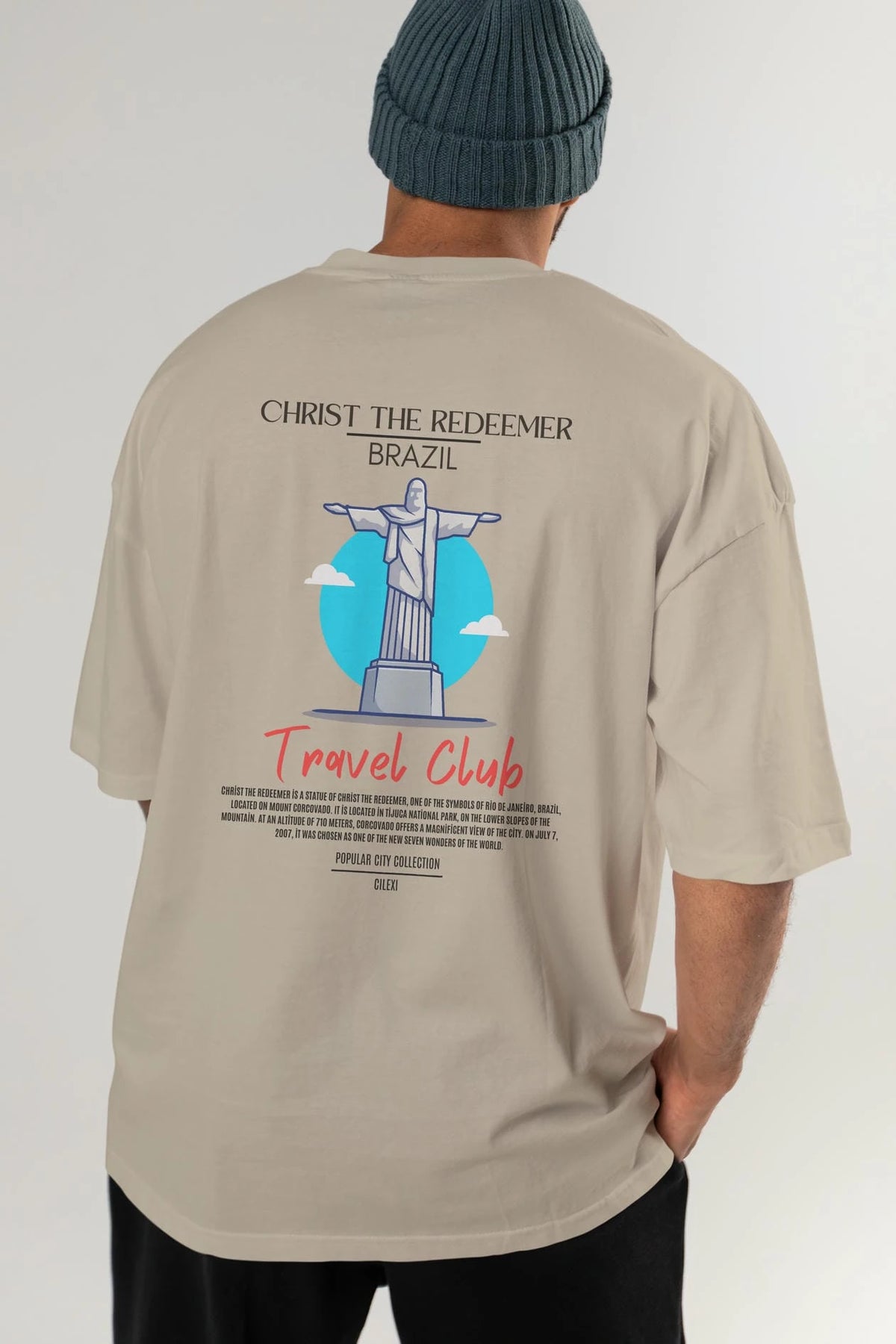 Christ The Redeemer Brazil Arka Baskılı Oversize t-shirt Erkek Kadın Pamuk Bisiklet Yaka tişort