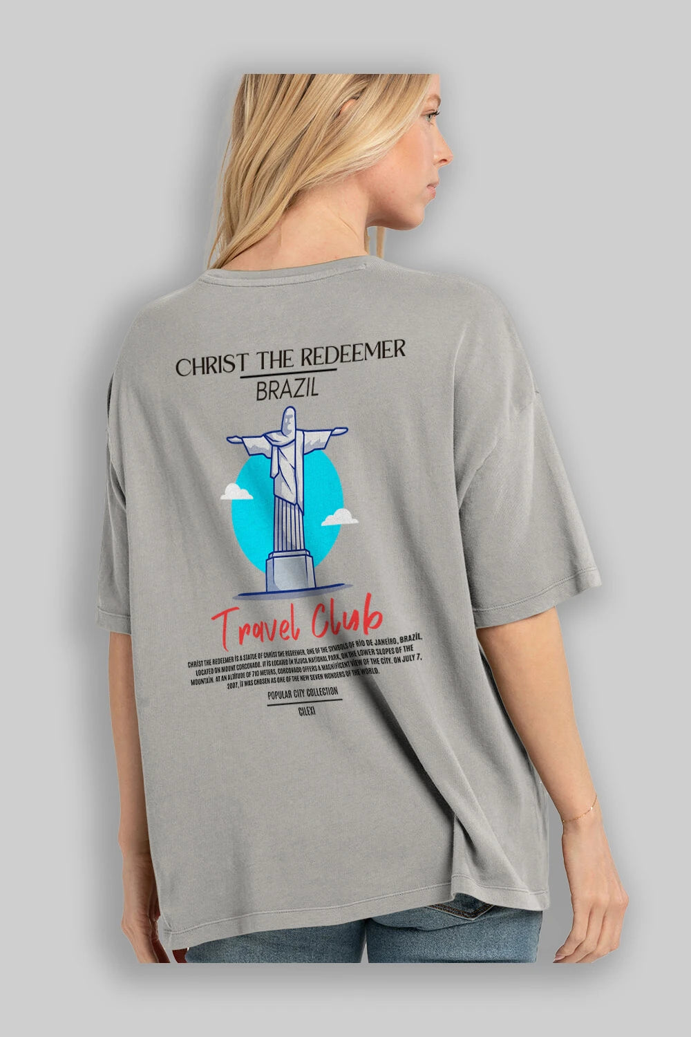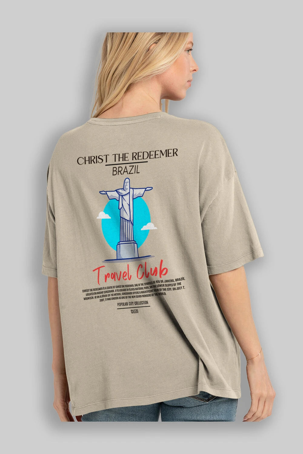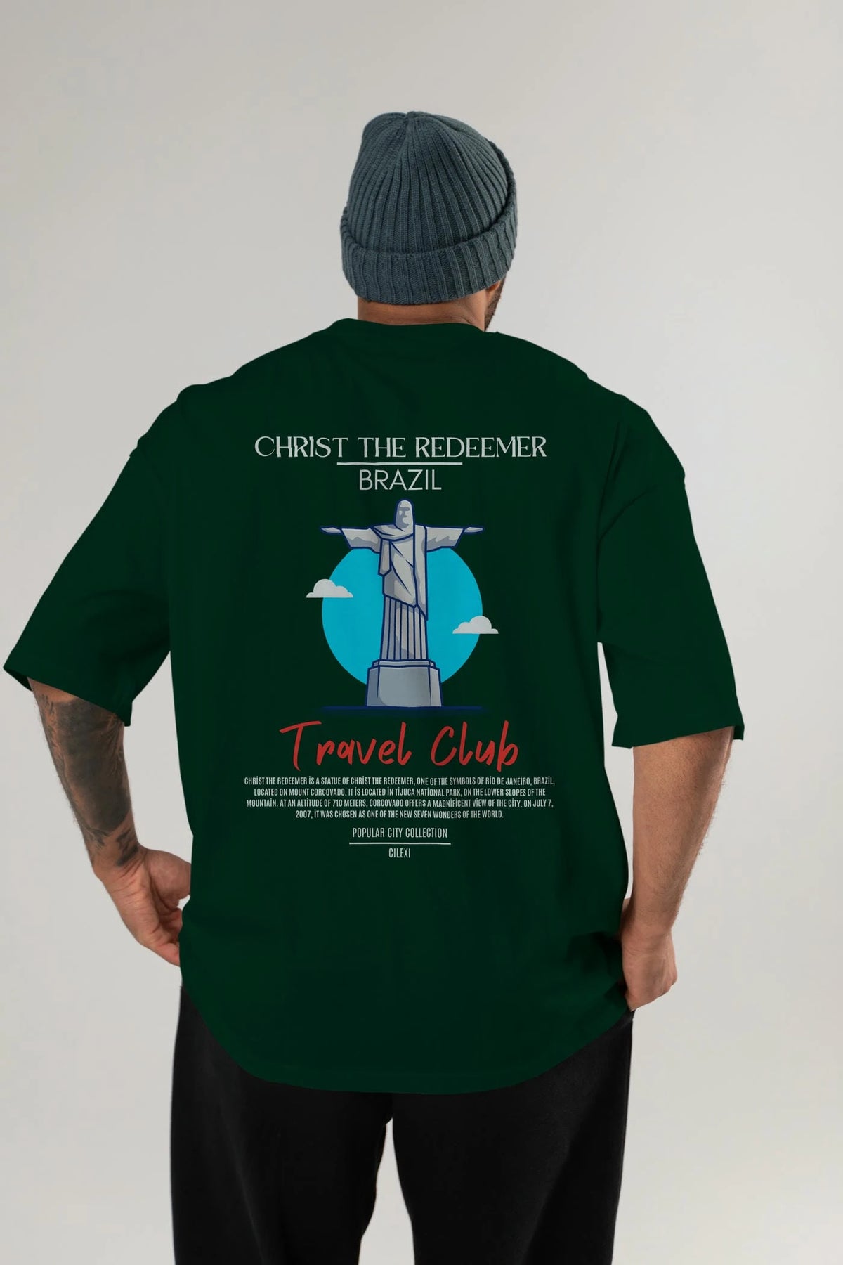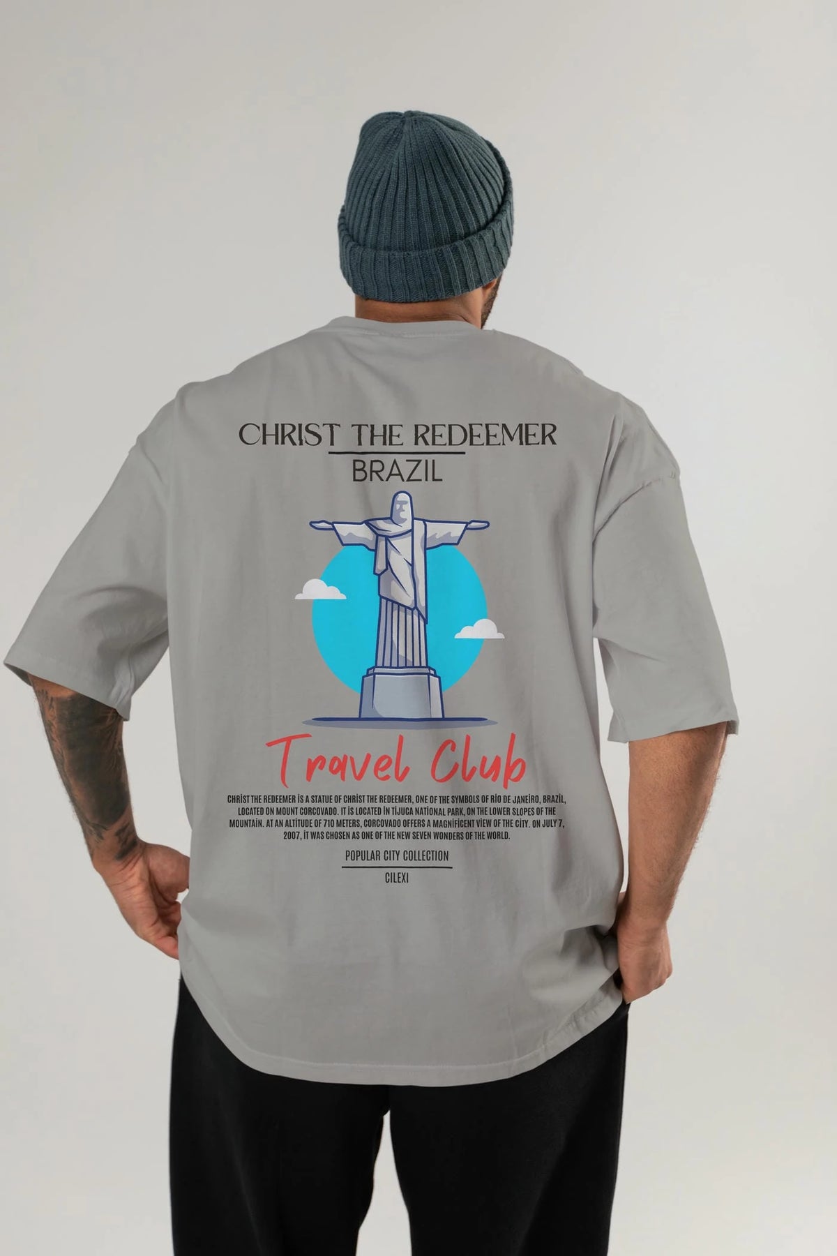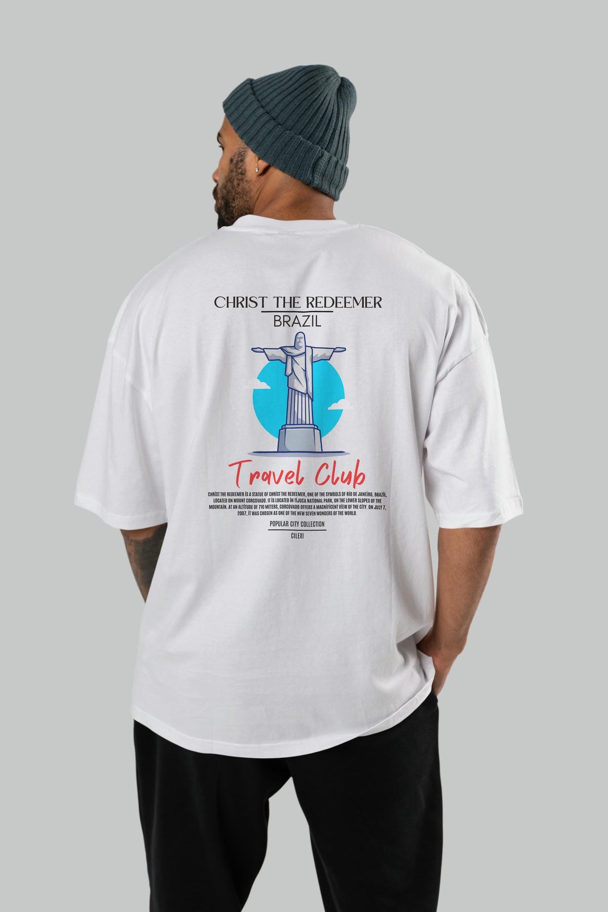 Christ The Redeemer Brazil Arka Baskılı Oversize t-shirt Erkek Kadın Pamuk Bisiklet Yaka tişort
