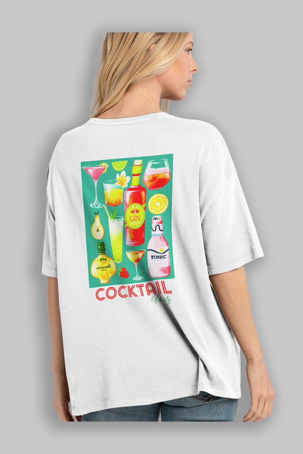 Cocktail Party 2 Arka Baskılı Oversize t-shirt Erkek Kadın Unisex %100 Pamuk Bisiklet Yaka tişort