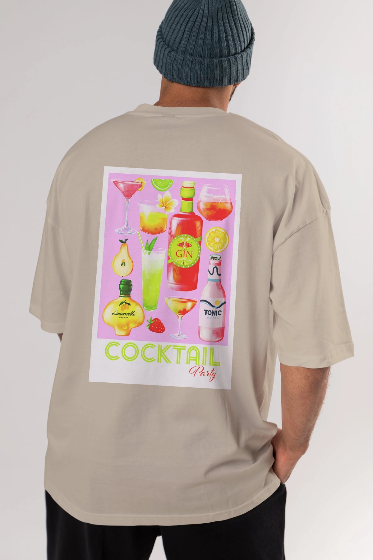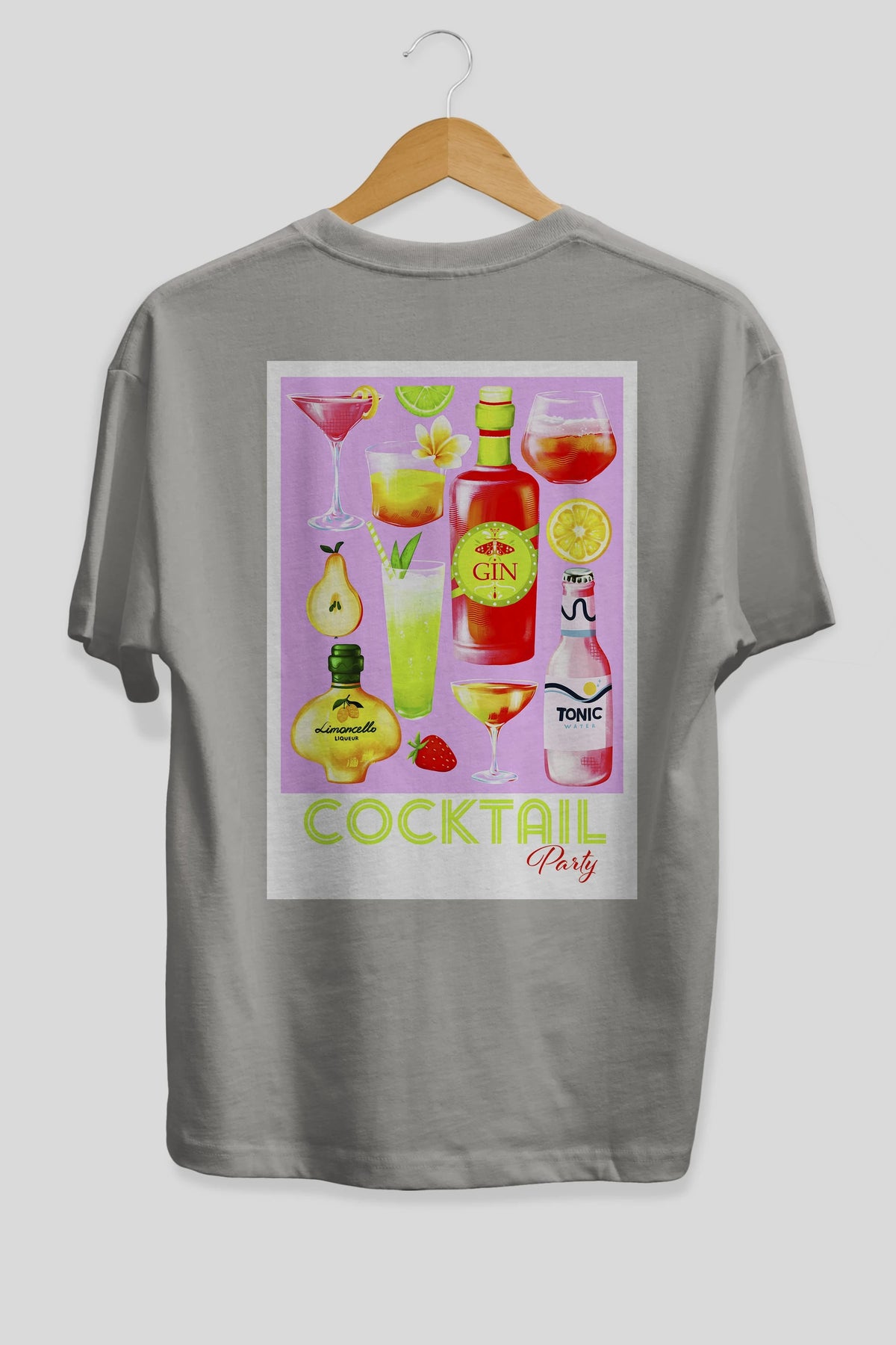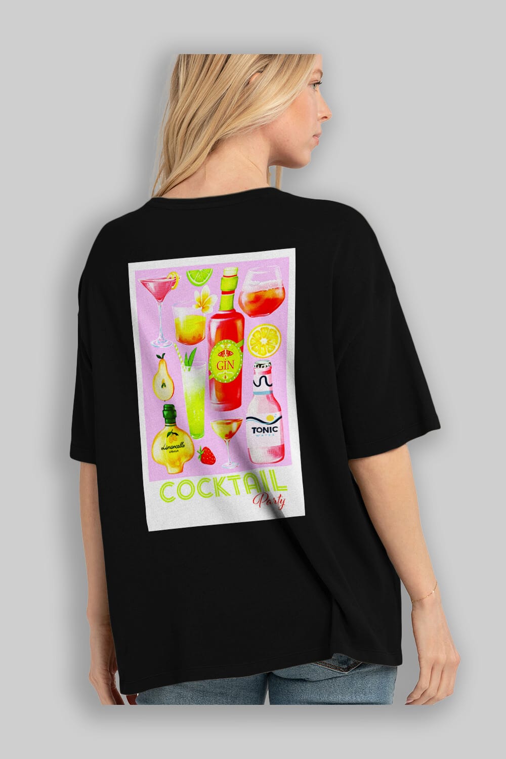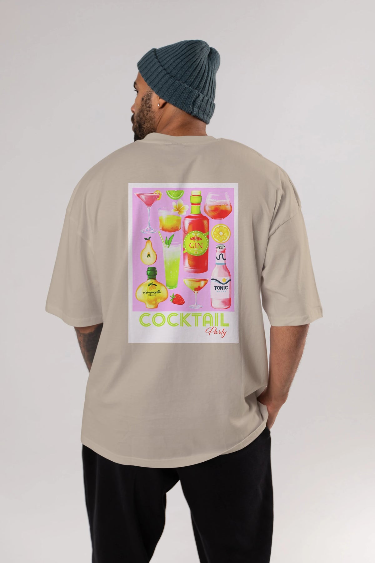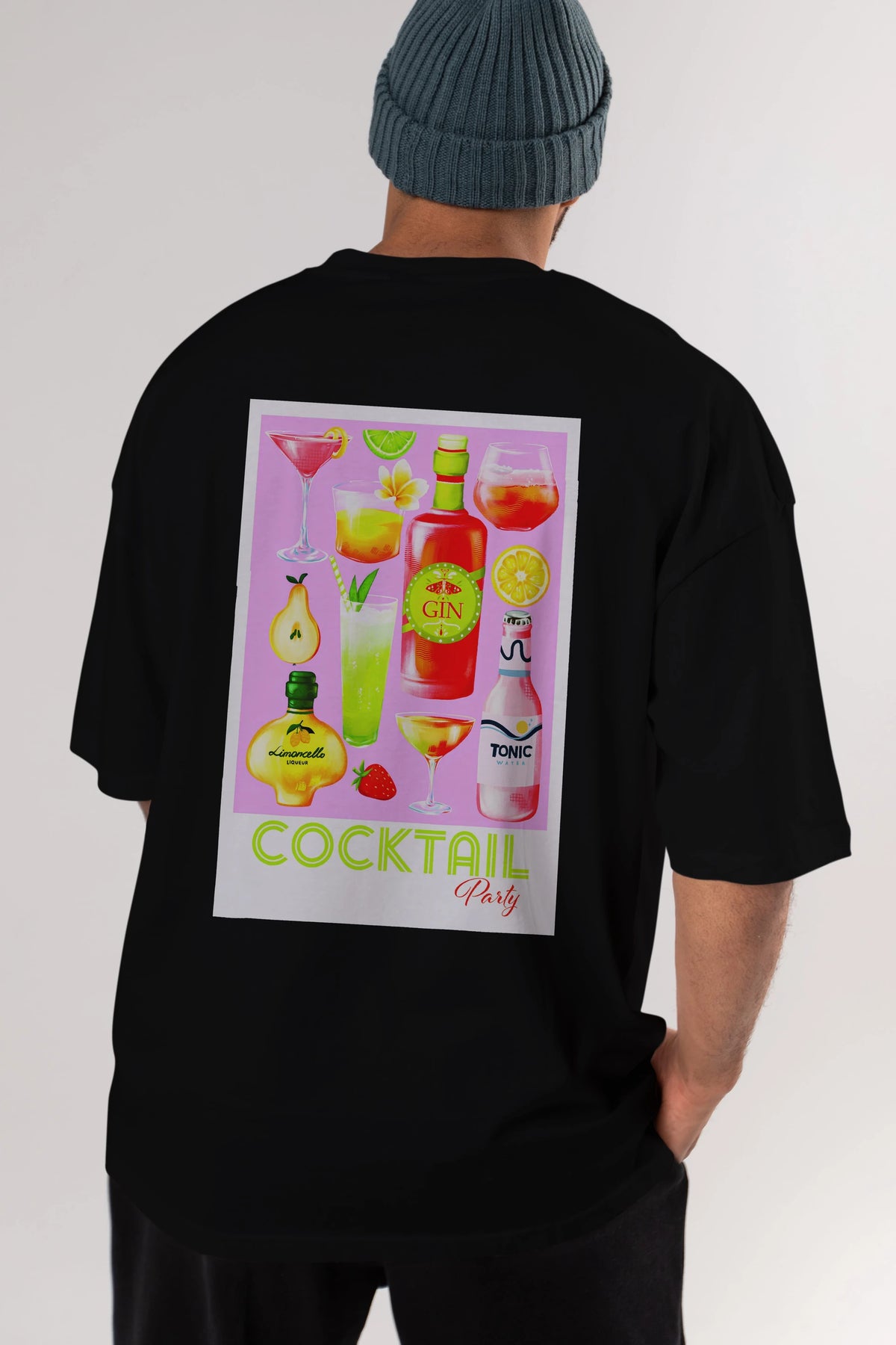 Cocktail Party Arka Baskılı Oversize t-shirt Erkek Kadın Unisex %100 Pamuk Bisiklet Yaka tişort