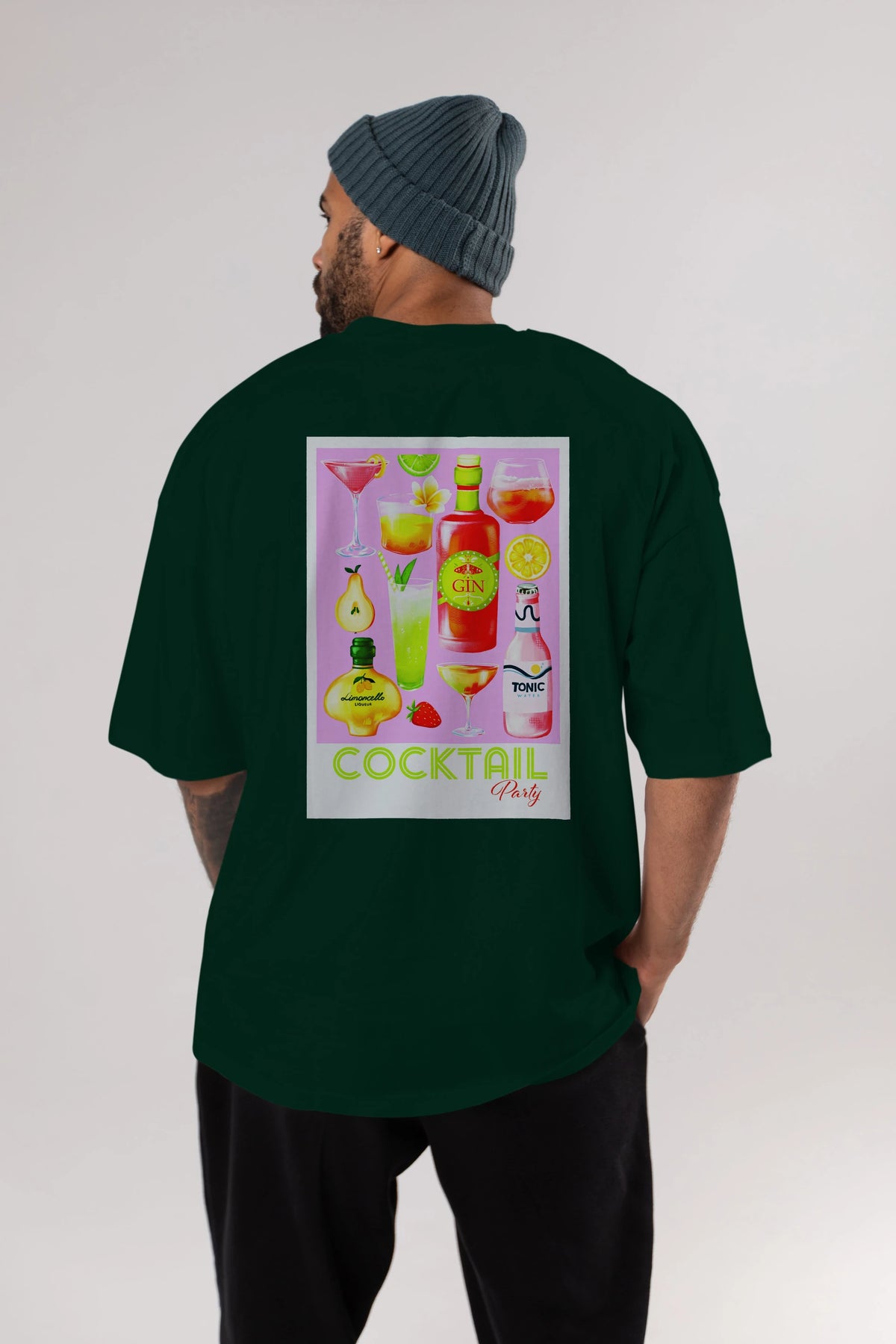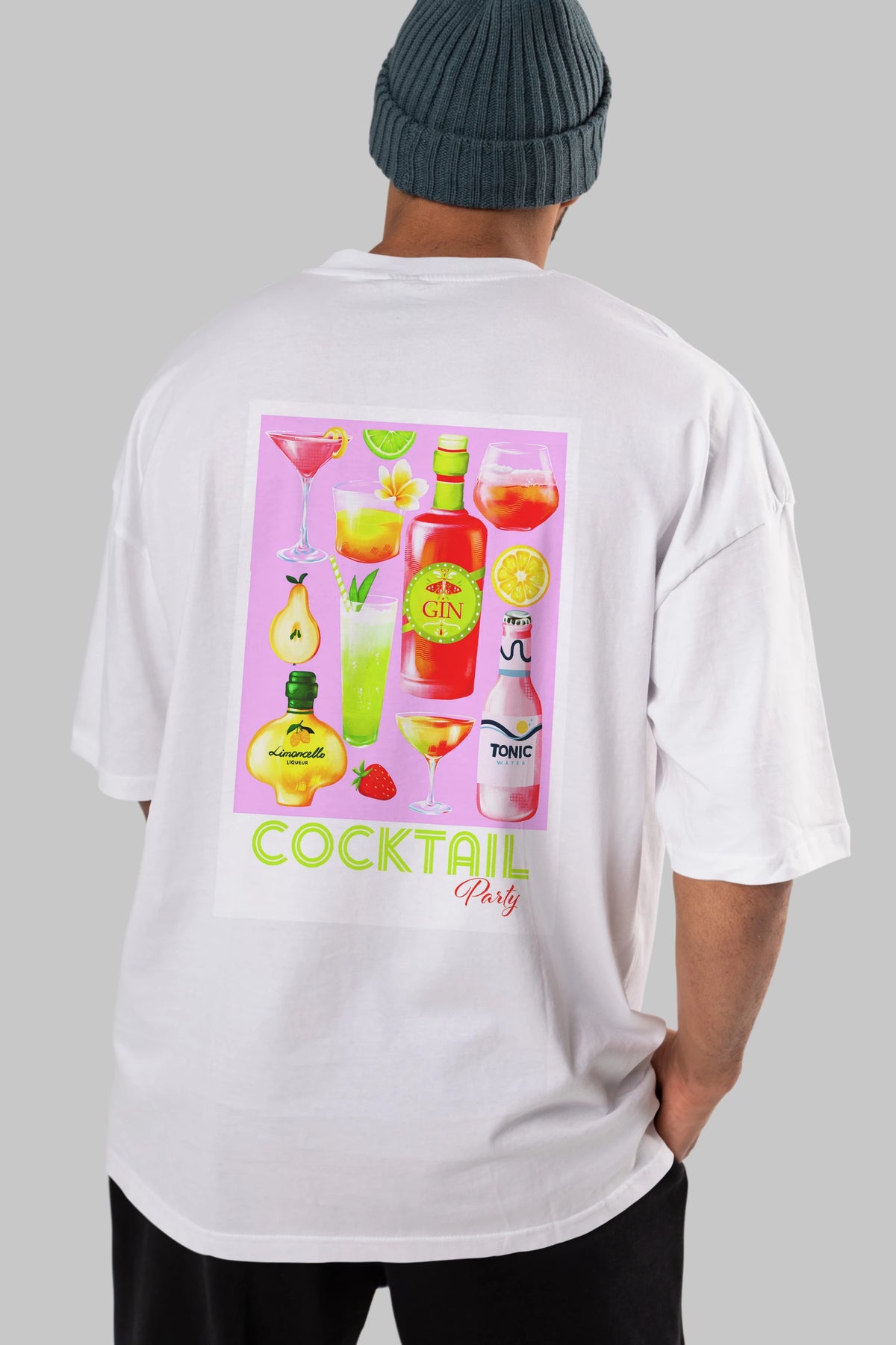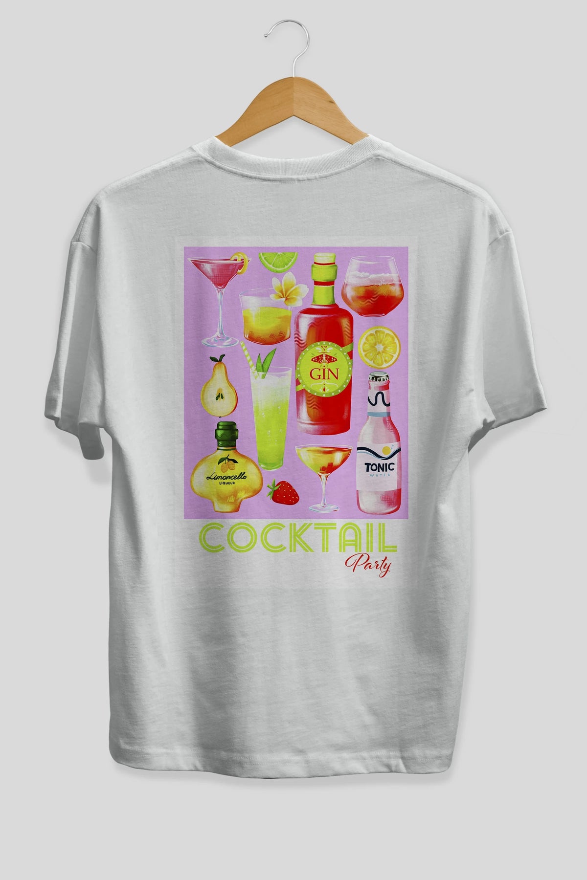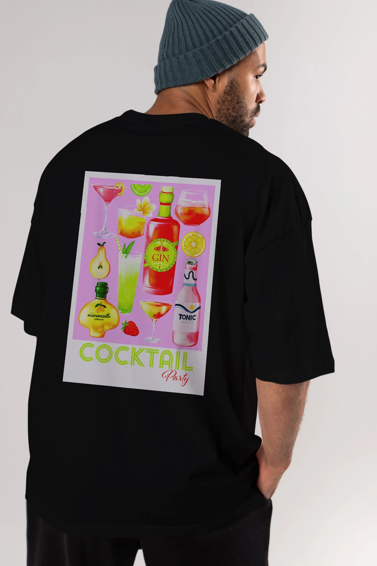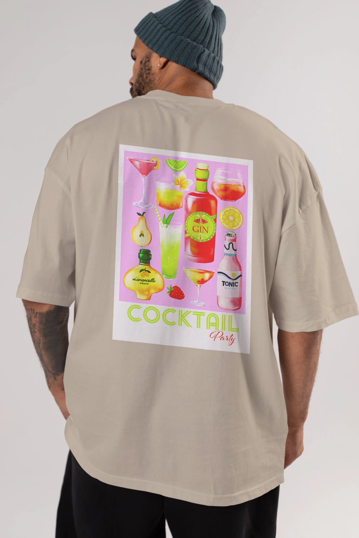 Cocktail Party Arka Baskılı Oversize t-shirt Erkek Kadın Unisex %100 Pamuk Bisiklet Yaka tişort