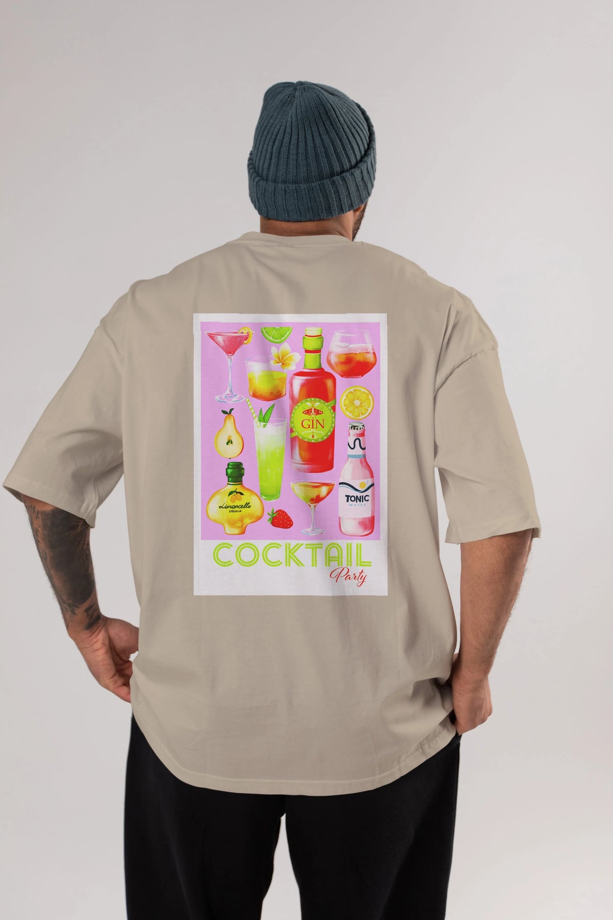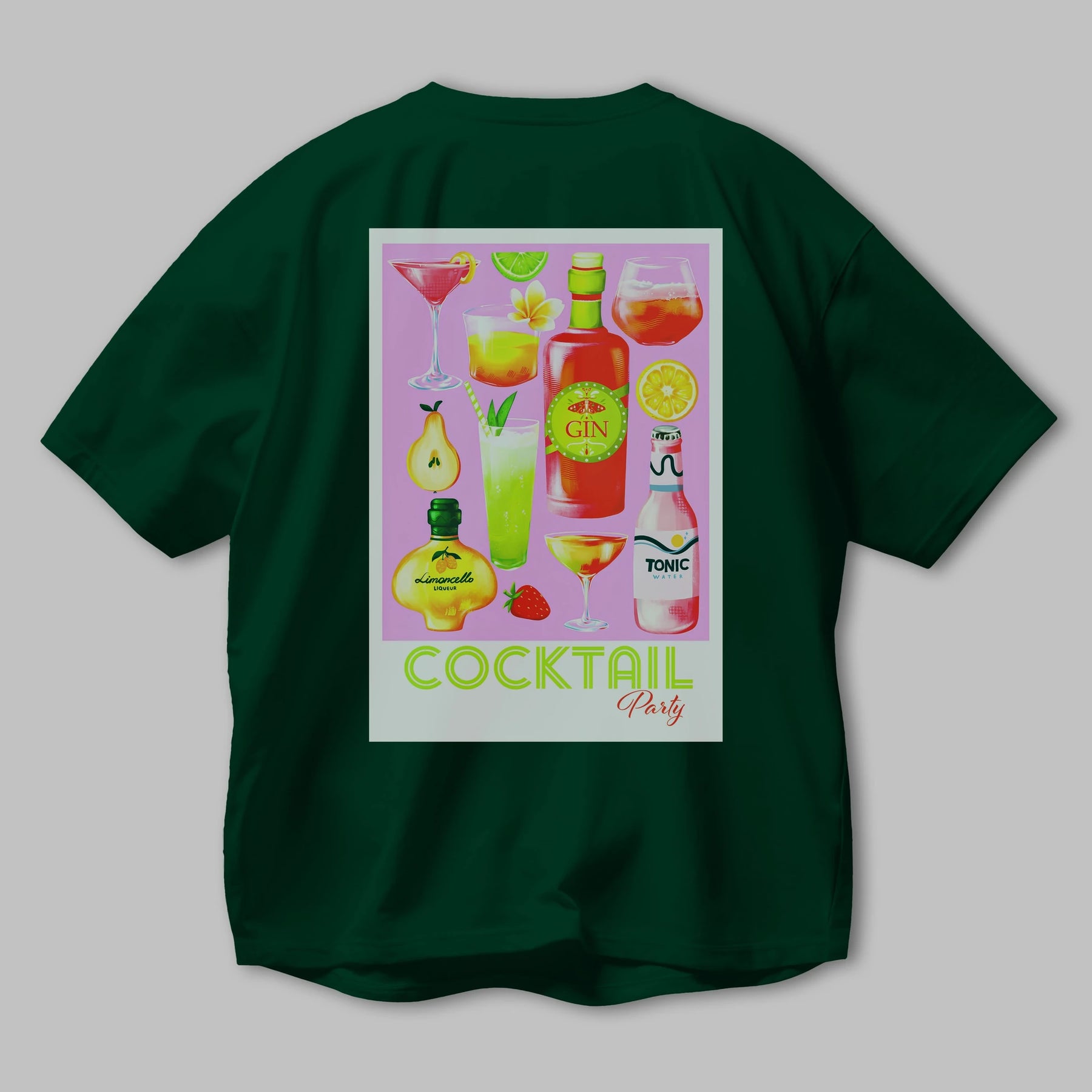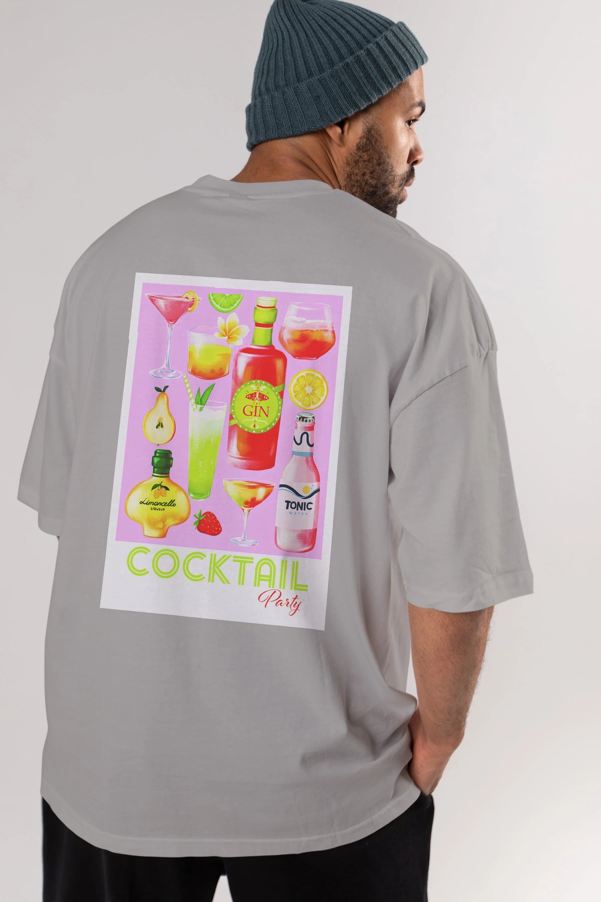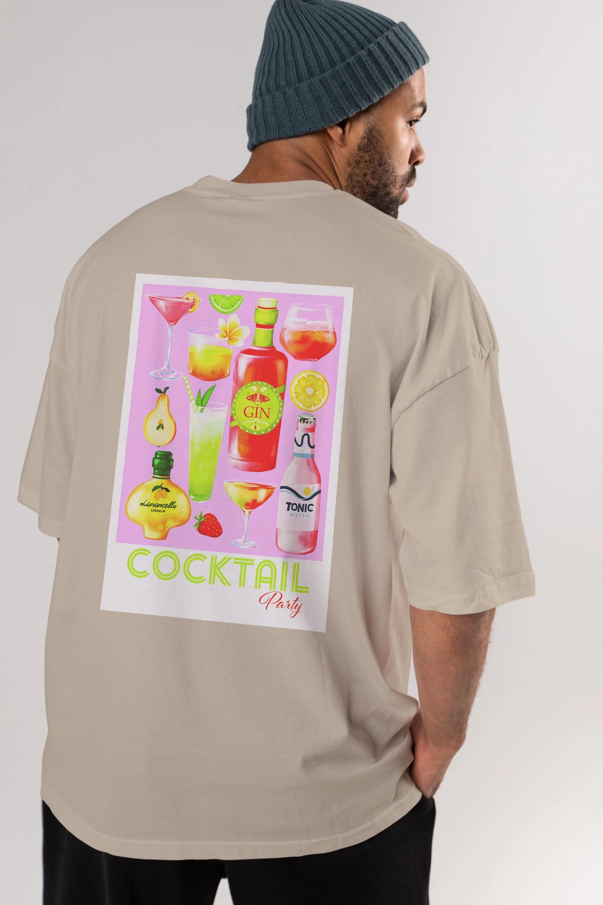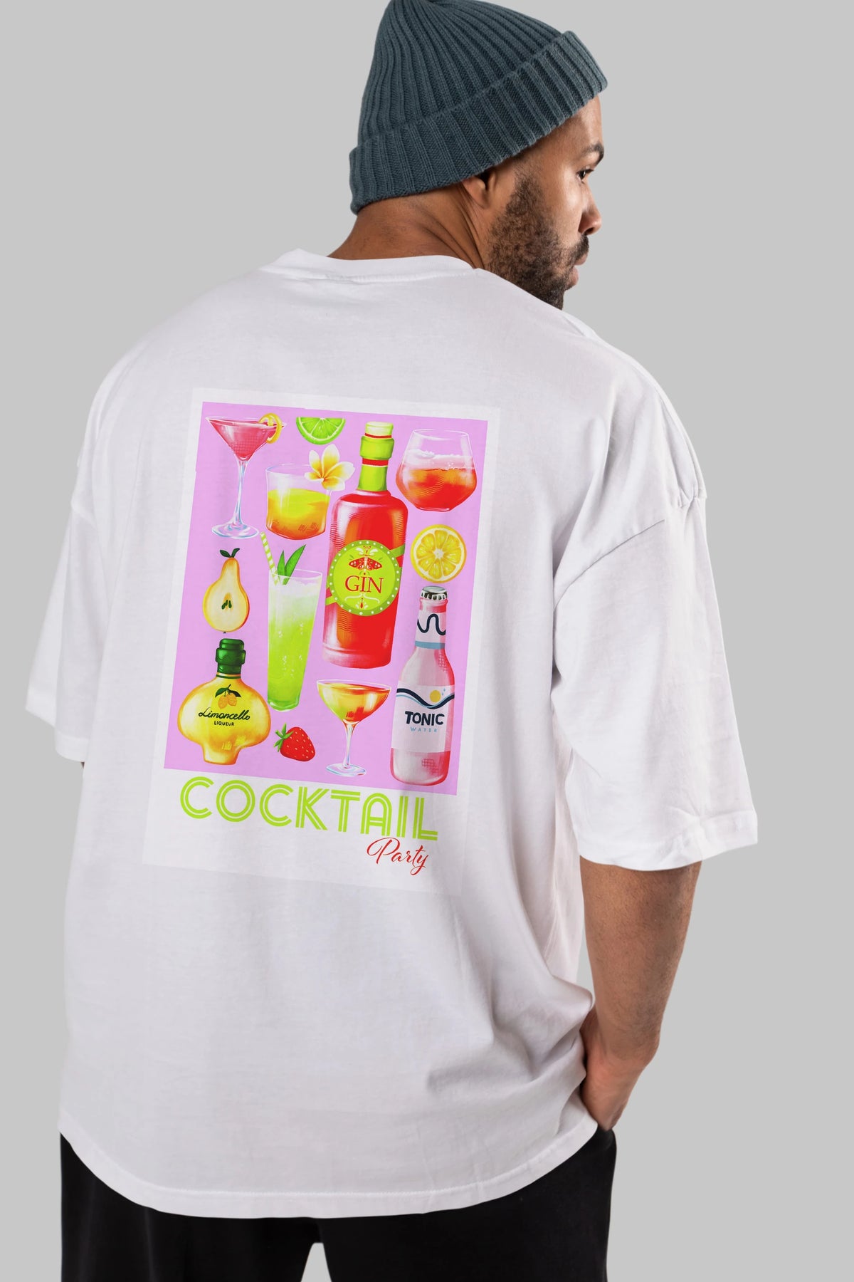 Cocktail Party Arka Baskılı Oversize t-shirt Erkek Kadın Unisex %100 Pamuk Bisiklet Yaka tişort