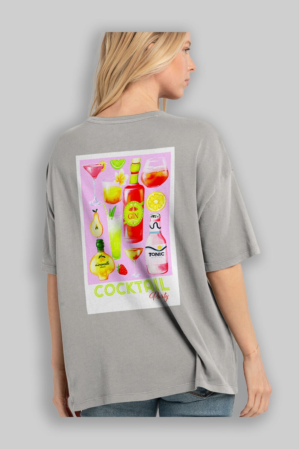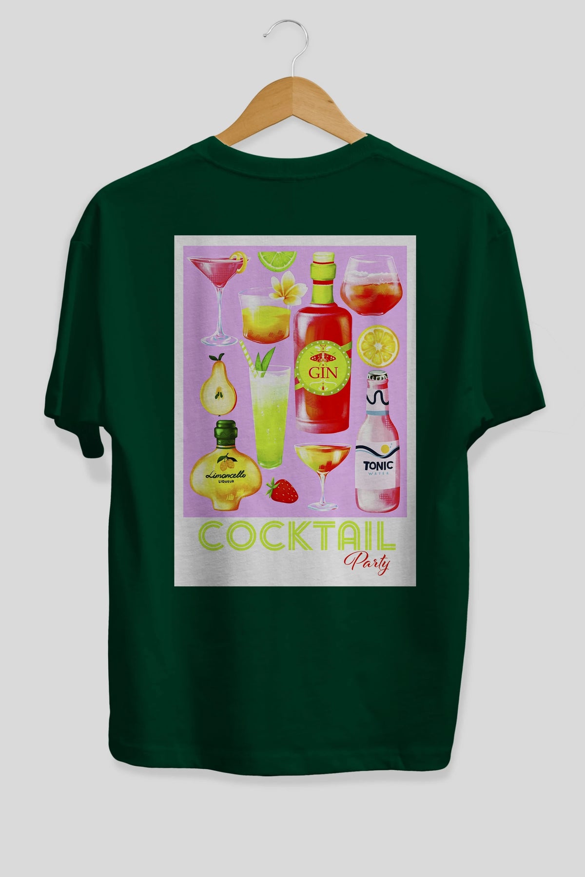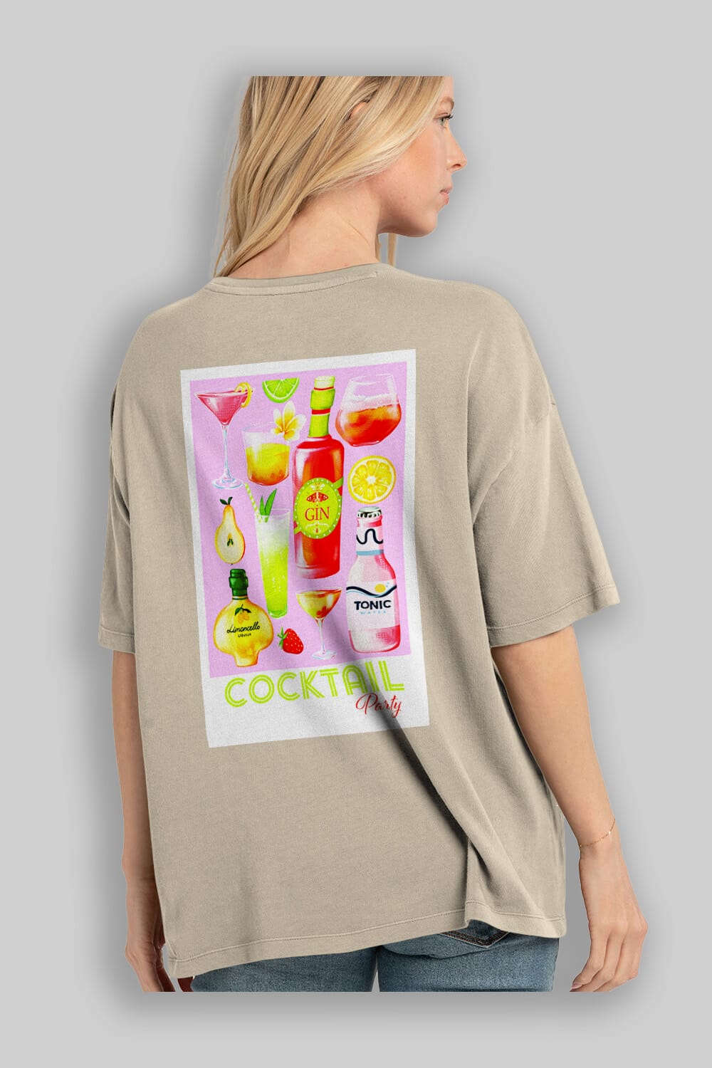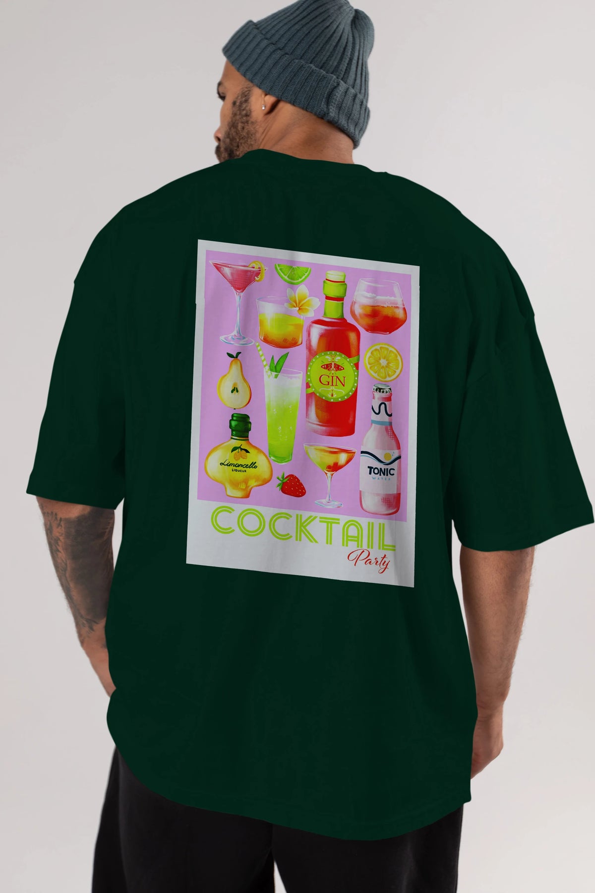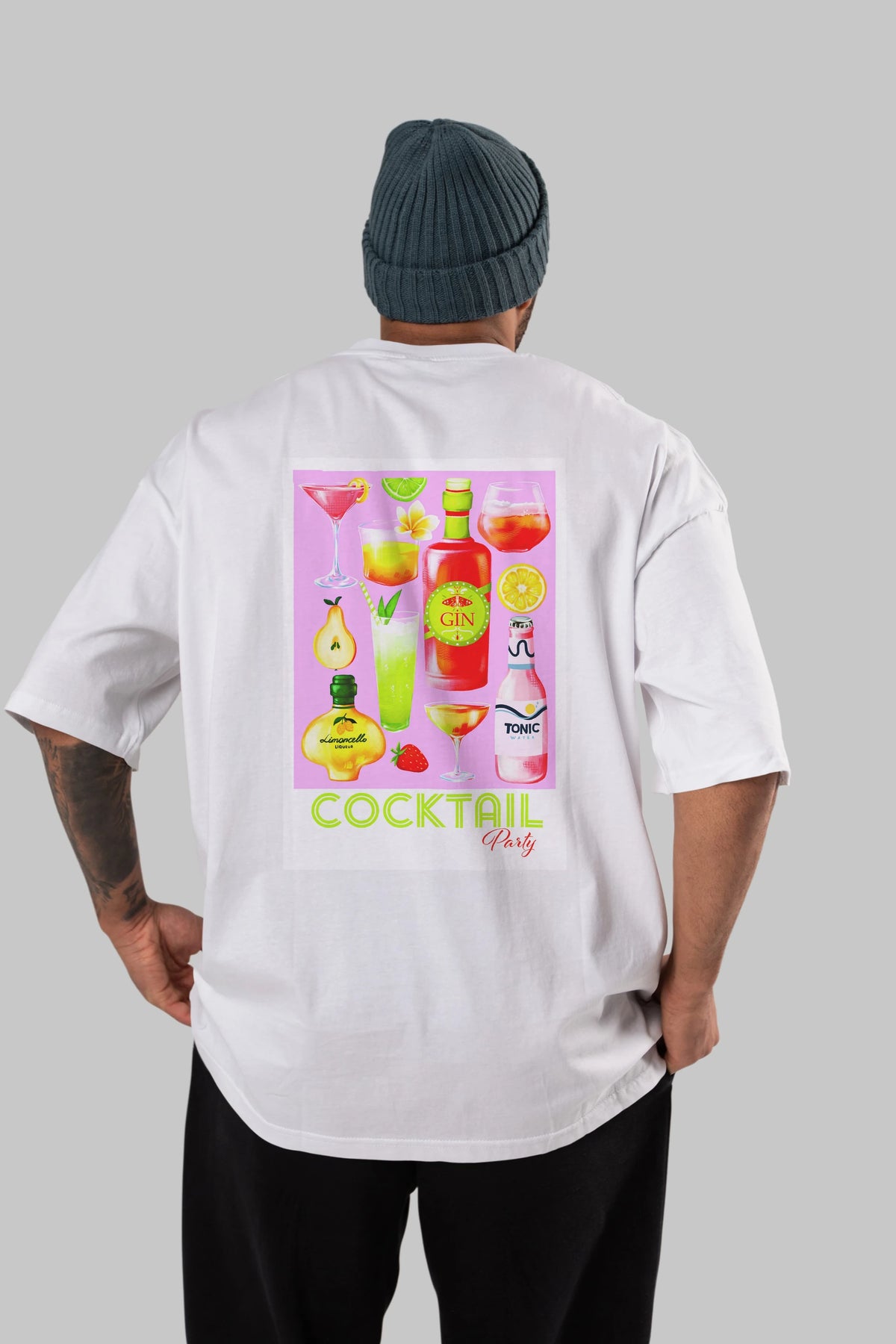 Cocktail Party Arka Baskılı Oversize t-shirt Erkek Kadın Unisex %100 Pamuk Bisiklet Yaka tişort