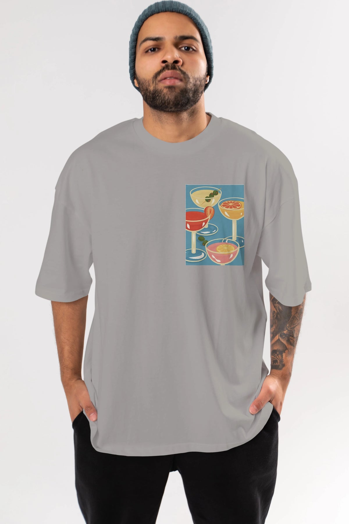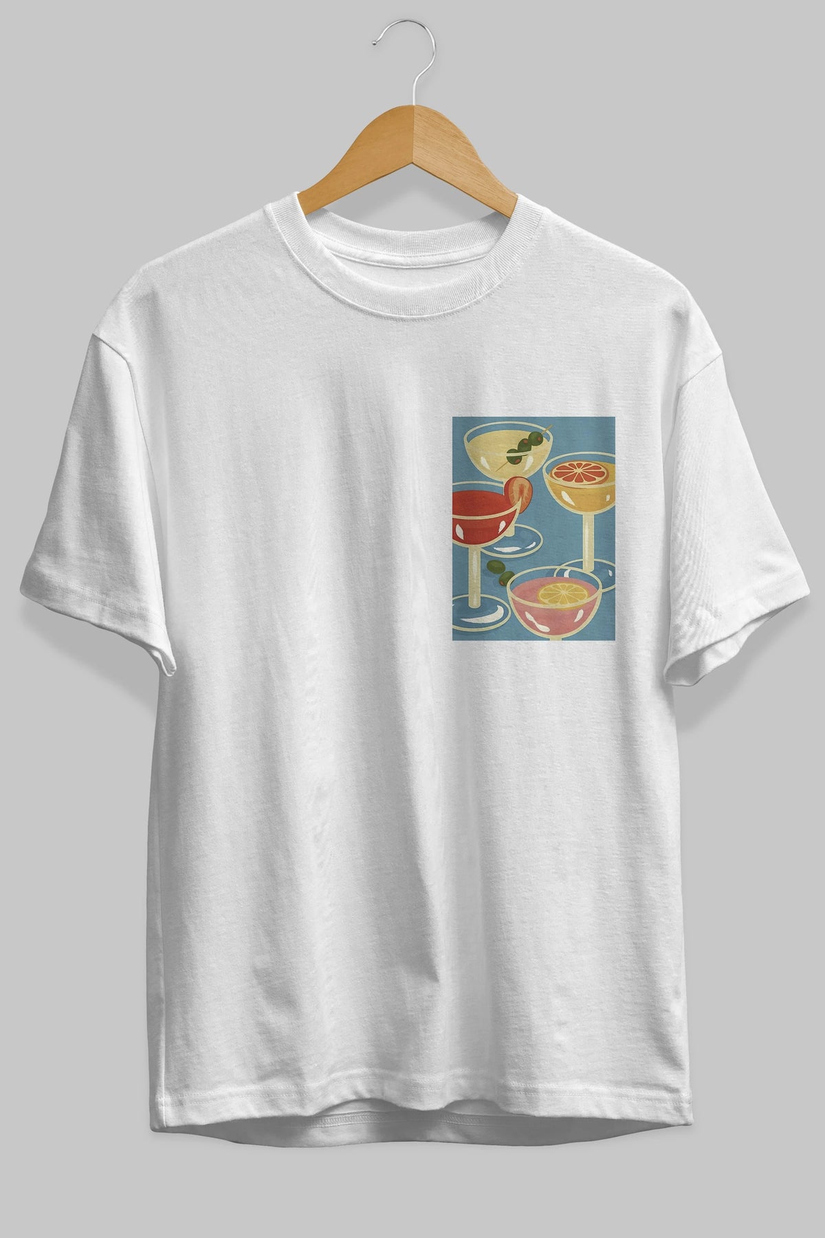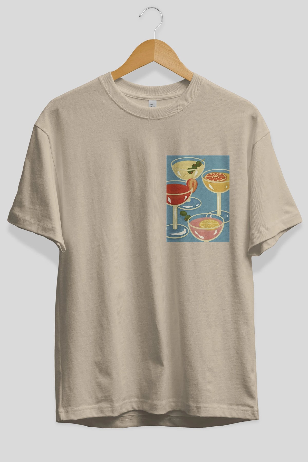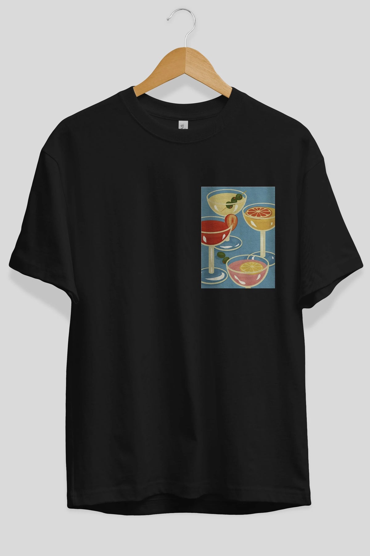 Cocktails Ön Sol Baskılı Oversize t-shirt Erkek Kadın Unisex %100 Pamuk Bisiklet Yaka tişort
