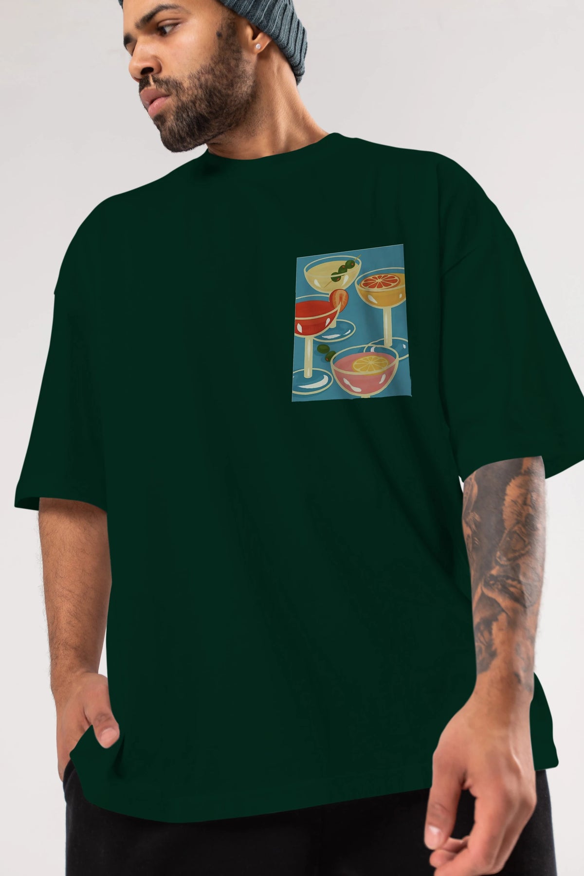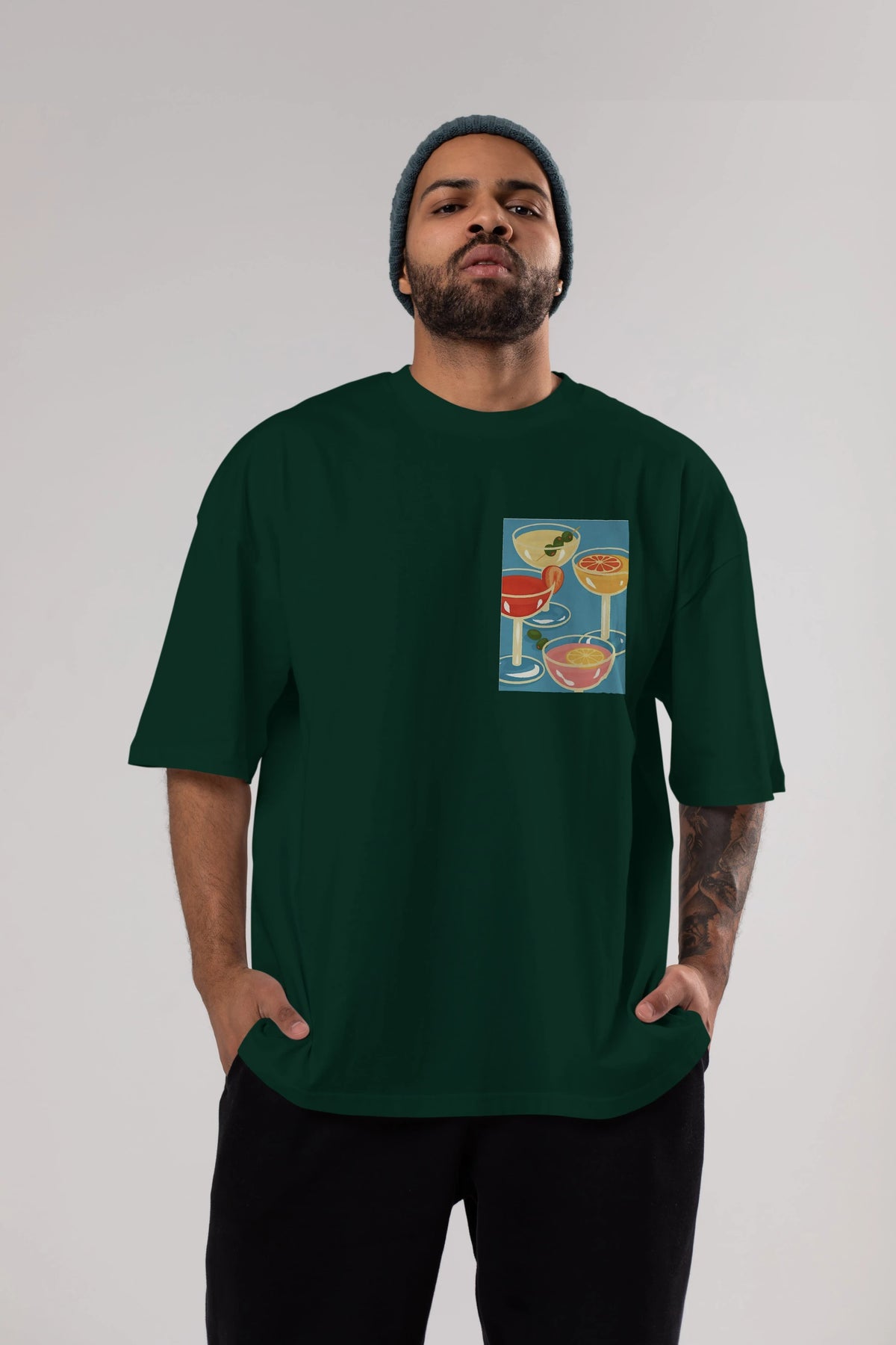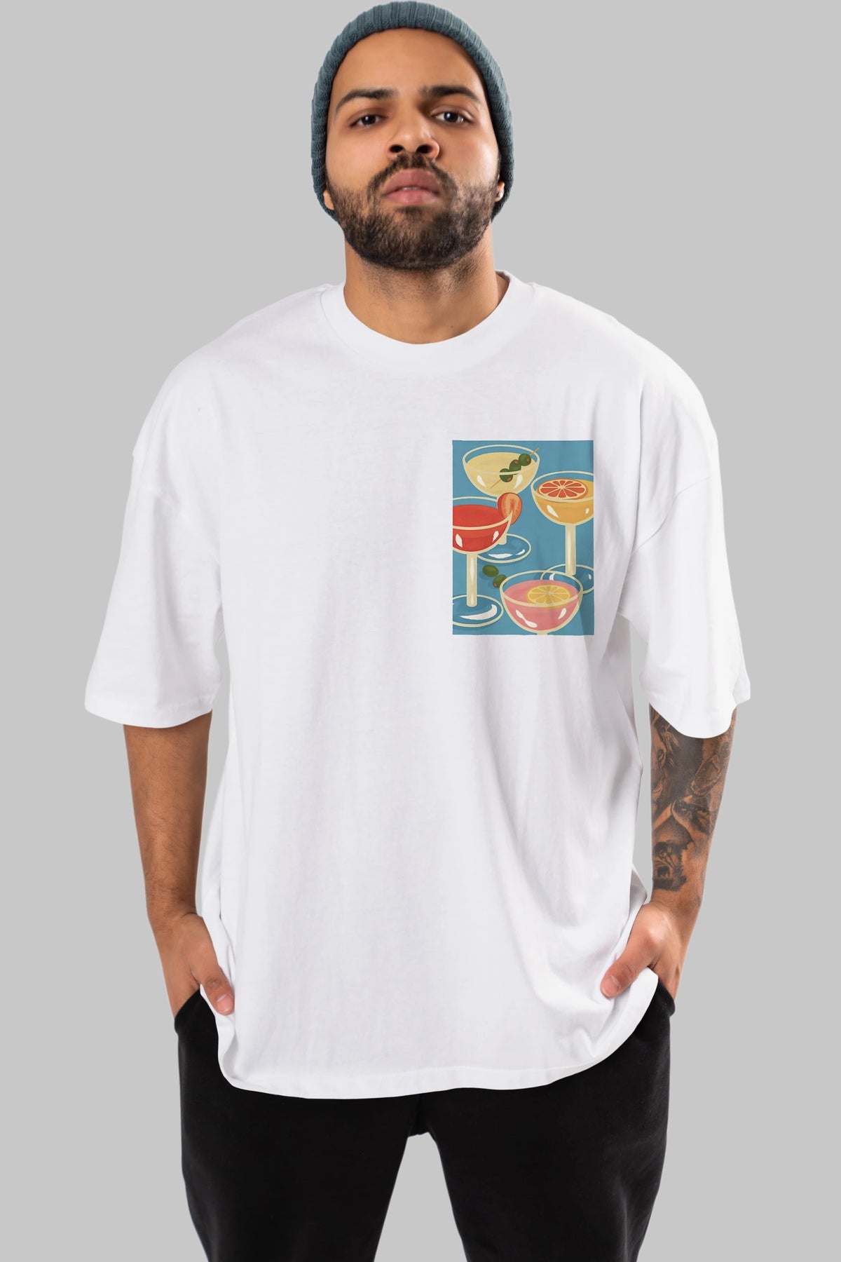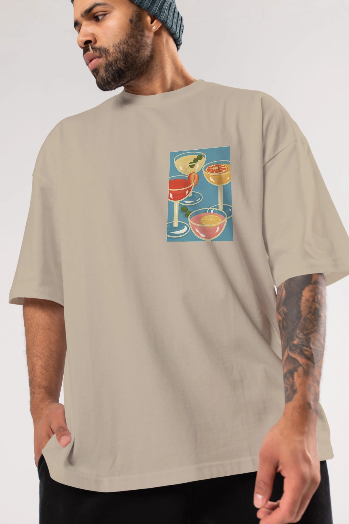 Cocktails Ön Sol Baskılı Oversize t-shirt Erkek Kadın Unisex %100 Pamuk Bisiklet Yaka tişort