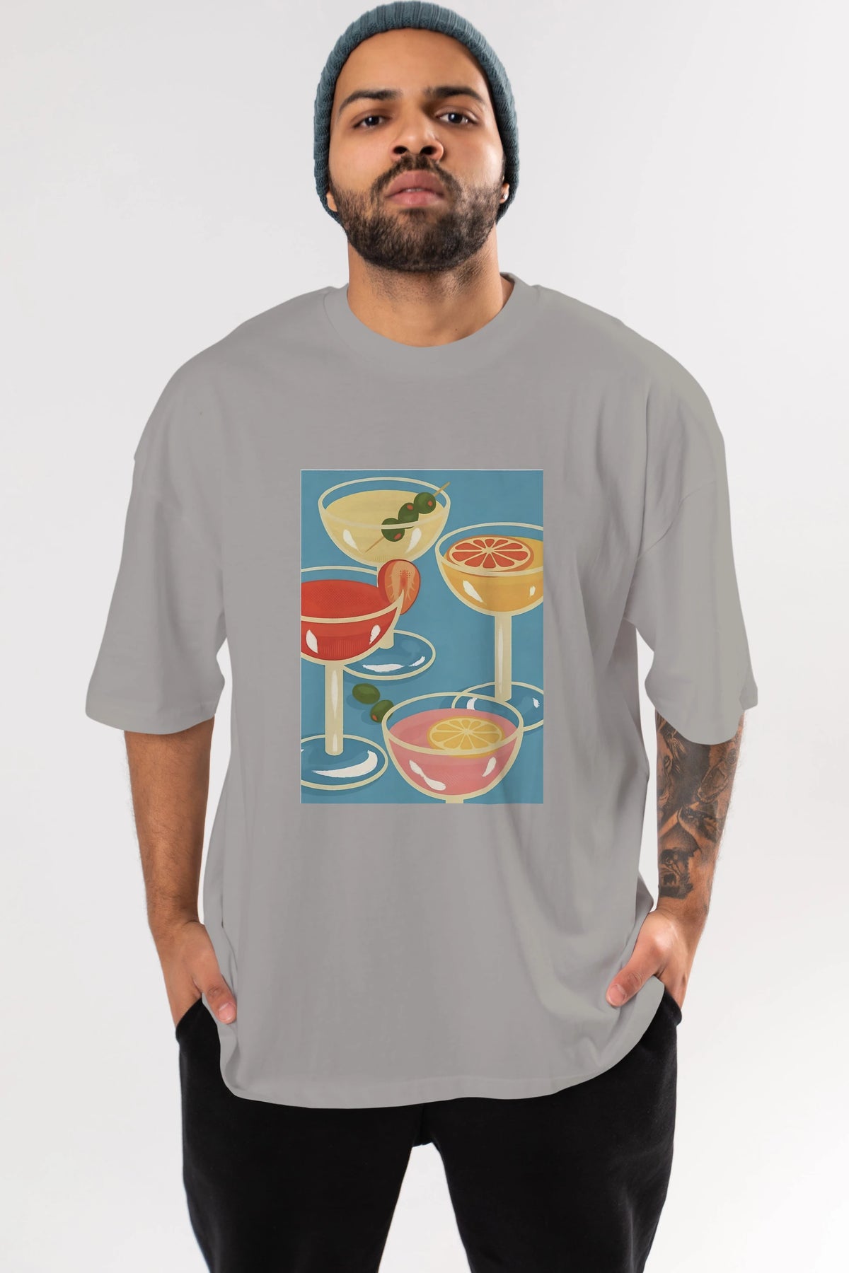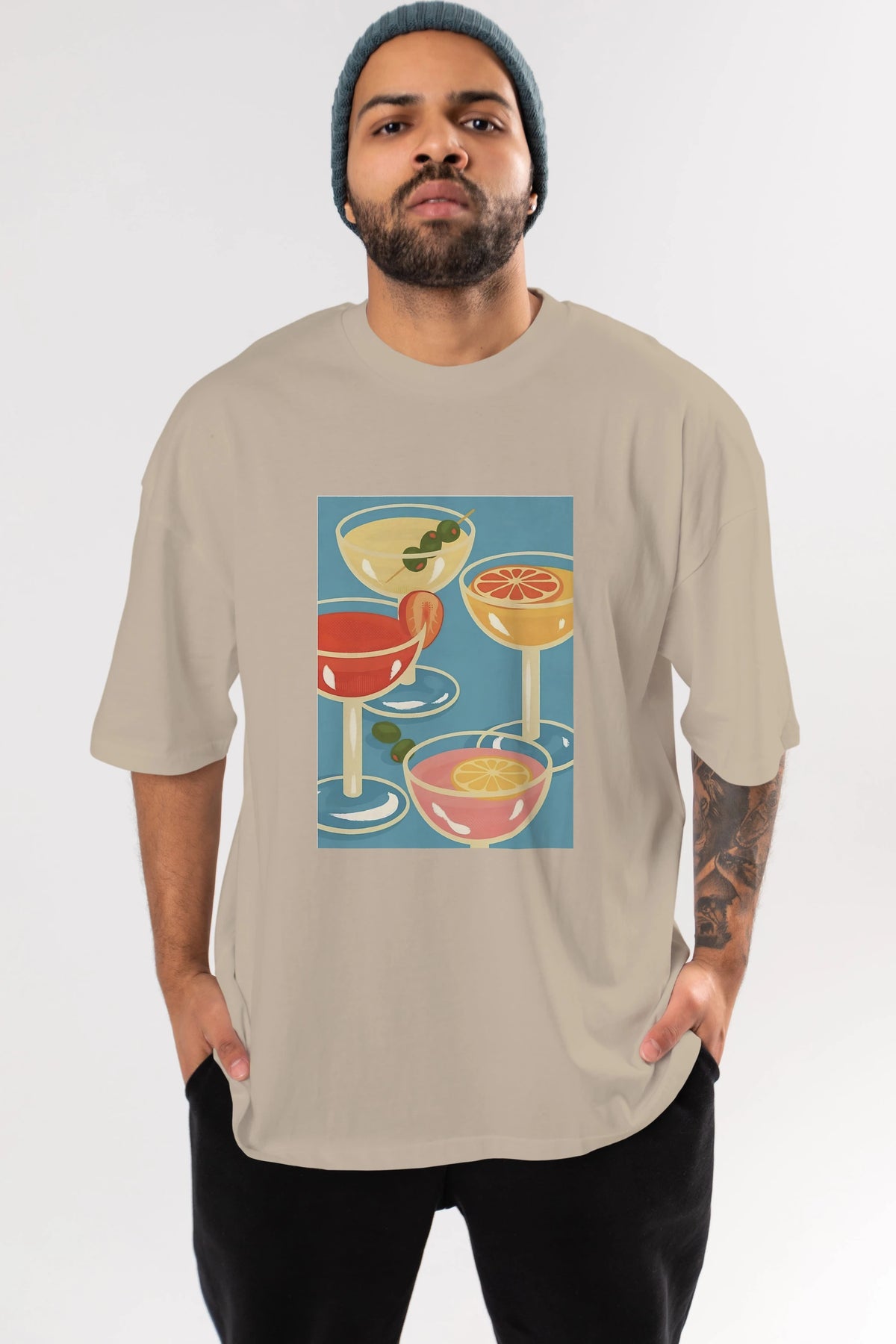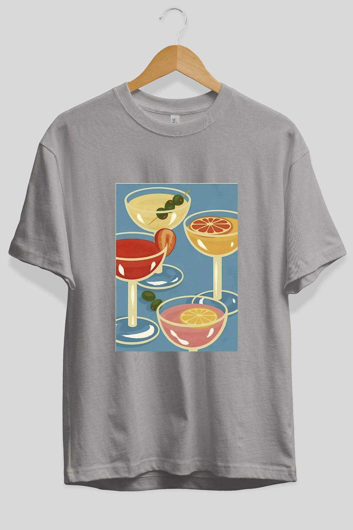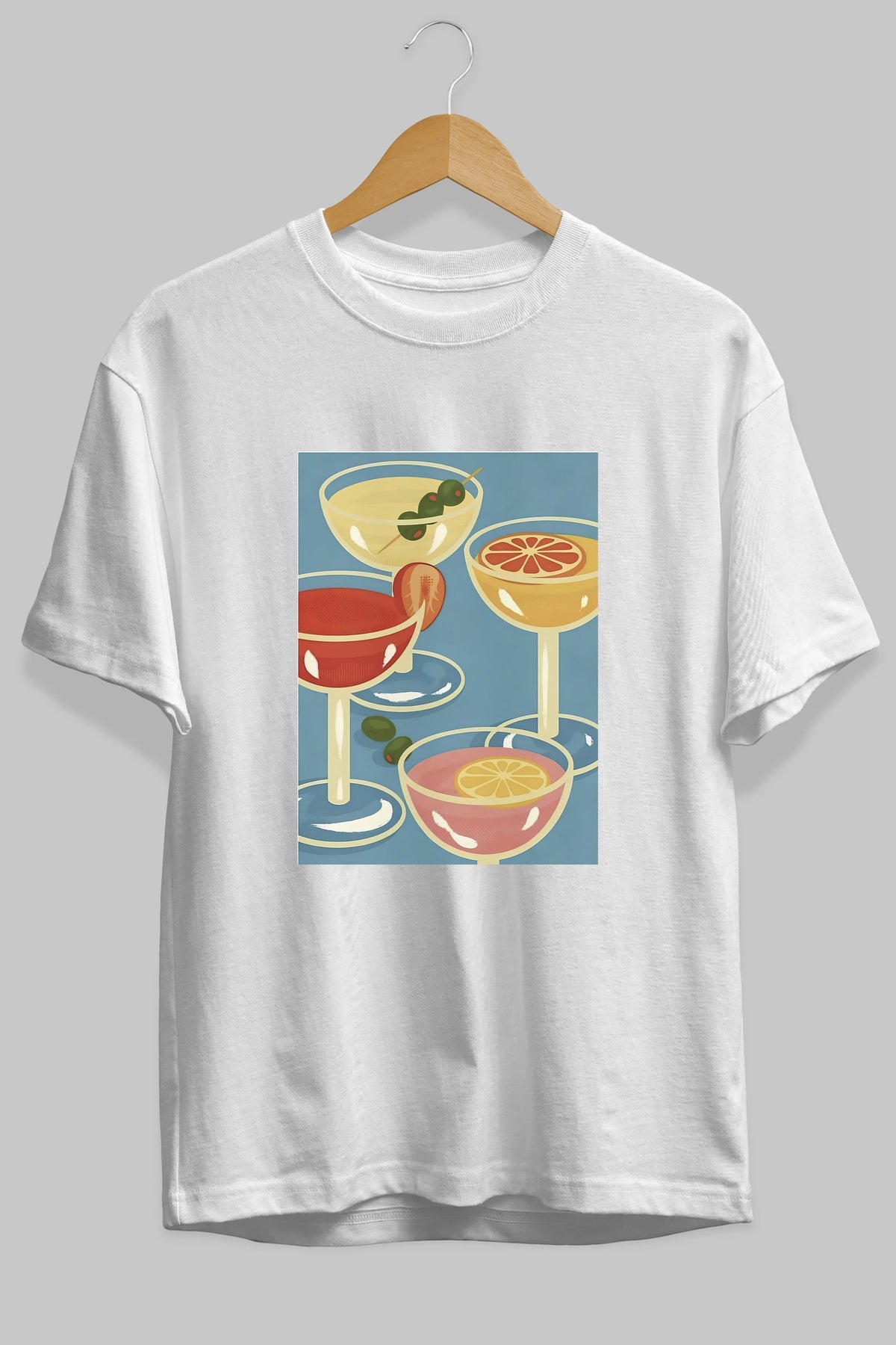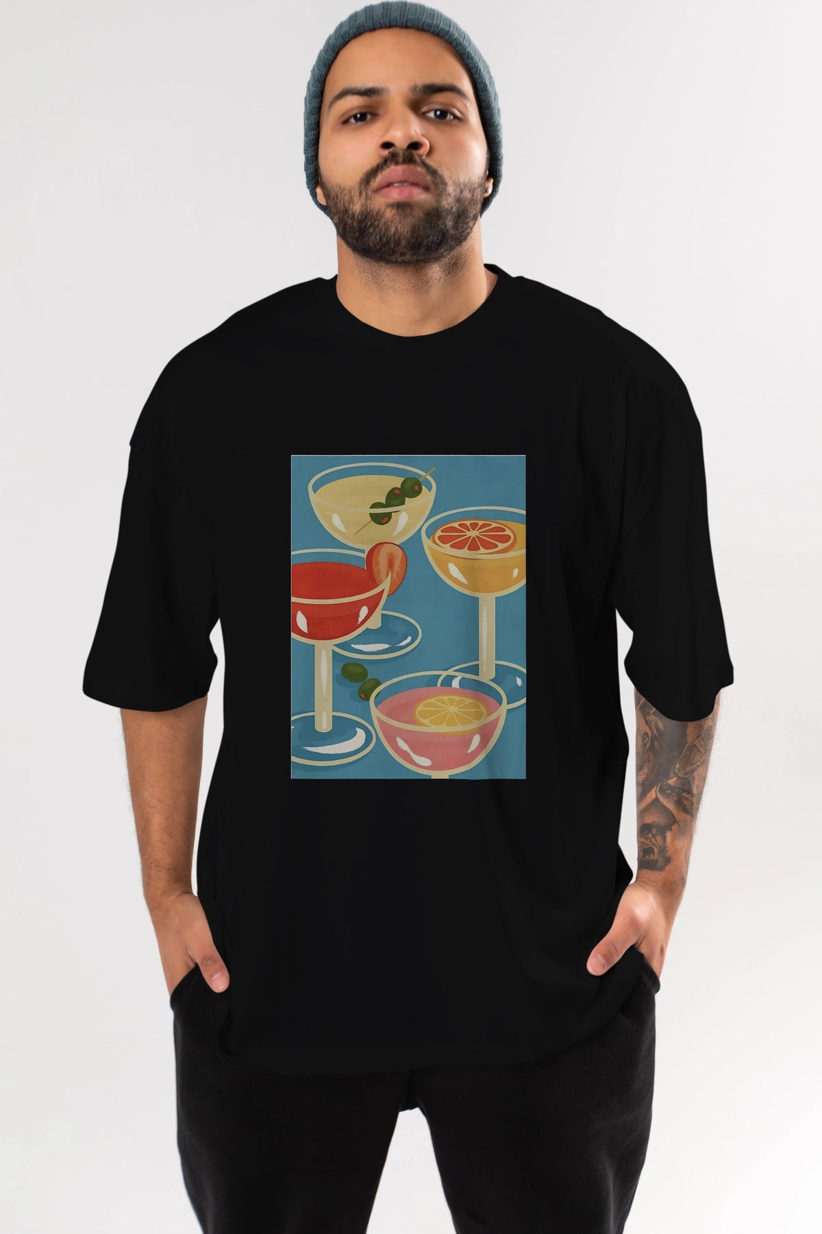 Cocktails Ön Baskılı Oversize t-shirt Erkek Kadın Unisex %100 Pamuk Bisiklet Yaka tişort