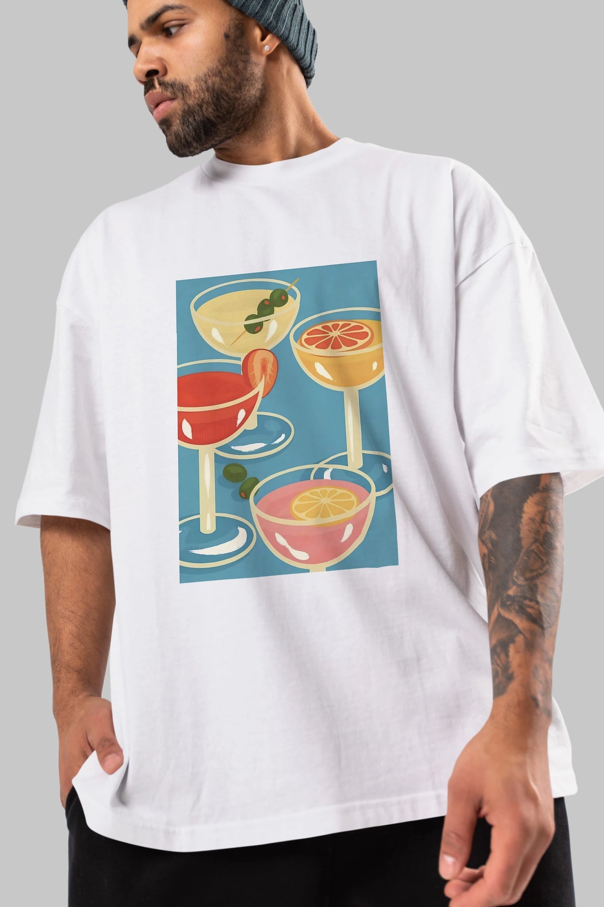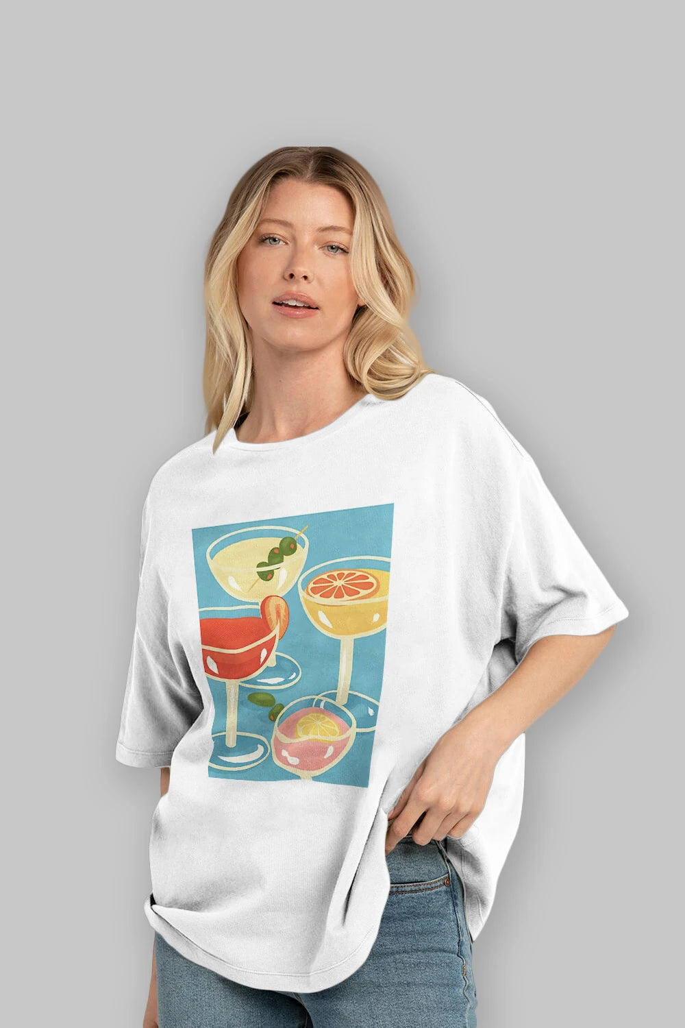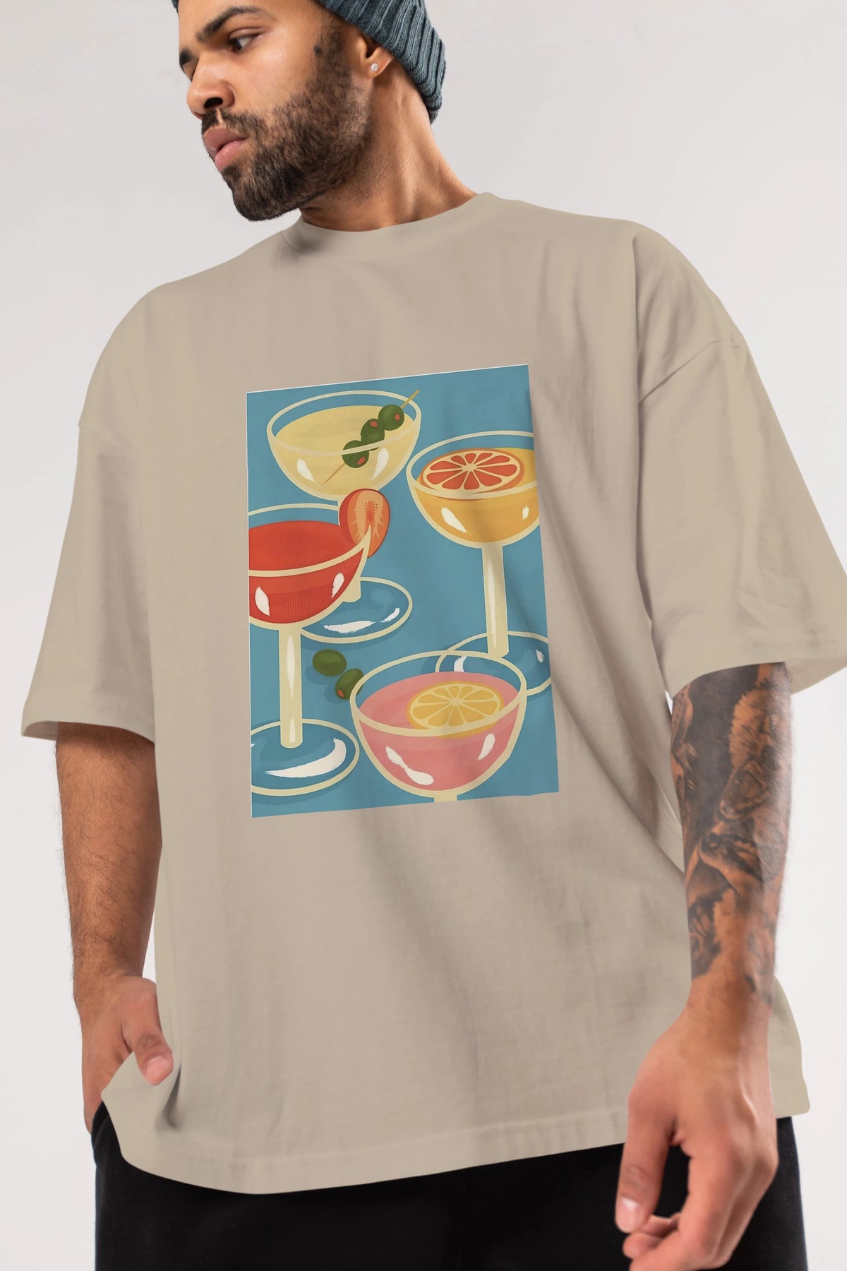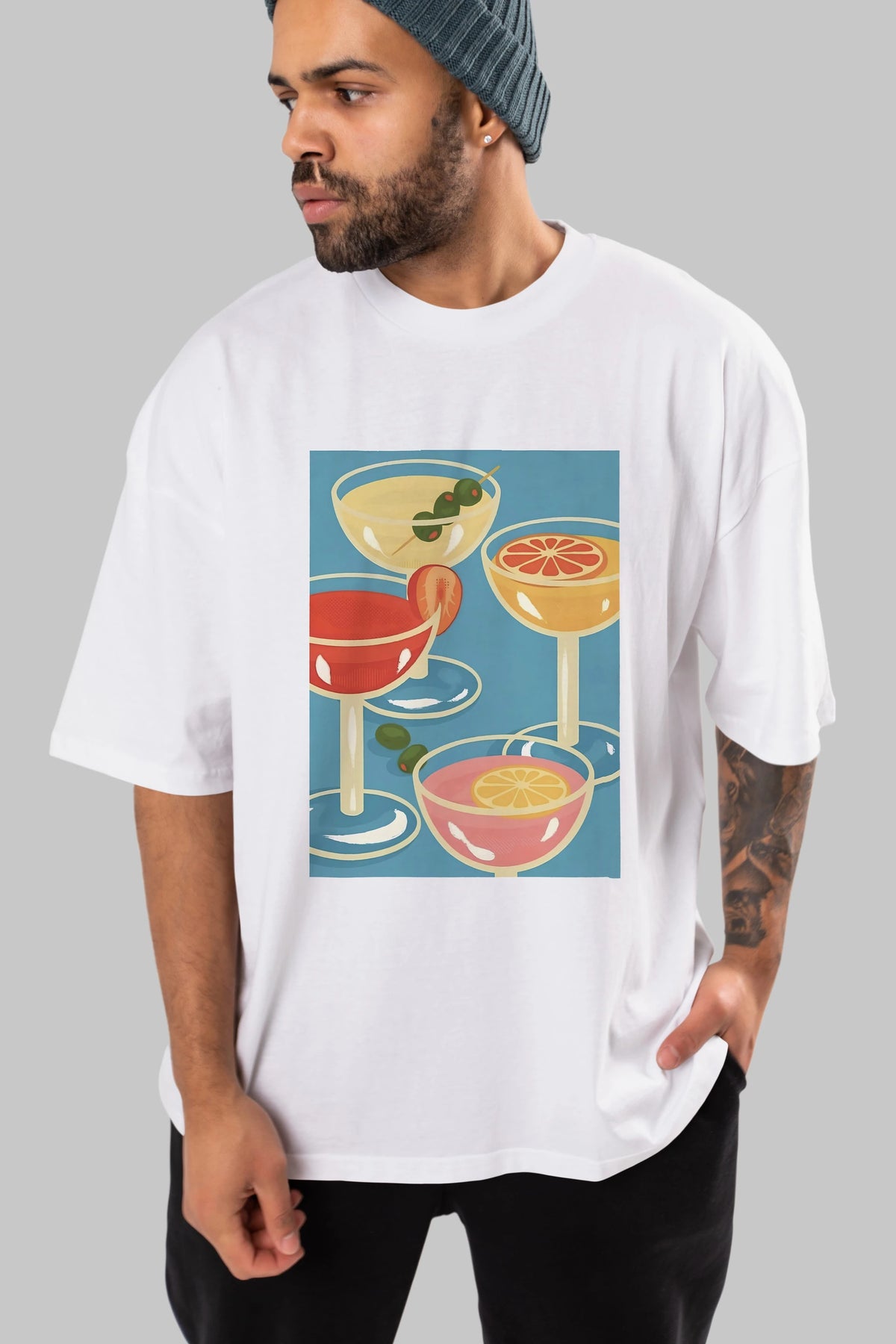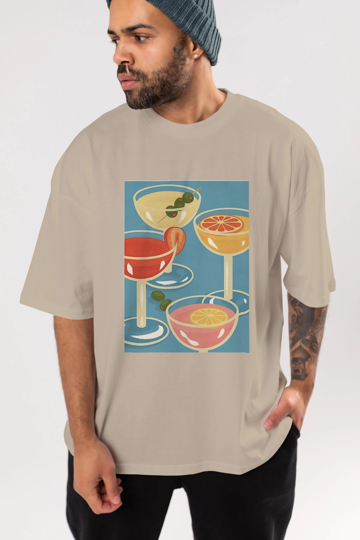 Cocktails Ön Baskılı Oversize t-shirt Erkek Kadın Unisex %100 Pamuk Bisiklet Yaka tişort
