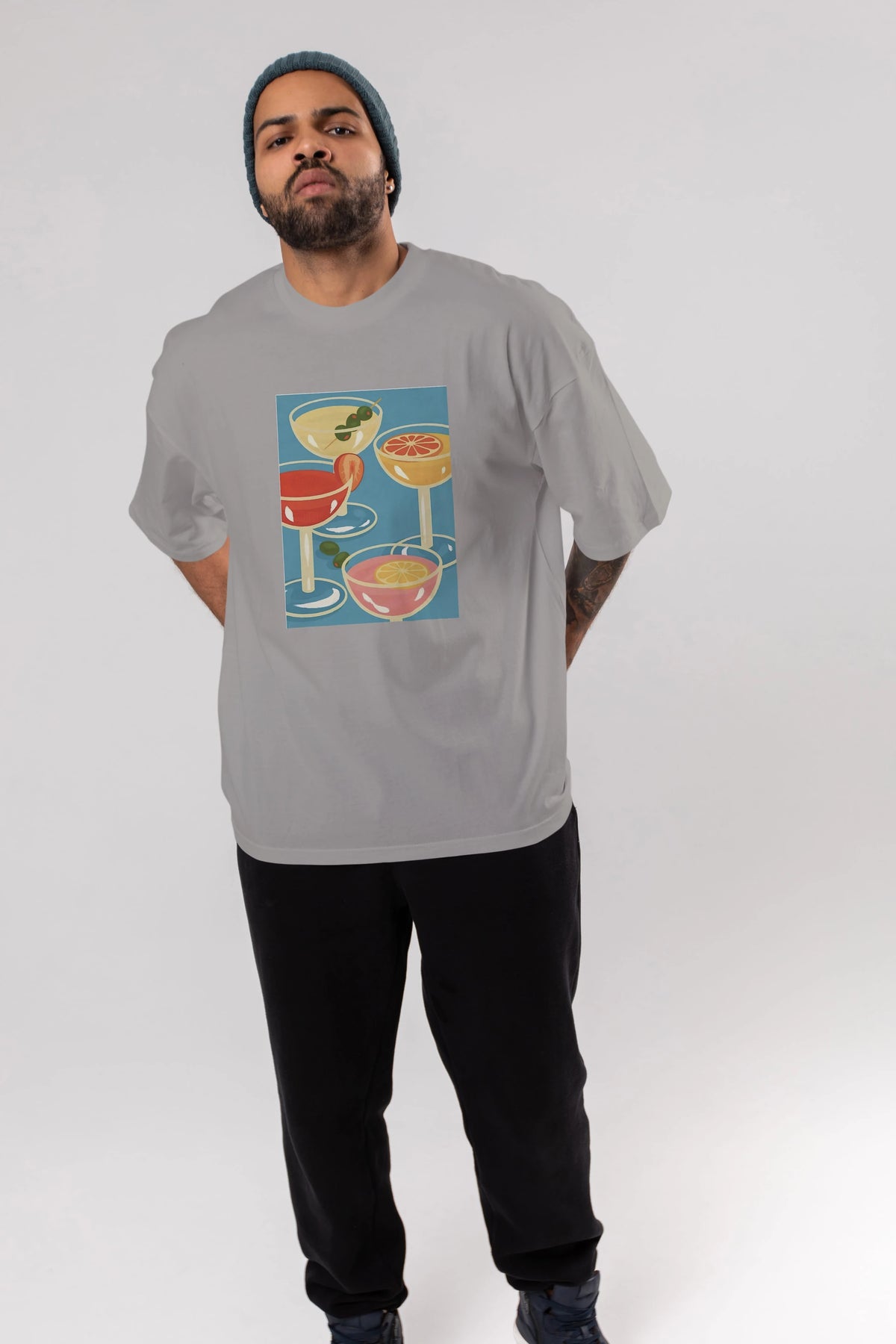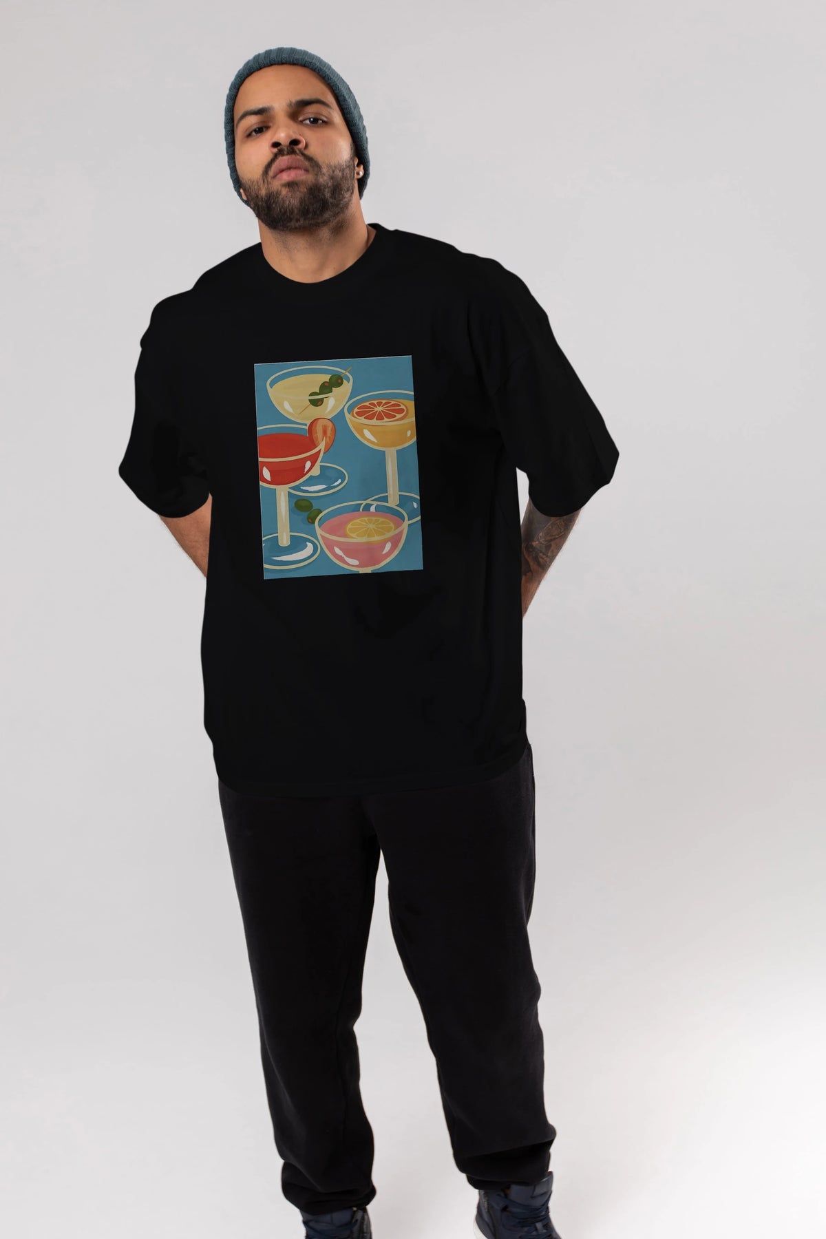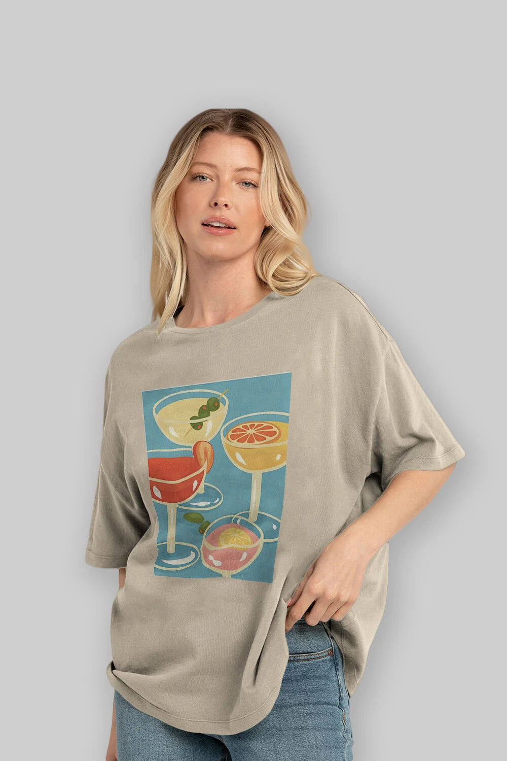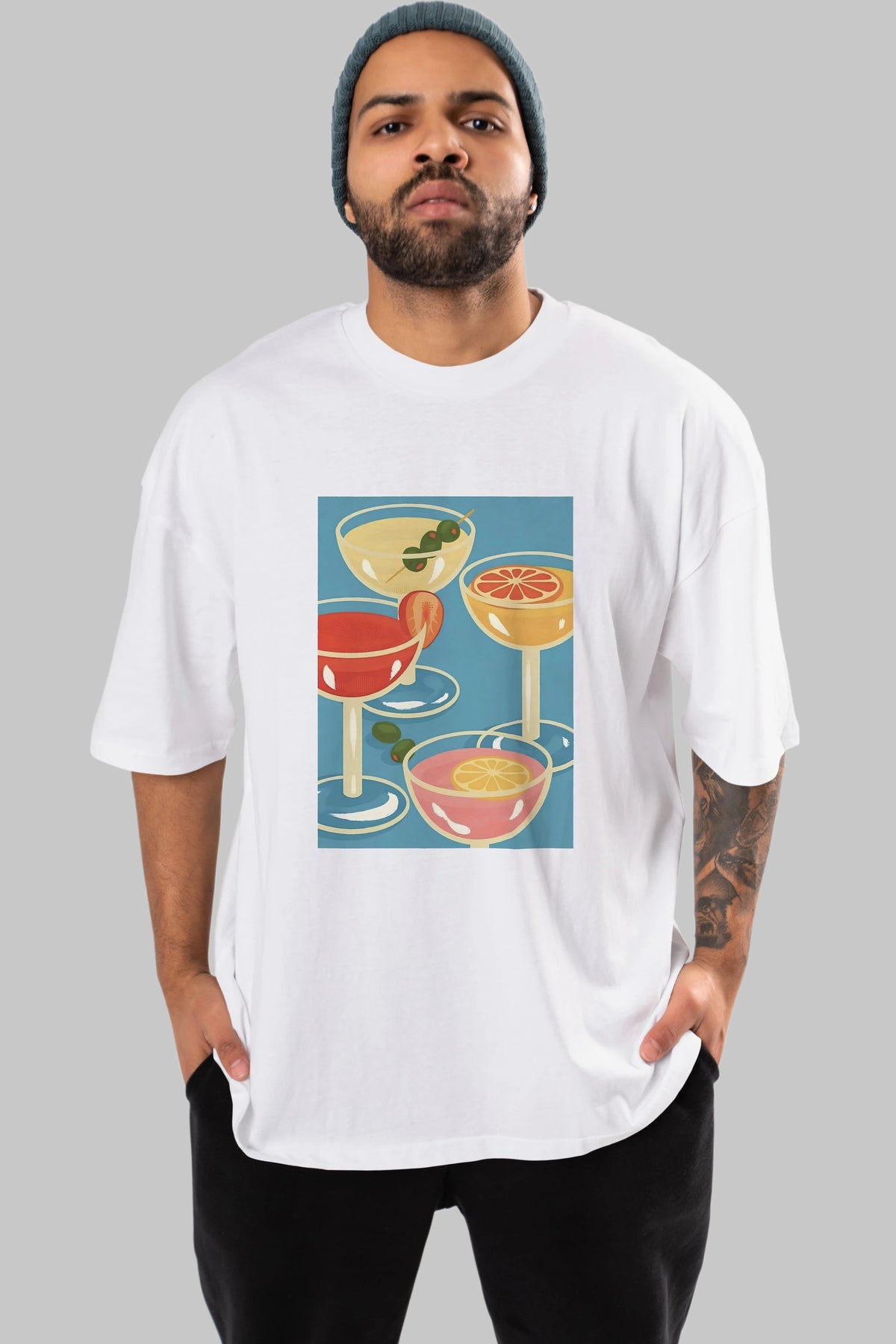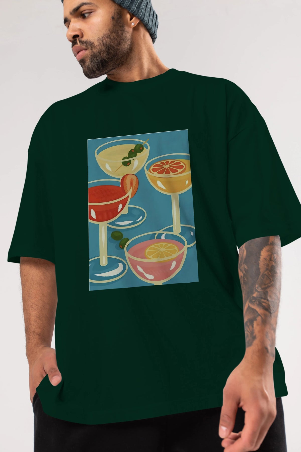 Cocktails Ön Baskılı Oversize t-shirt Erkek Kadın Unisex %100 Pamuk Bisiklet Yaka tişort
