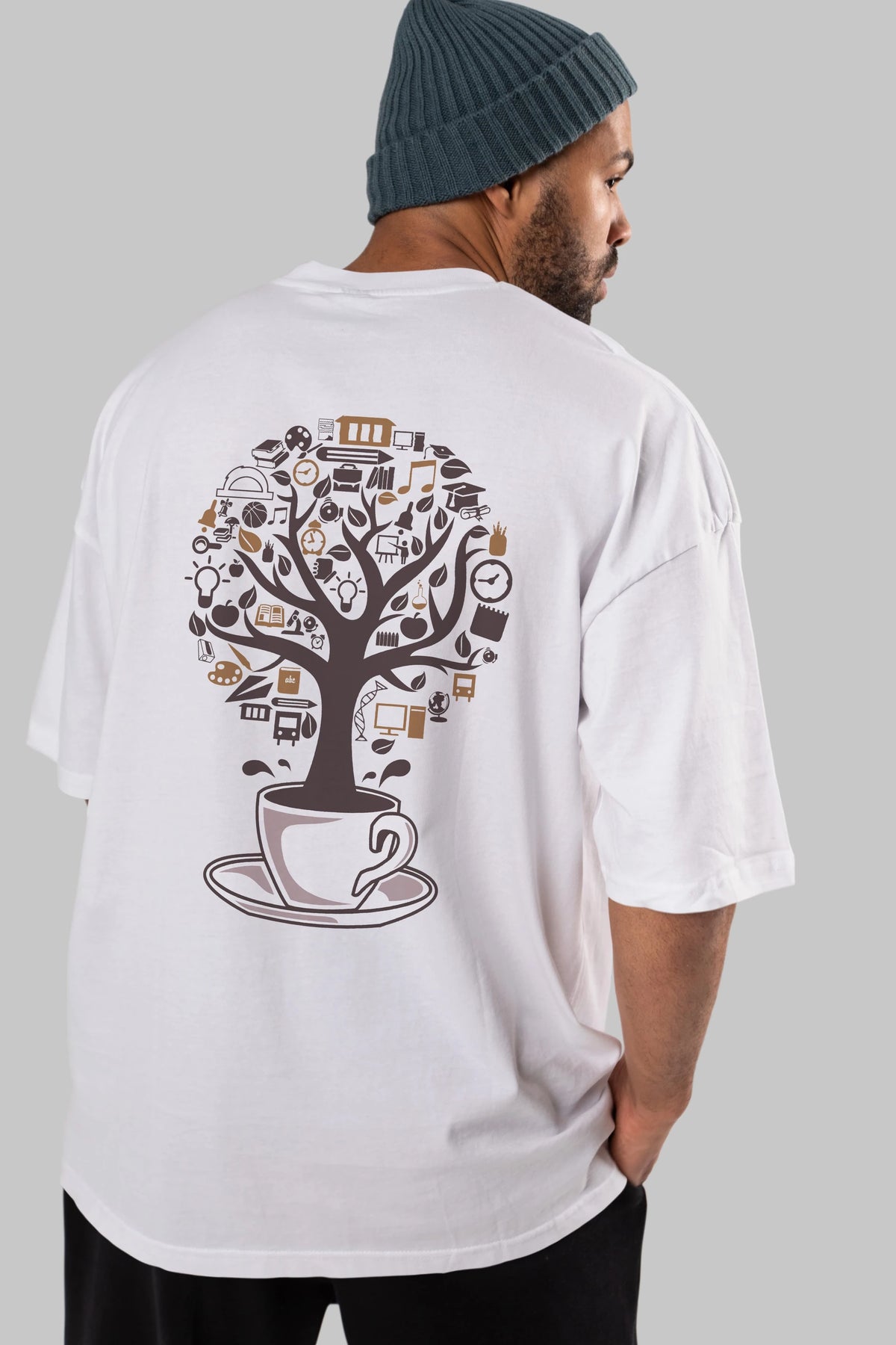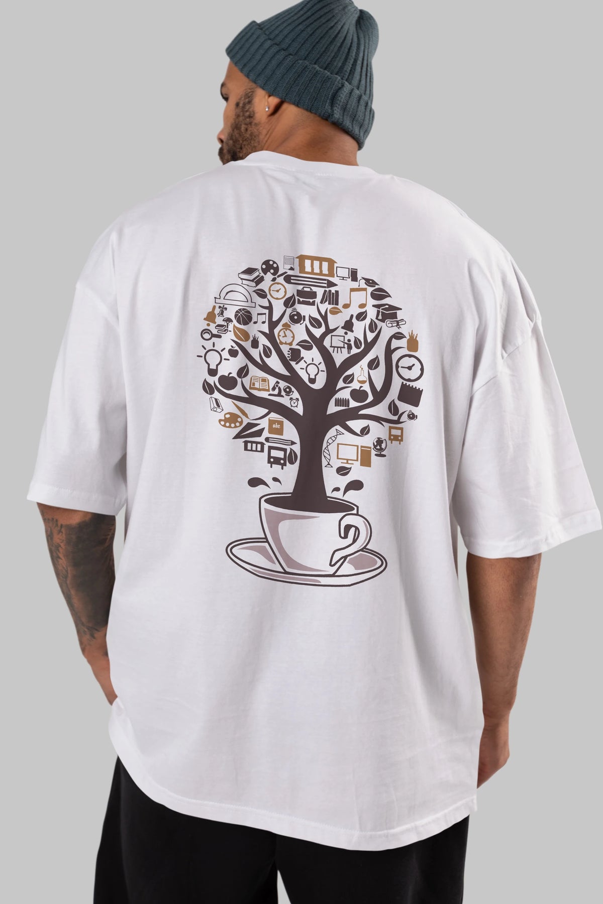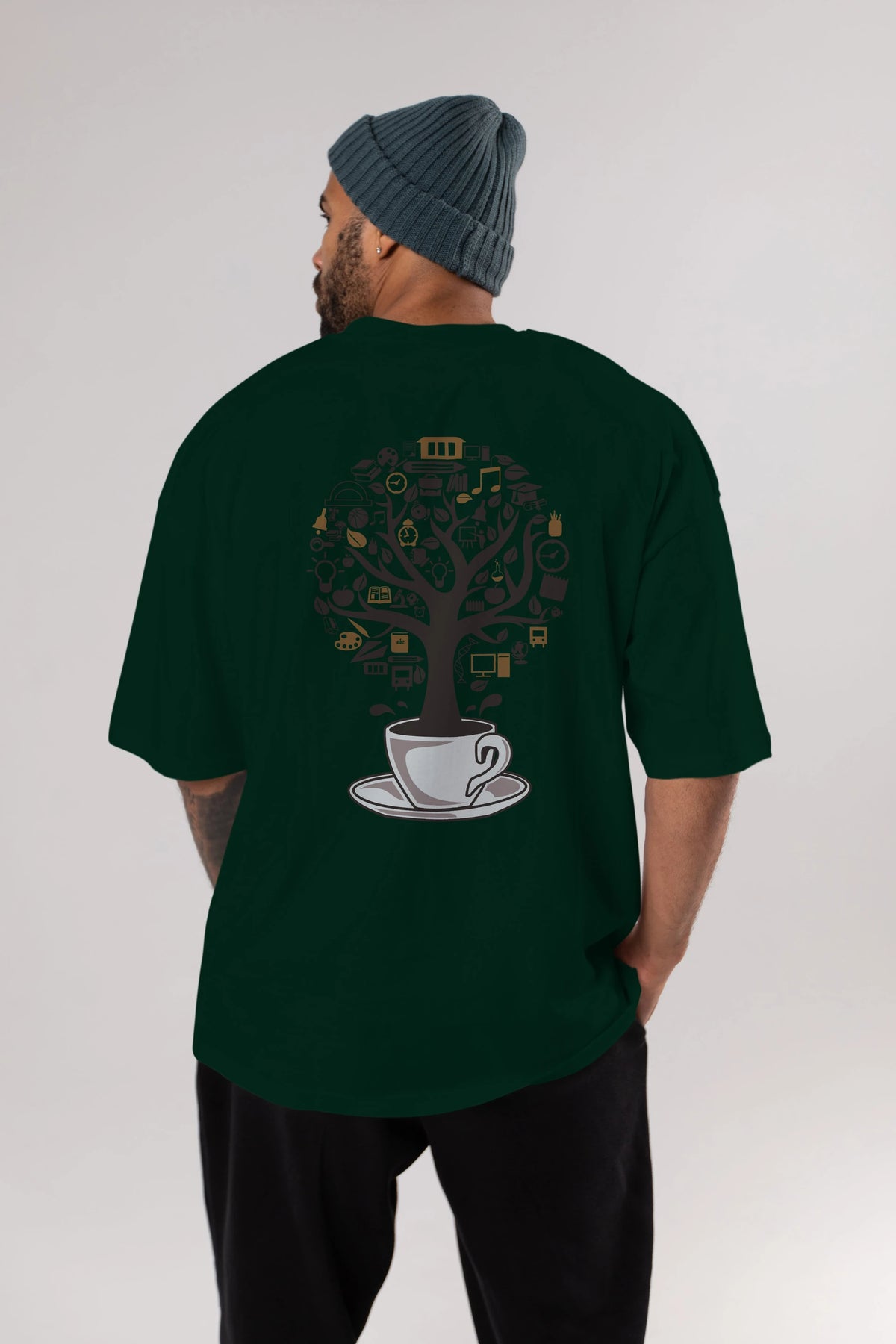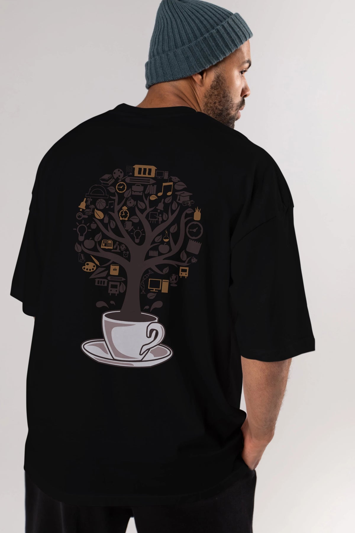 Coffee Tree Arka Baskılı Oversize t-shirt %100 pamuk Erkek Kadın Unisex