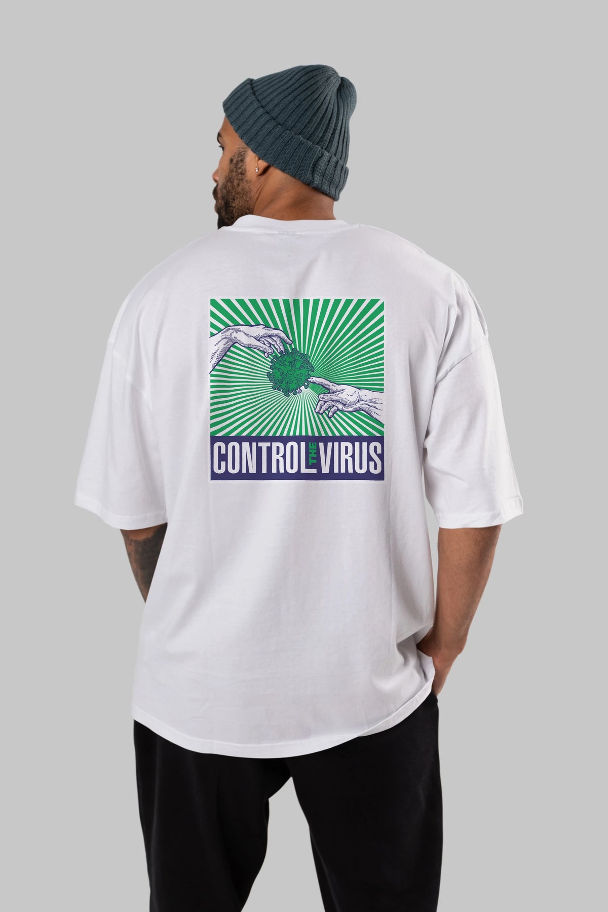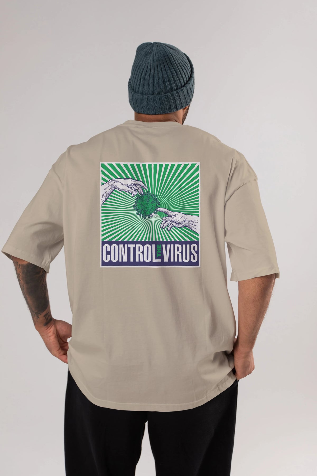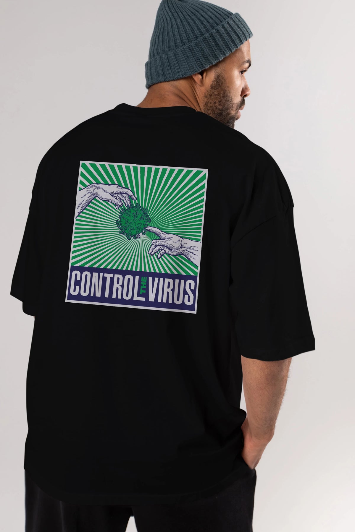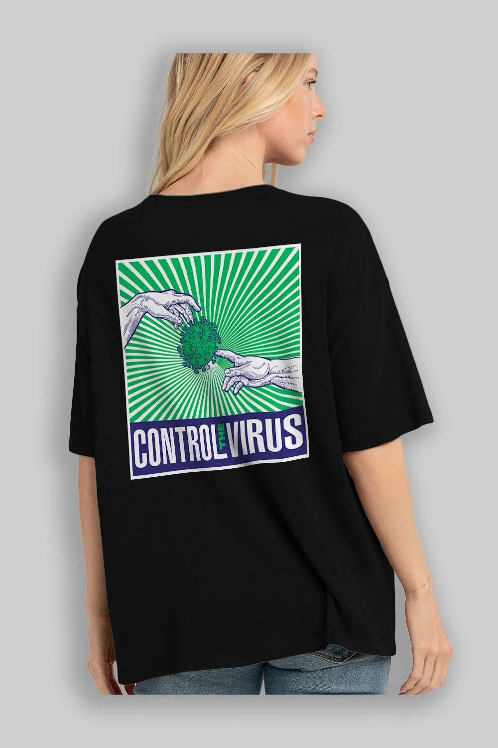 Control The Virus Arka Baskılı Oversize t-shirt Erkek Kadın Unisex