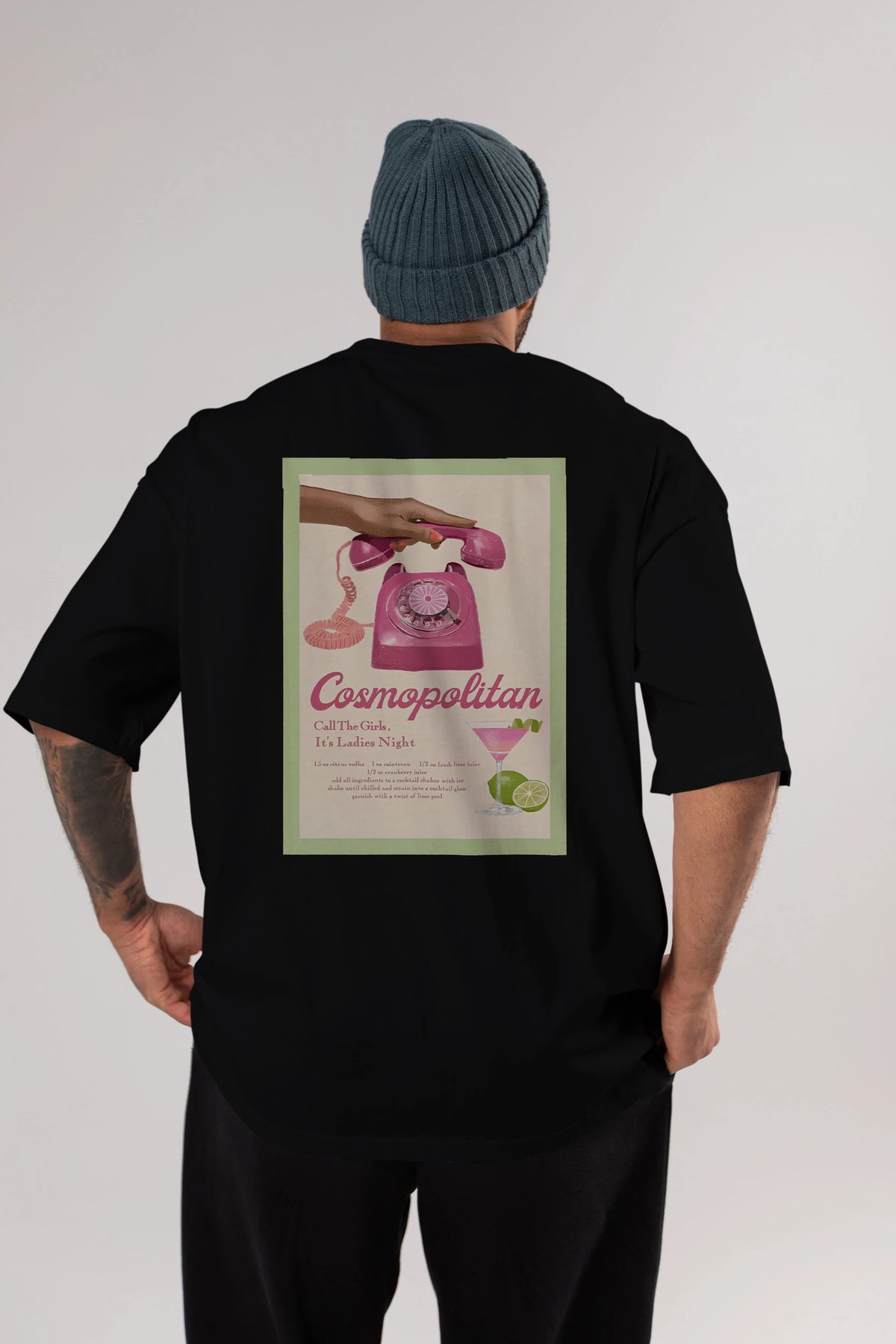 Cosmopolitan 5 Arka Baskılı Oversize t-shirt Erkek Kadın Unisex %100 Pamuk Bisiklet Yaka tişort