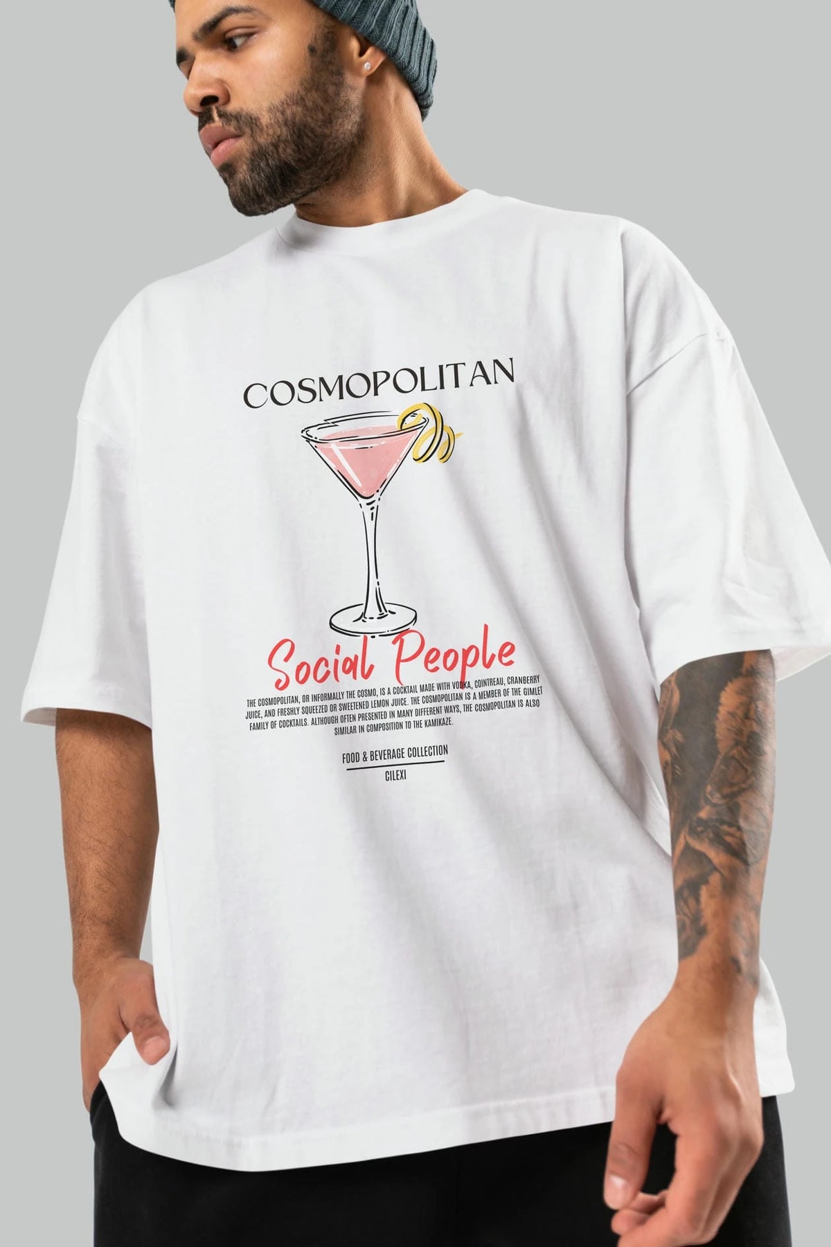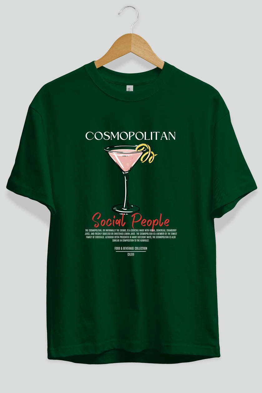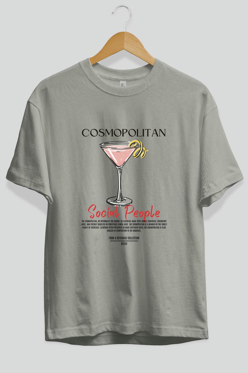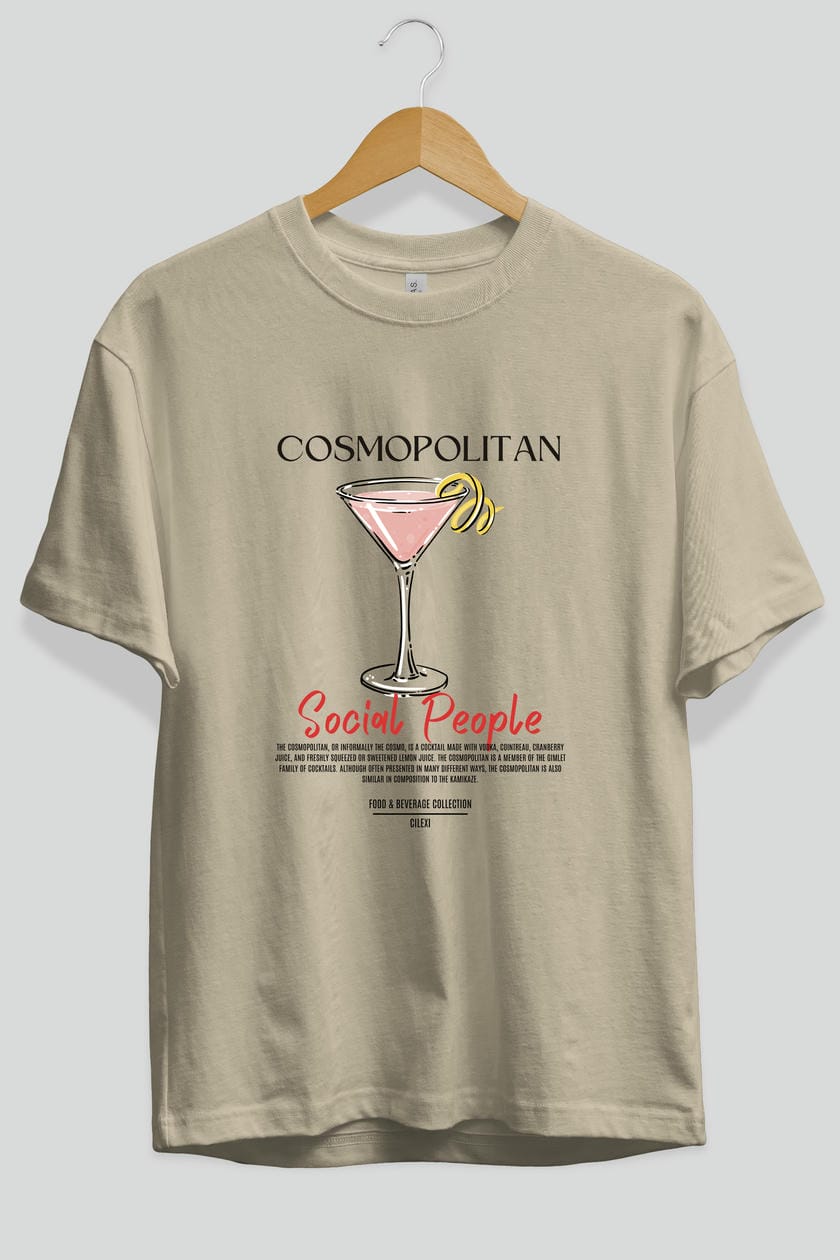 Cosmopolıtan Kokteyl Serisi ön Baskılı Oversize t-shirt Erkek Kadın %100 Pamuk Bisiklet Yaka tişort