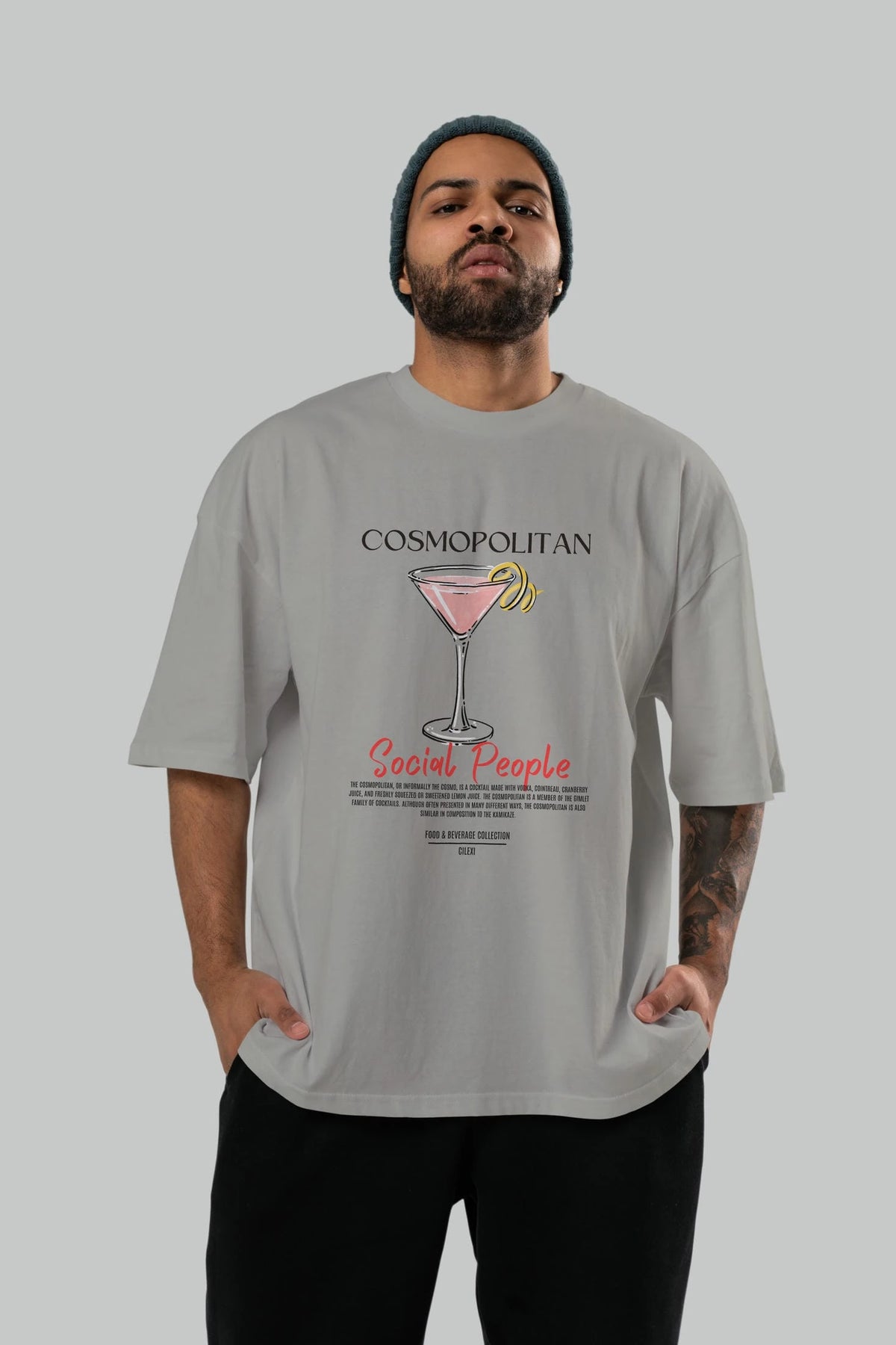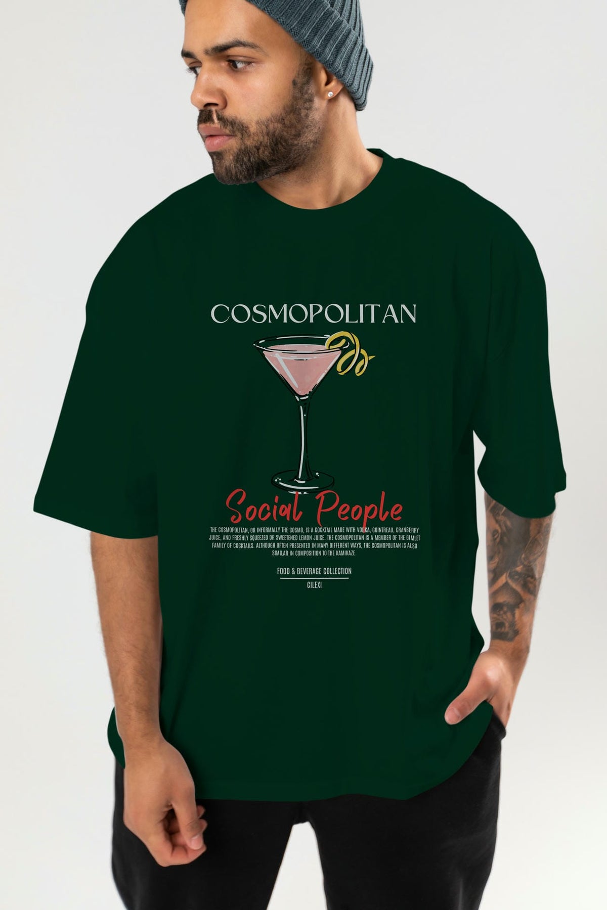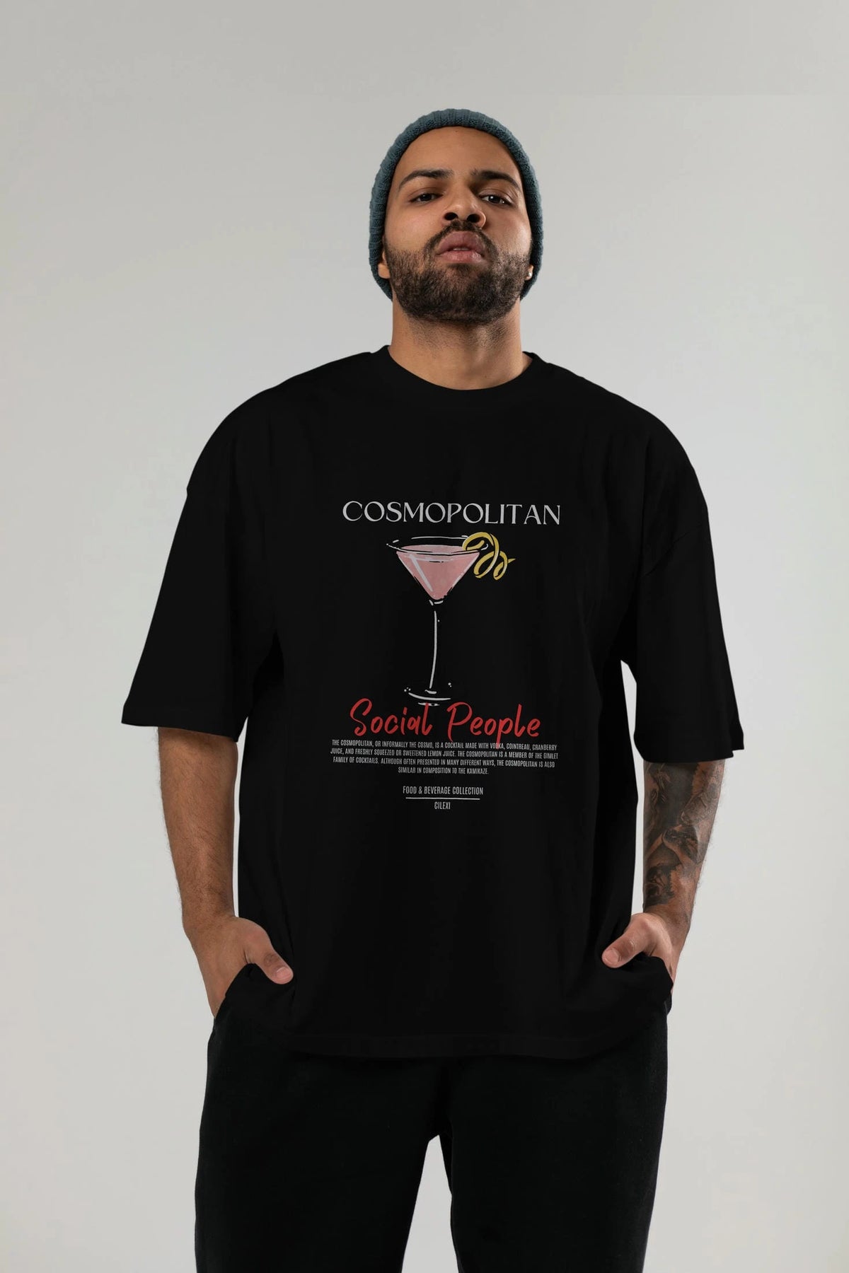 Cosmopolıtan Kokteyl Serisi ön Baskılı Oversize t-shirt Erkek Kadın %100 Pamuk Bisiklet Yaka tişort