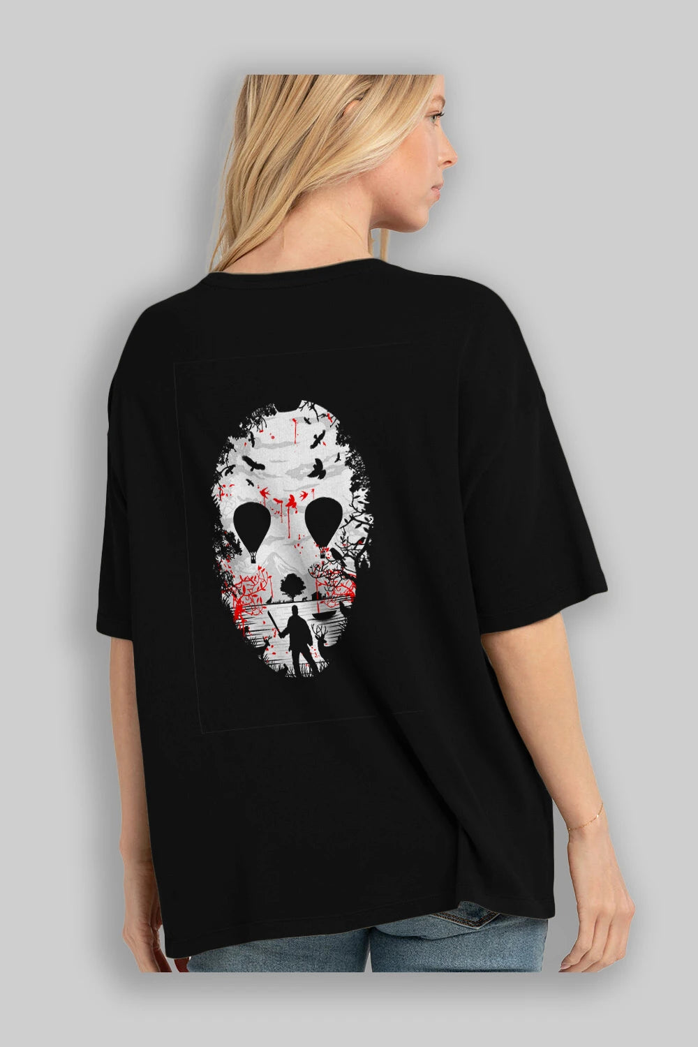 Crystal Lake Arka Baskılı Oversize t-shirt %100 pamuk Erkek Kadın Unisex