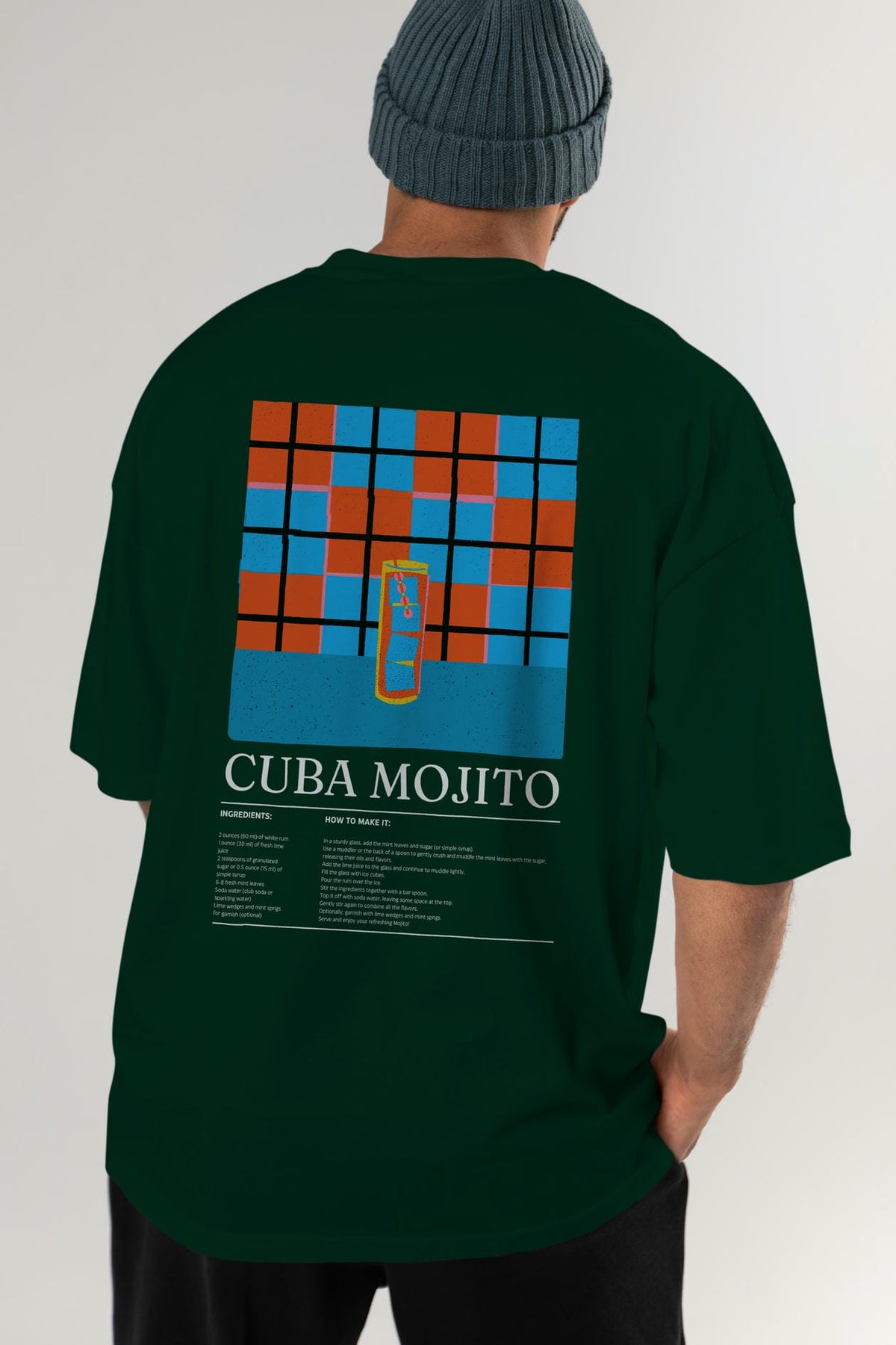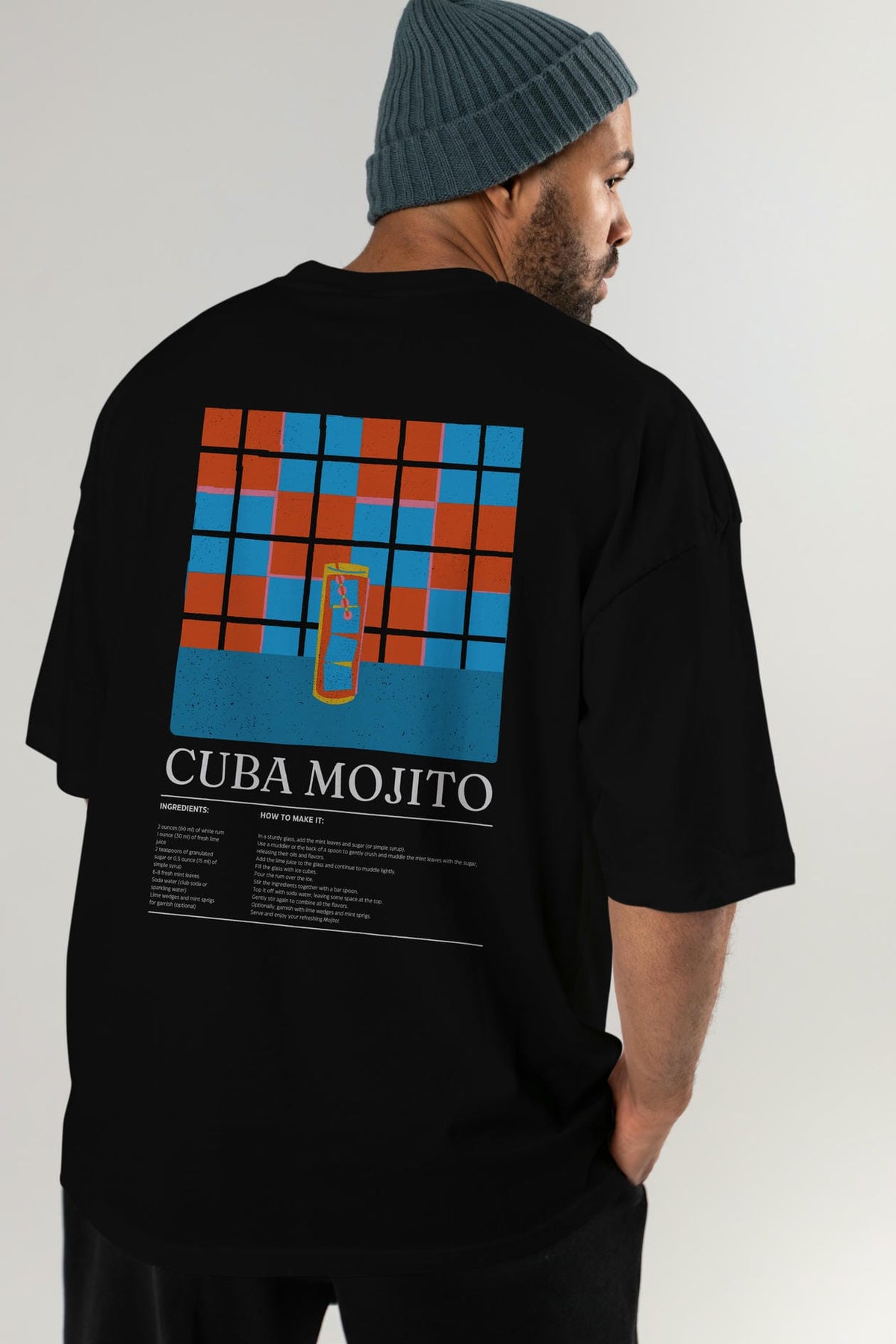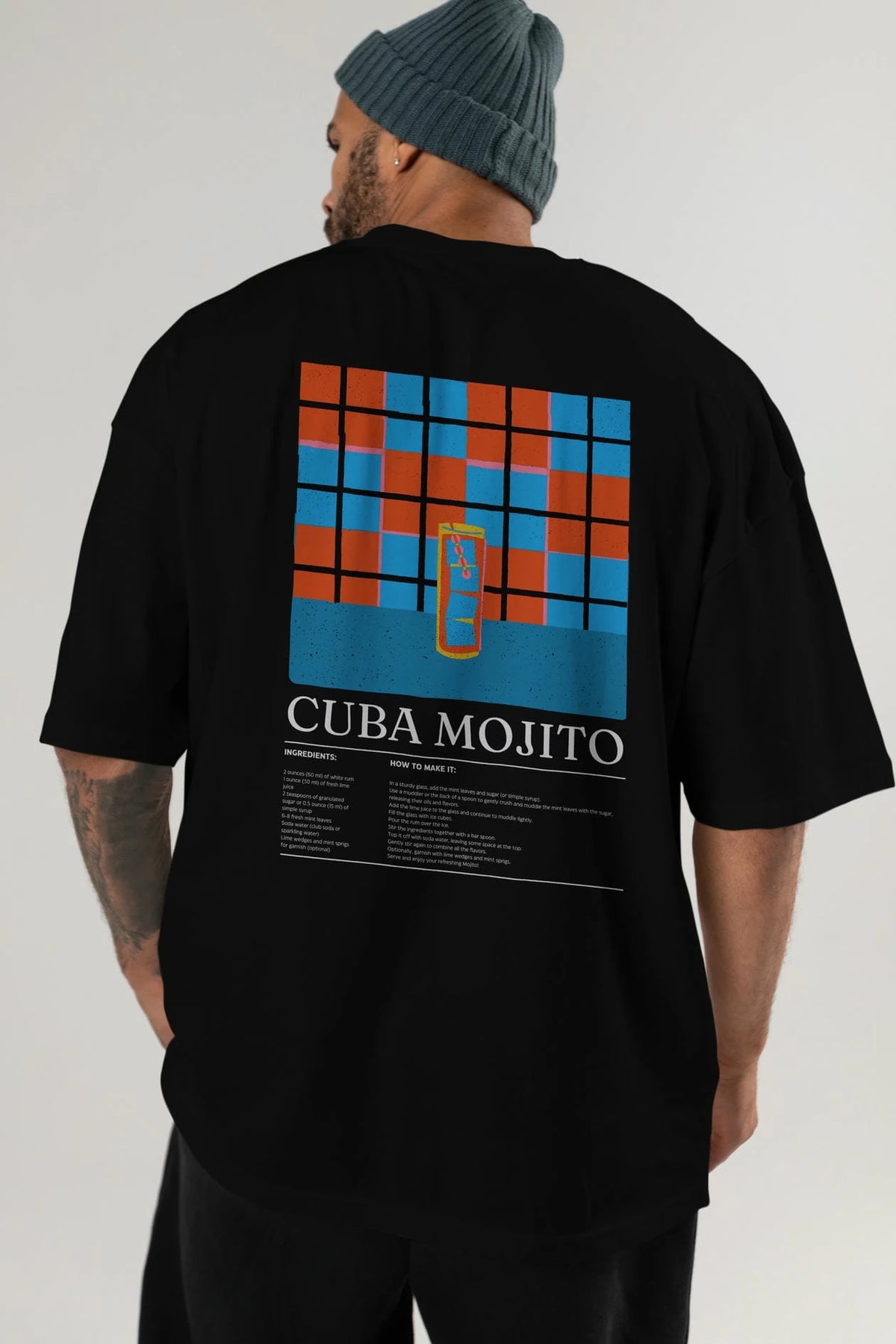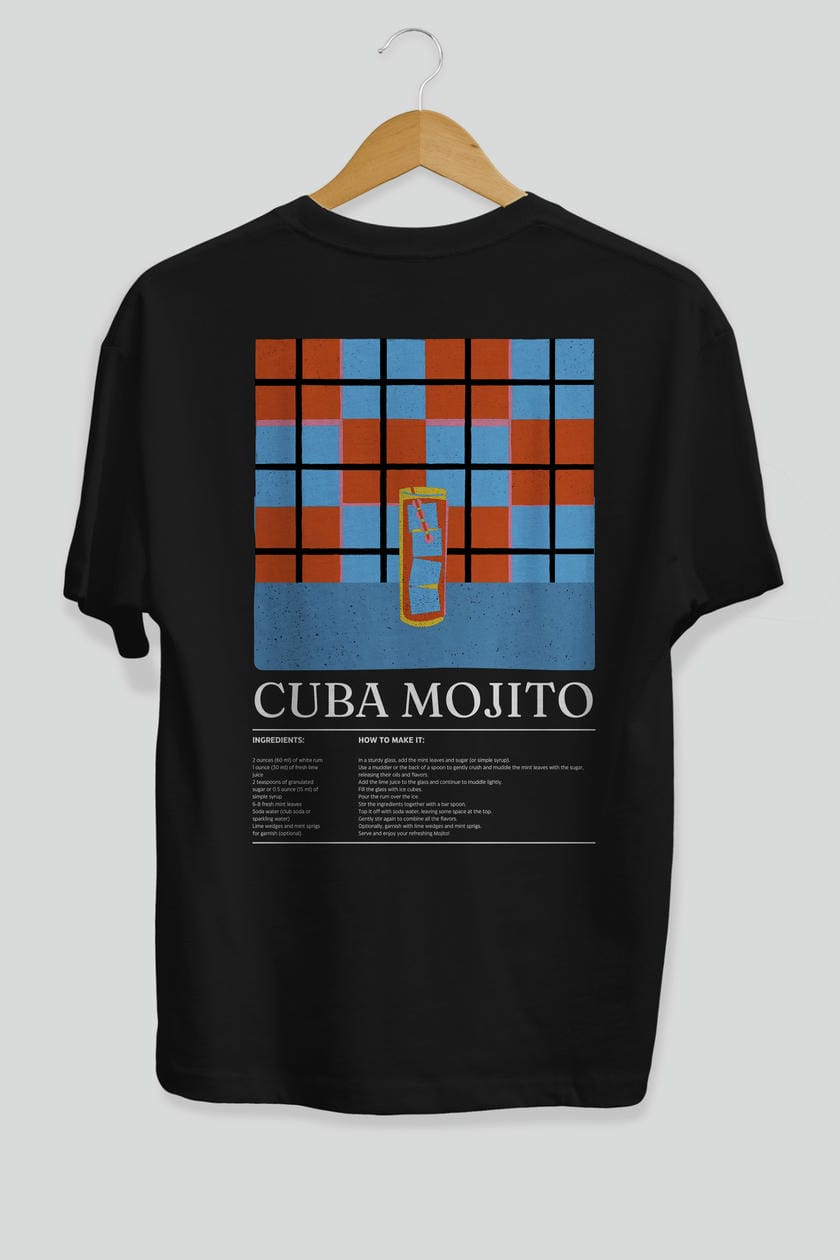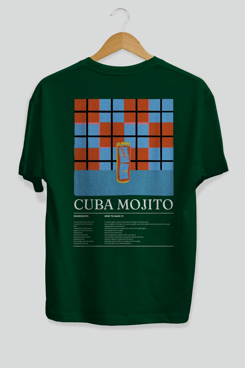 Cuba Mojıto Kokteyl Serisi Arka Baskılı Oversize t-shirt Erkek Kadın %100 Pamuk Bisiklet Yaka tişort