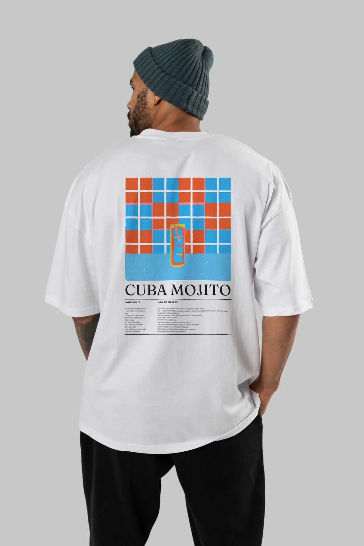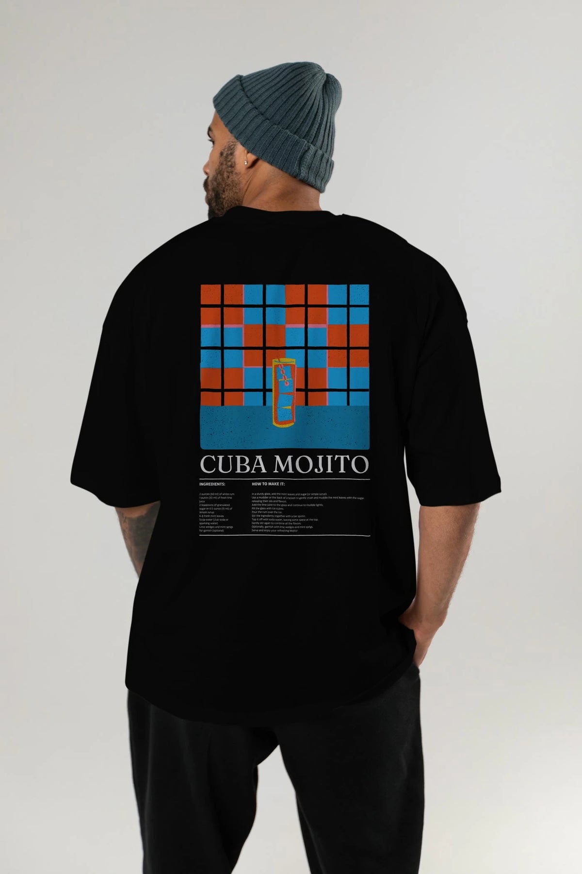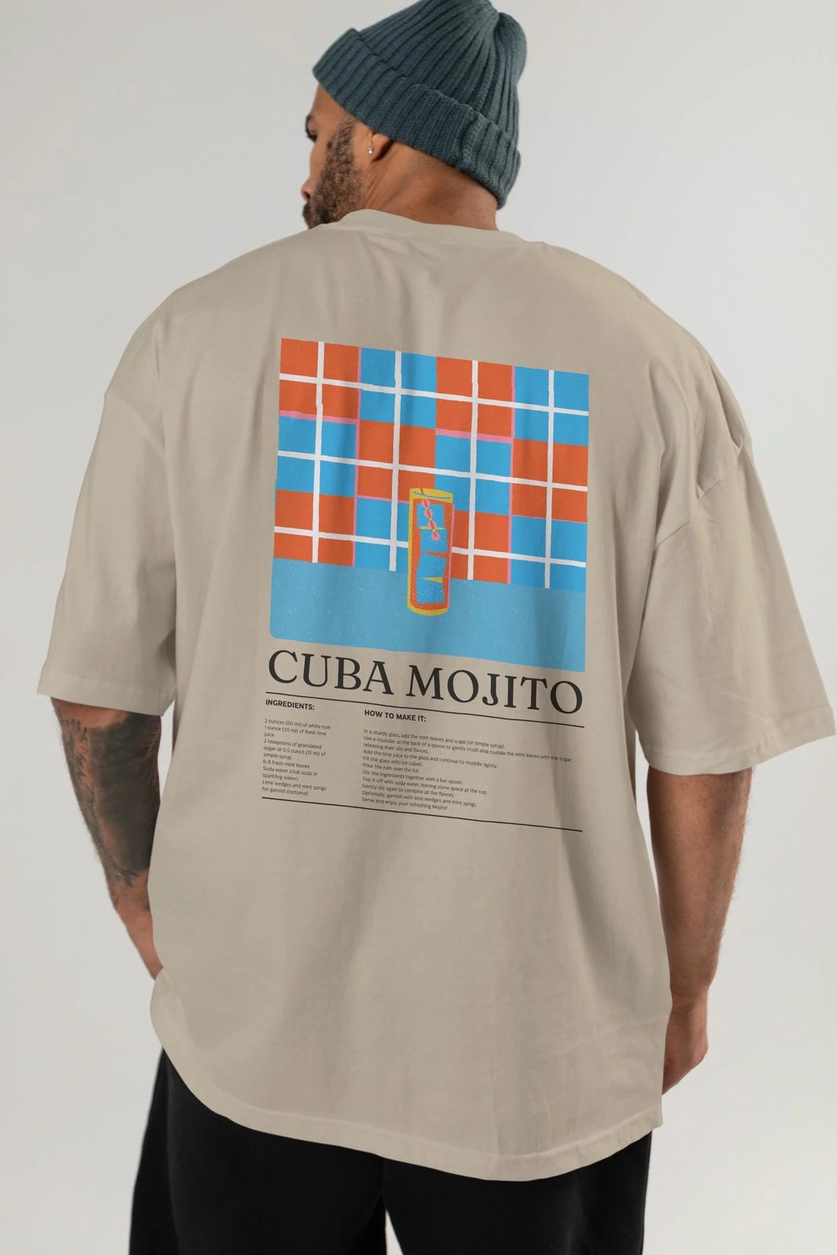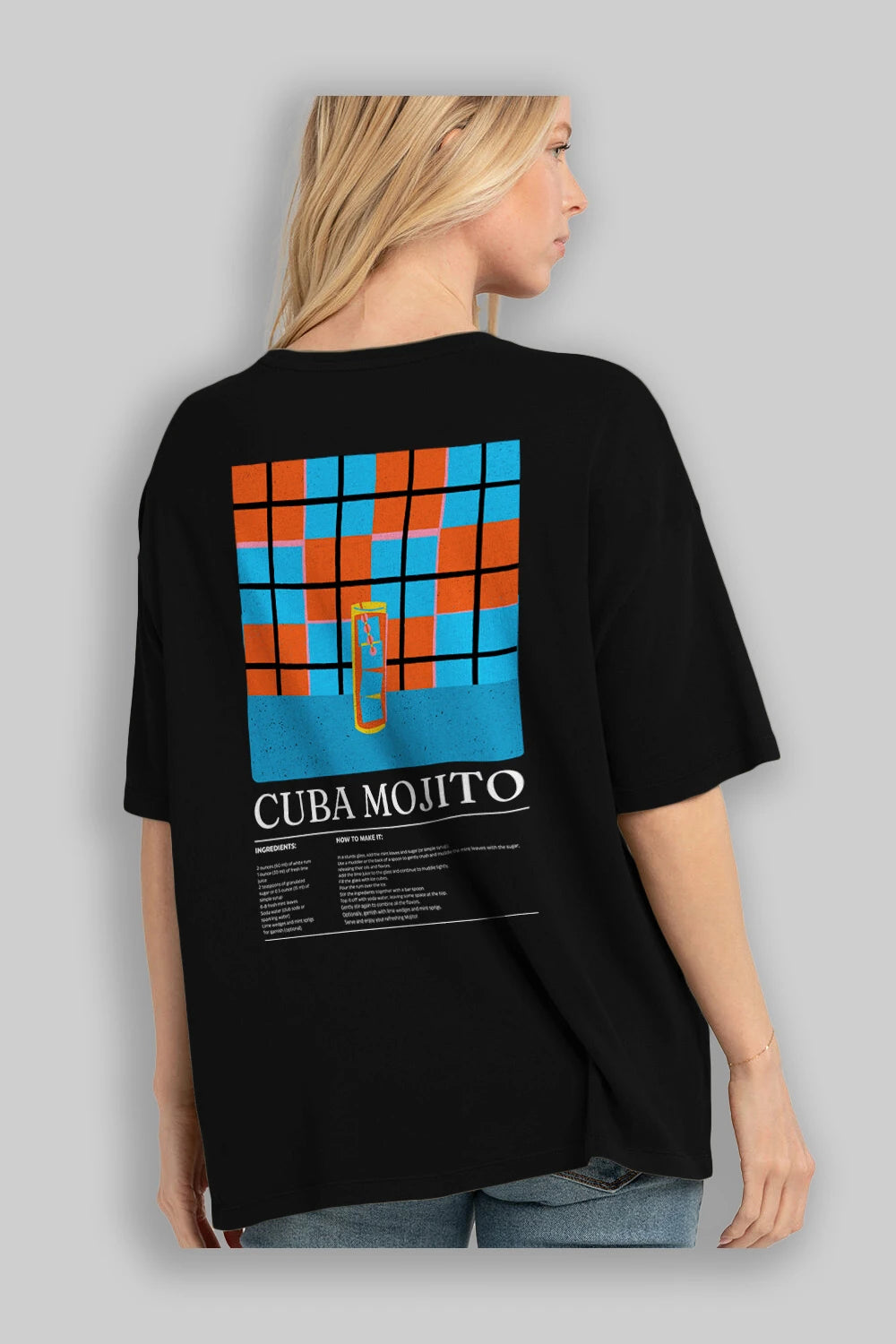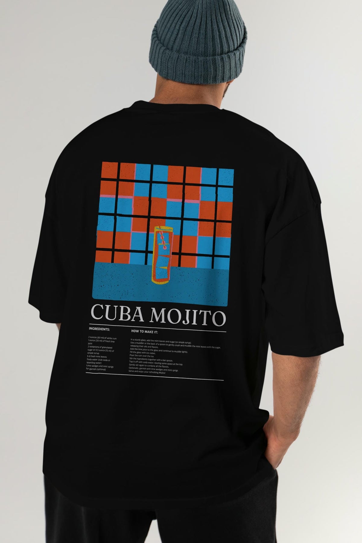 Cuba Mojıto Kokteyl Serisi Arka Baskılı Oversize t-shirt Erkek Kadın %100 Pamuk Bisiklet Yaka tişort