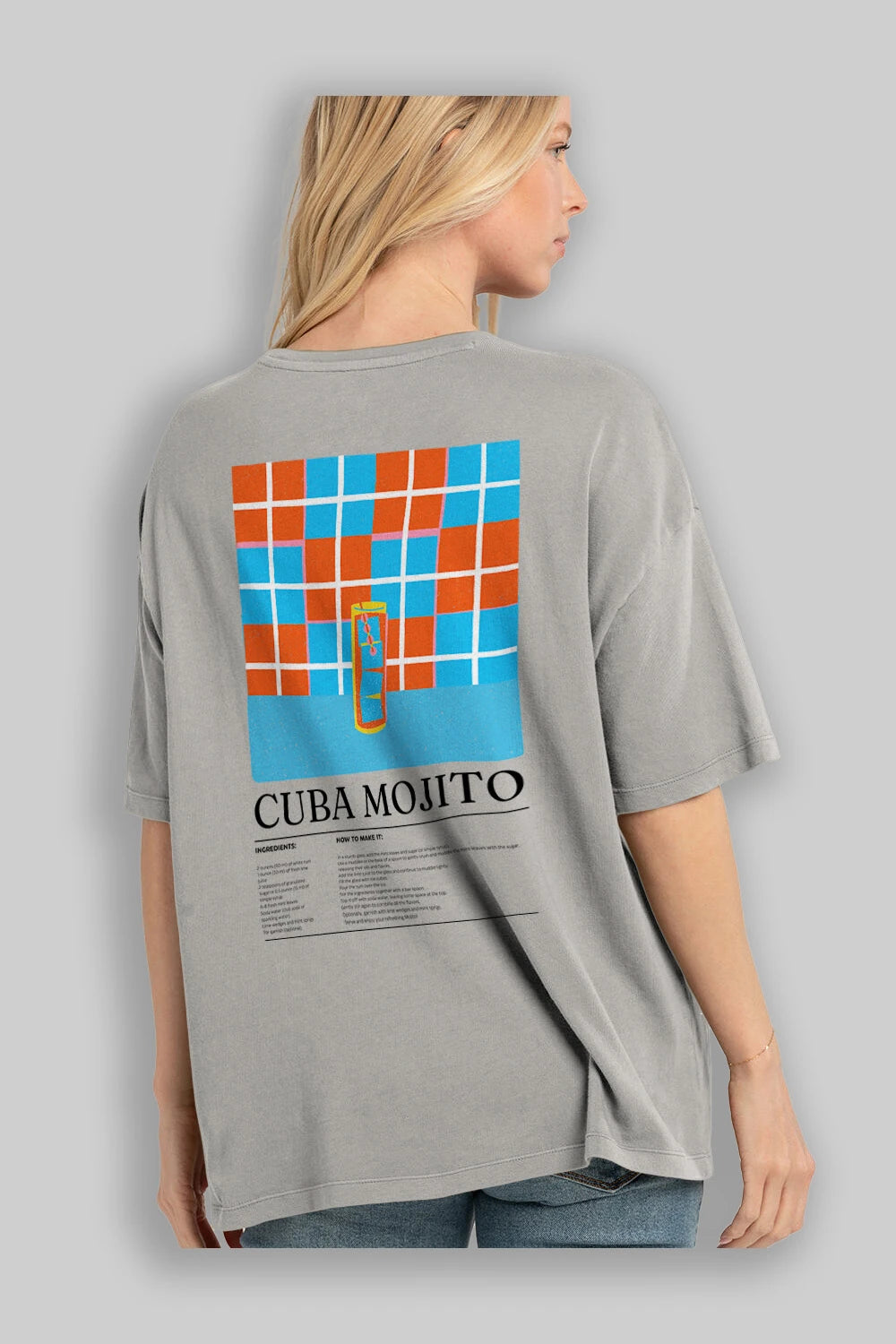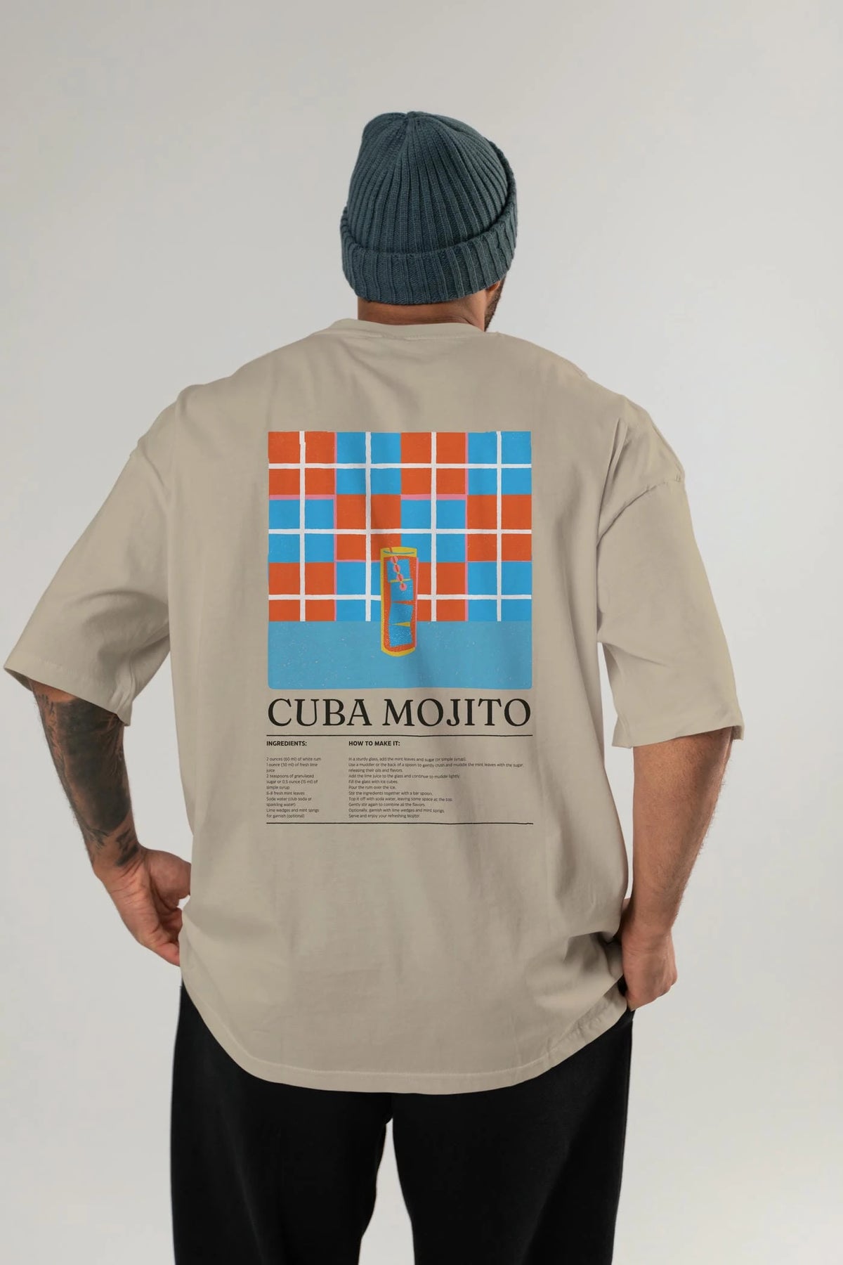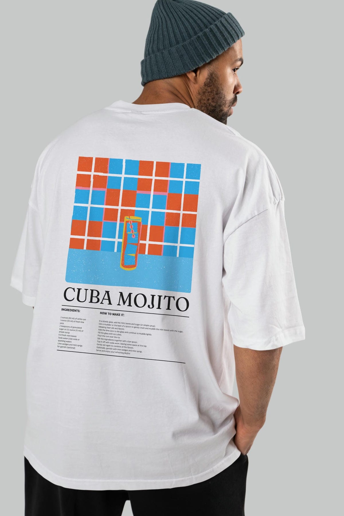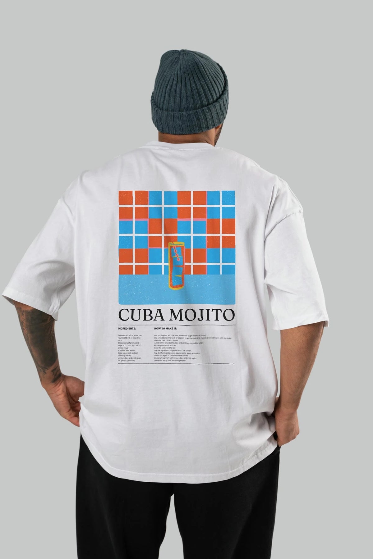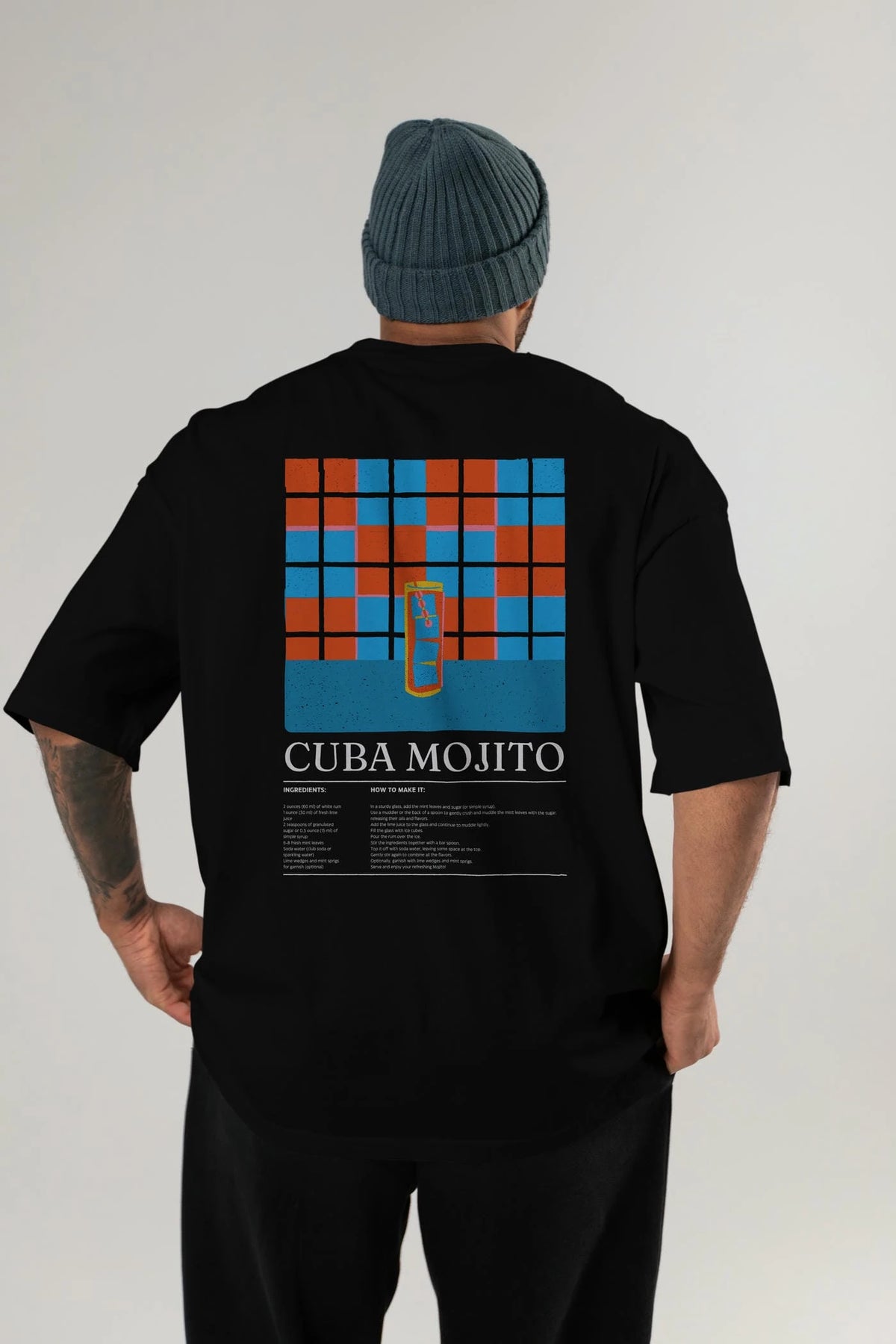 Cuba Mojıto Kokteyl Serisi Arka Baskılı Oversize t-shirt Erkek Kadın %100 Pamuk Bisiklet Yaka tişort