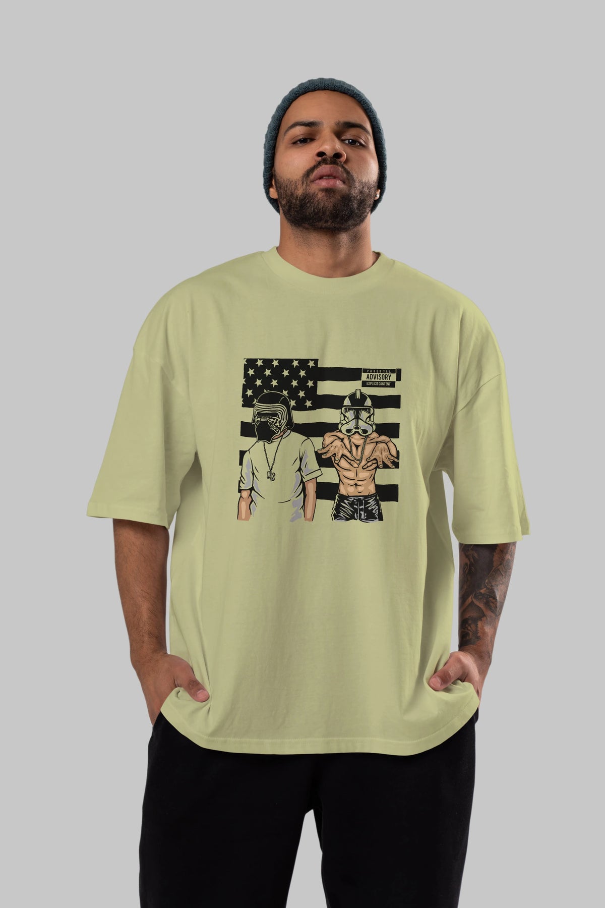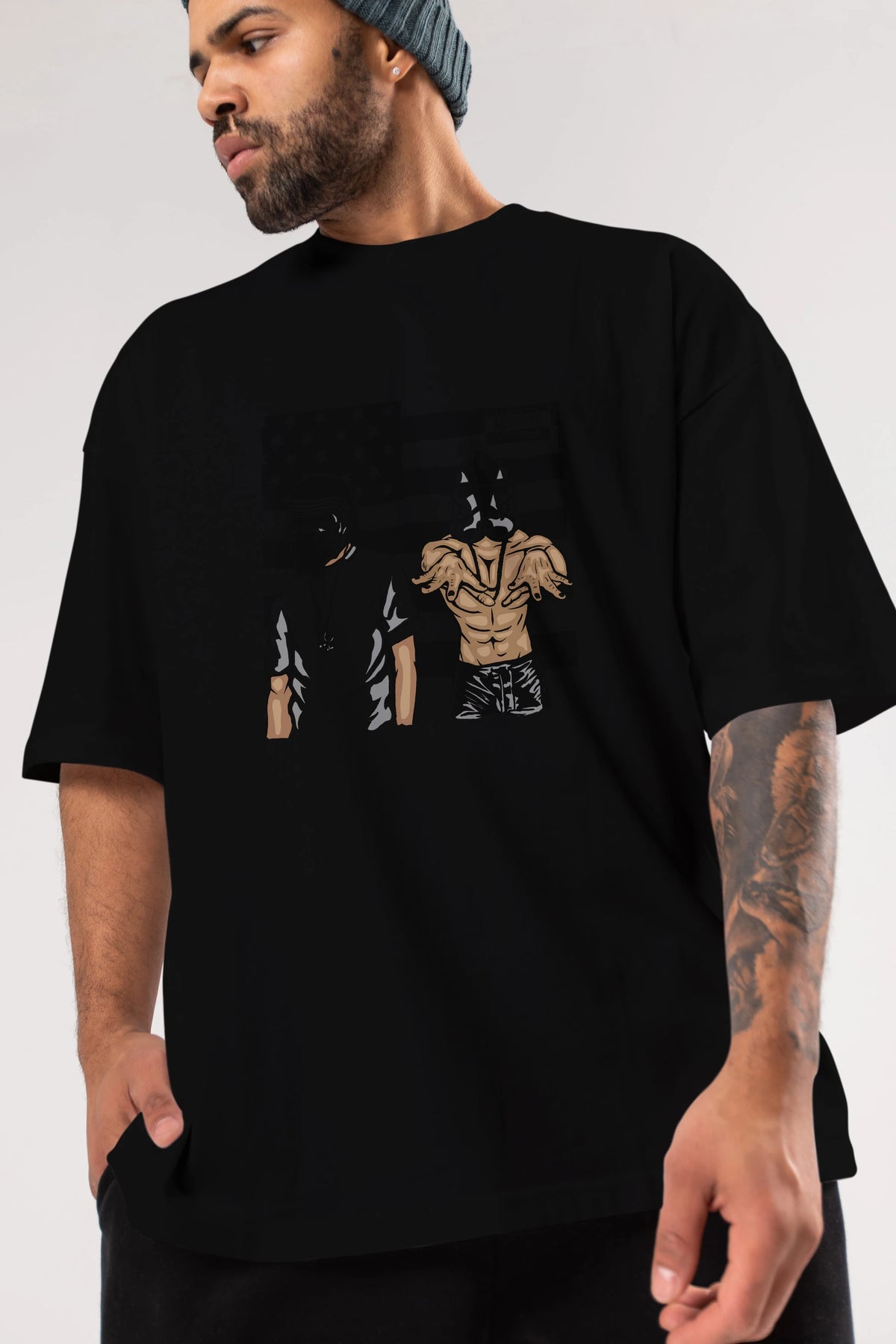 Unisex Baskılı Oversize t-shirt, gardırobunuza mükemmel bir ektir. Yumuşak ve hafif kumaştan üretilen bu şık tişort, kısa kollu ve Oversize uyumu ile tamamlanan klasik bir tasarımına sahiptir. Canlı baskılı grafikler, kalabalığın arasından şık bir şekilde sıyrılmanızı sağlayacaktır. Günlük giyim veya özel günler için mükemmel olan bu çok yönlü tişört, kısa sürede favorilerinizden biri haline gelecektir.