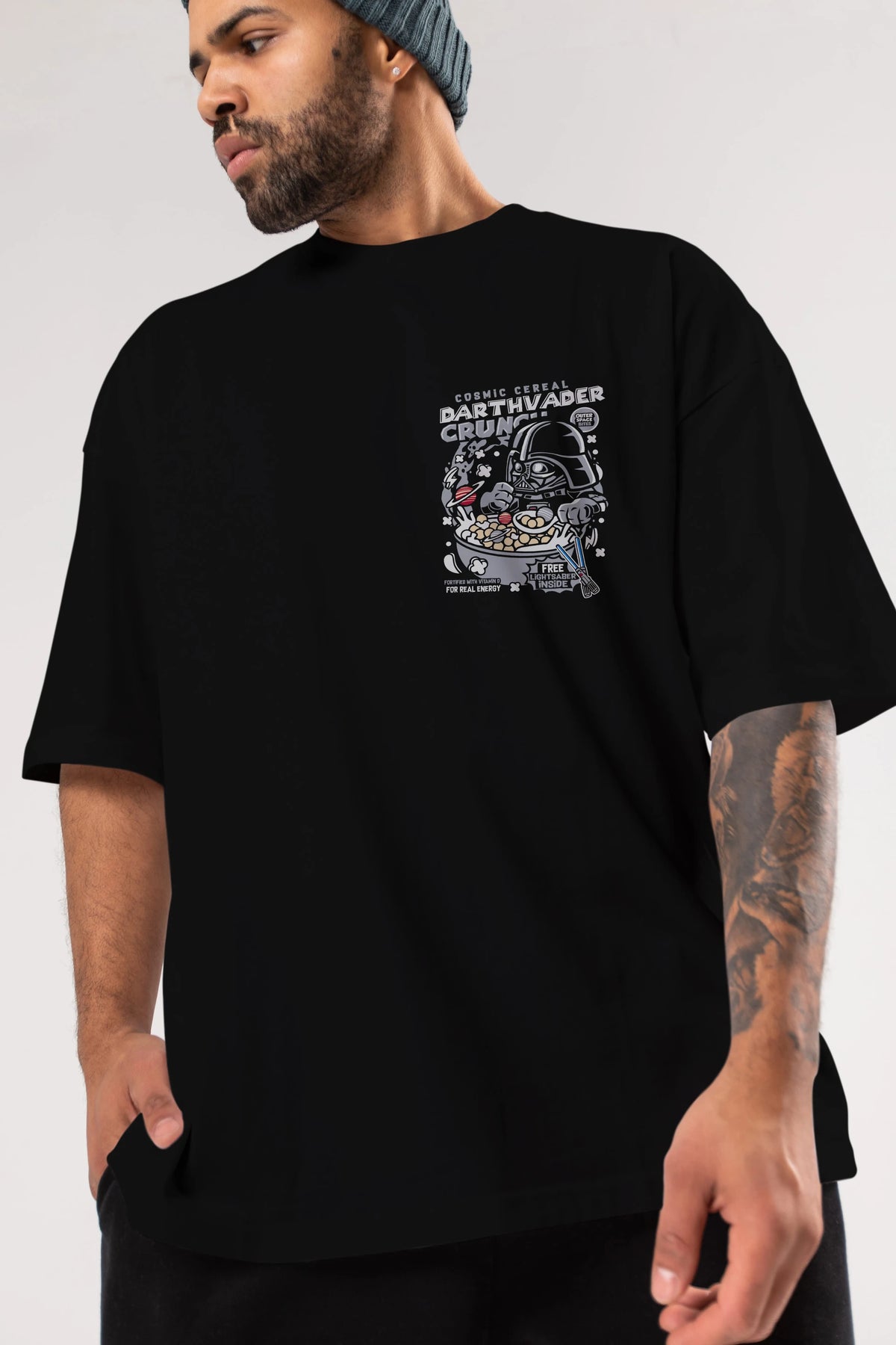 Darth Vader (2) Ön Sol Baskılı Oversize t-shirt Erkek Kadın Unisex %100 Pamuk Bisiklet Yaka tişort