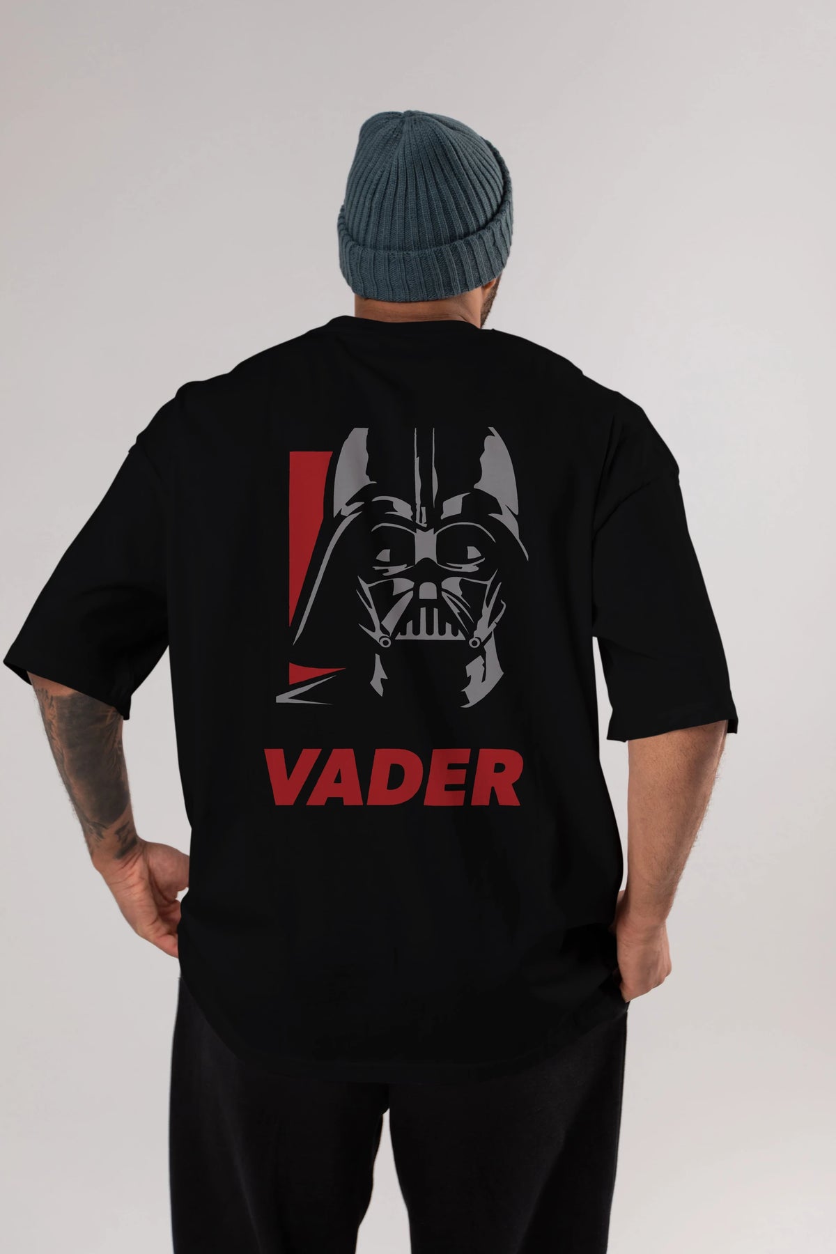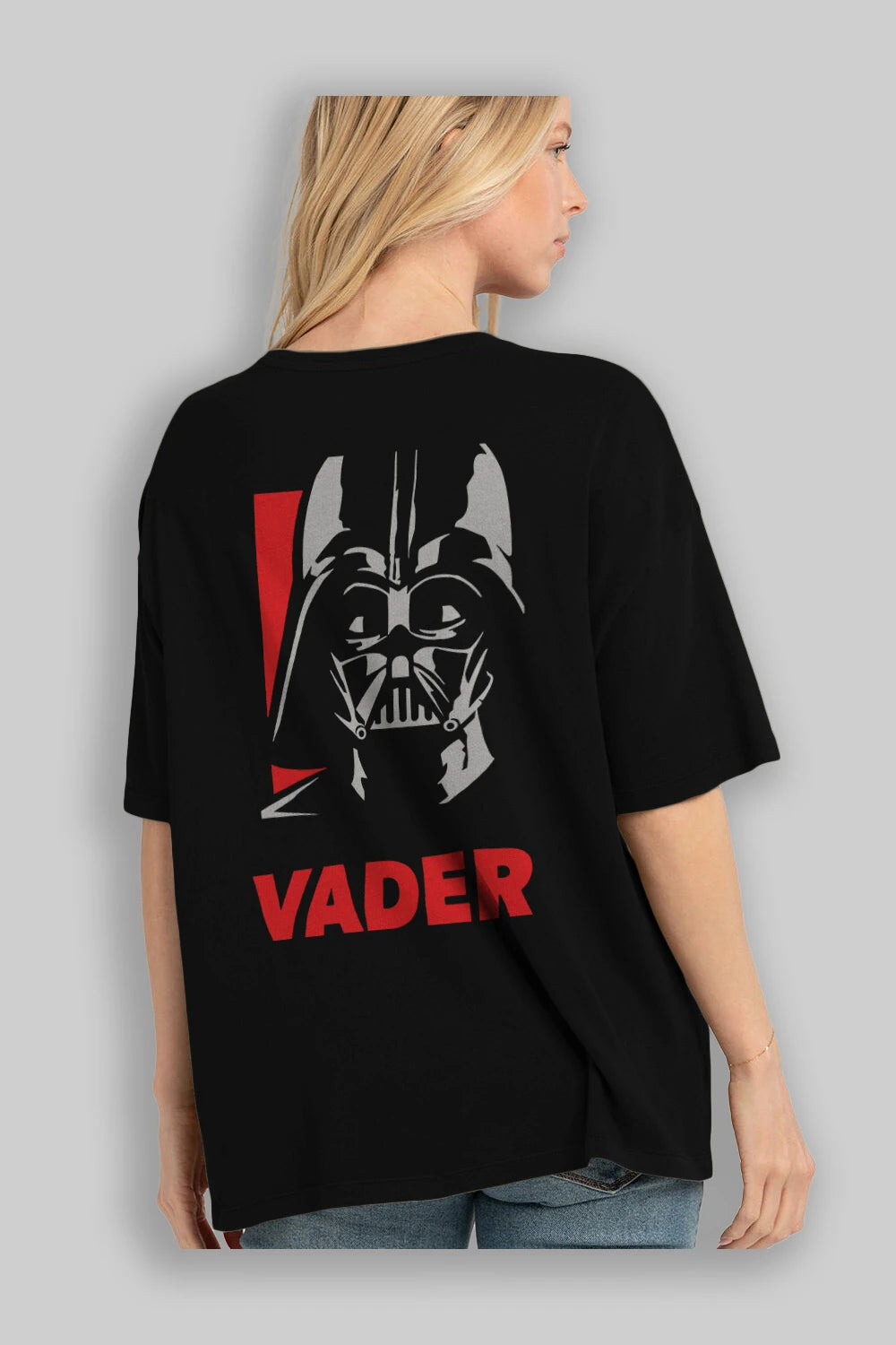 Darth Vader Arka Baskılı Oversize t-shirt Erkek Kadın Unisex %100 Pamuk Bisiklet Yaka tişort