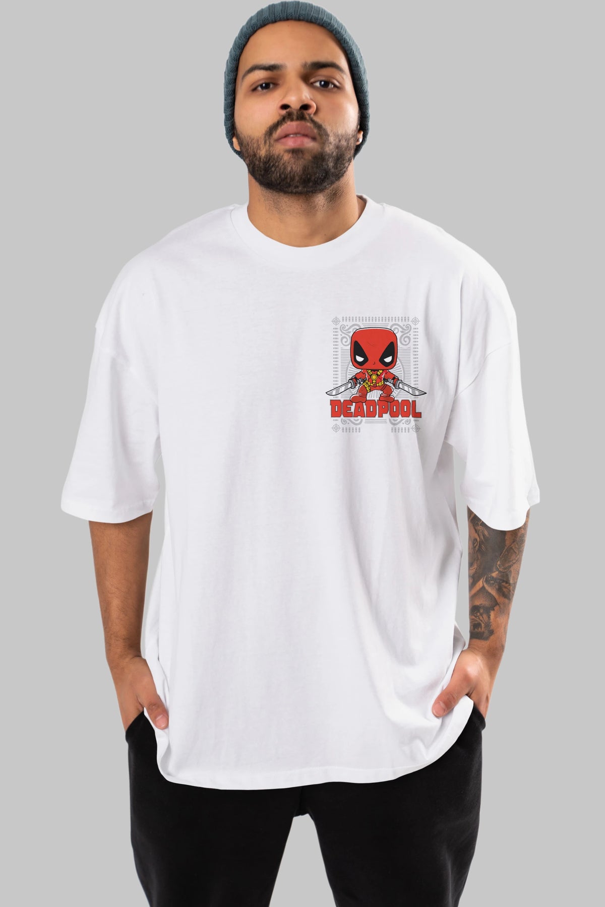 Deadpool (17) Ön Sol Baskılı Oversize t-shirt Erkek Kadın Unisex %100 Pamuk Bisiklet Yaka tişort